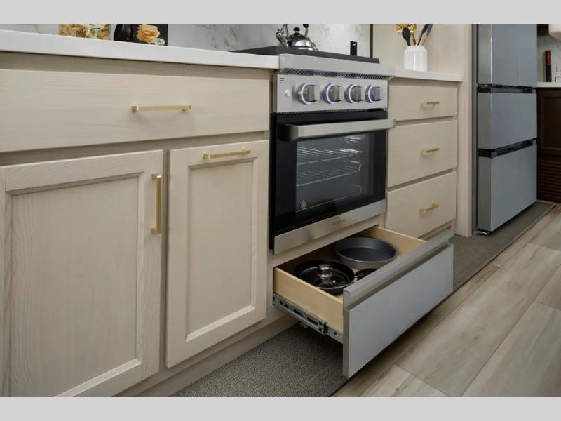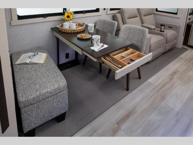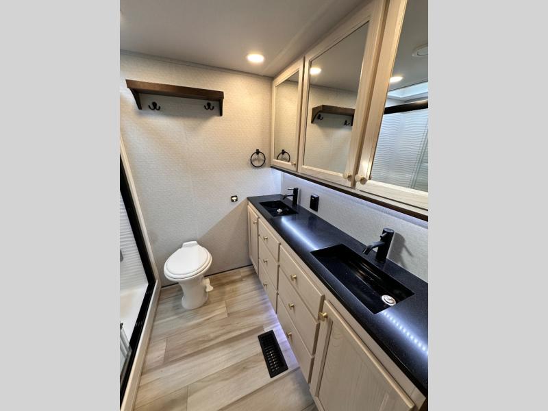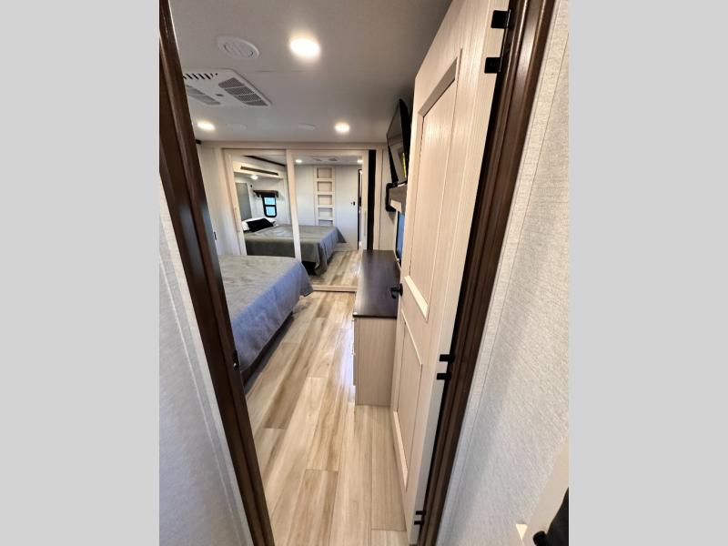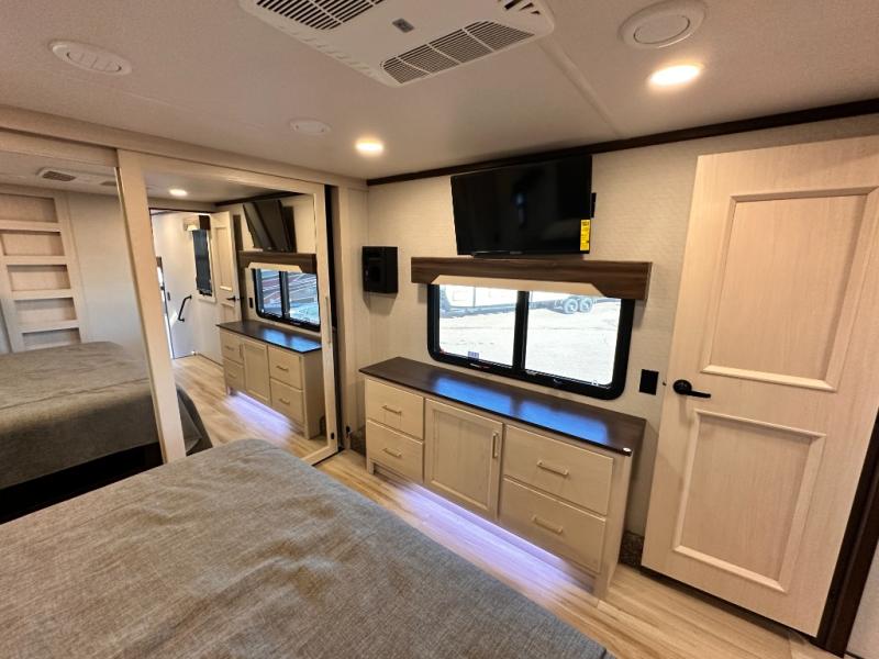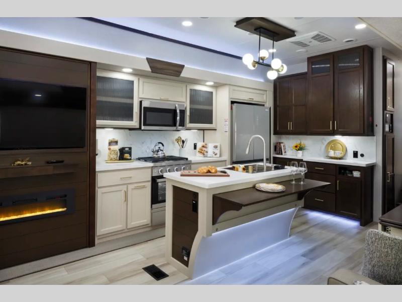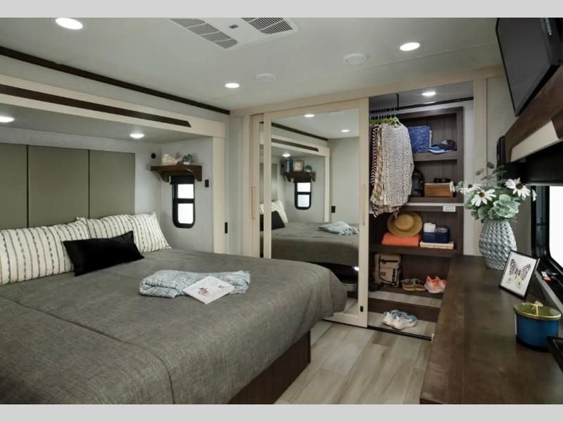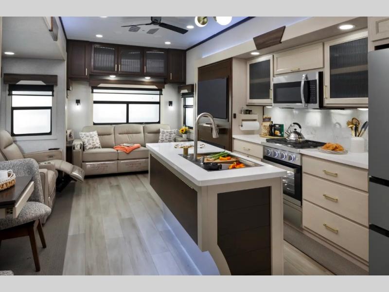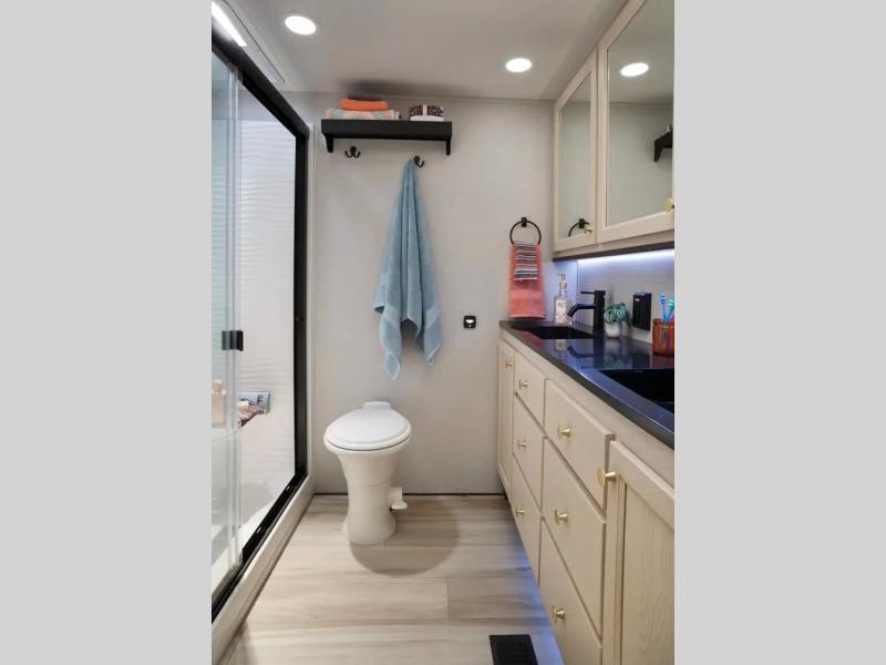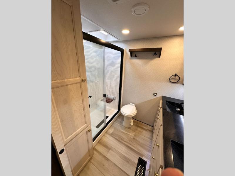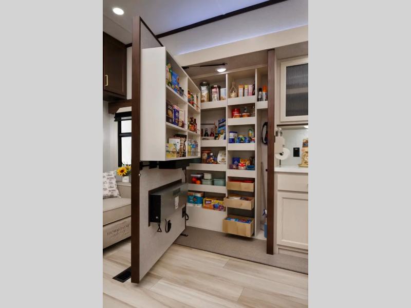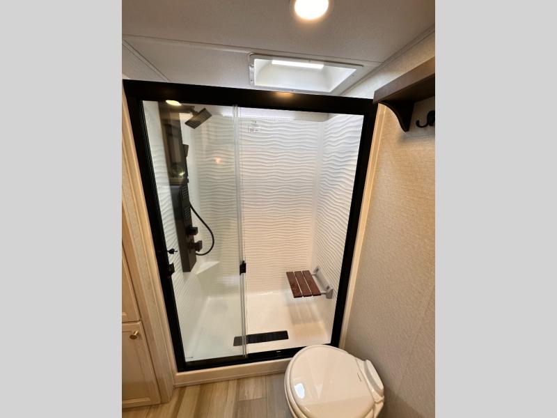 With any Cedar Creek fifth wheel by Forest River, you will find a quality-built RV with your comfort in mind! The all-aluminum super structure on 16" centers or less will provide a solid foundation to your fifth wheel, and the 3M bonded sidewalls will hold up and provide resistance to UV, heat, cold moisture, and even highway chemicals. Each model also includes a Road Warrior suspension for smooth towing, a 6-Point Hydraulic ,GEN 3 Leveling System, and a new 101" wide body frame. Inside, you'll enjoy walnut/two tone wooden cabinetry with hidden hinges, cutting board drawer with cut-out trash funnel, motion lighting in the bath and bedroom closet, plus many more comforts. The New Travelfi™ Pay-as-you go internet provides the ability to bring your own internet rather than relying solely on campground WiFi, and the "Rich Solar" 200W solar panel will give you off-grid capabilities!