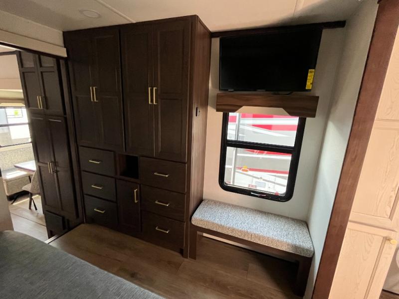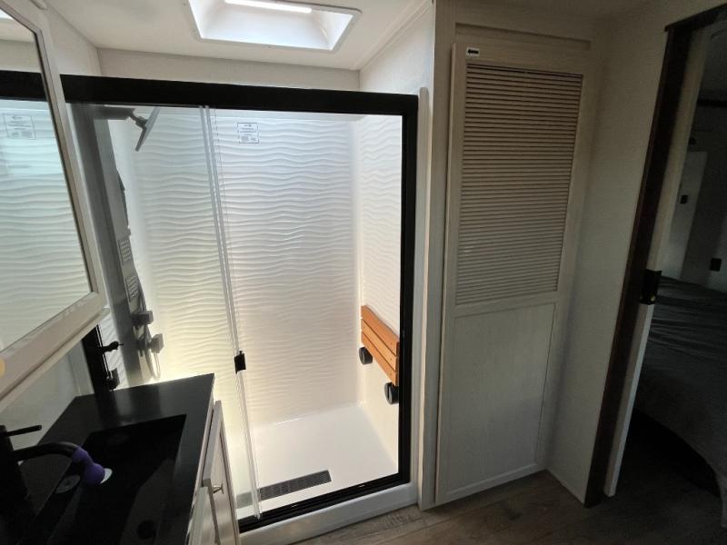 With any Cedar Creek fifth wheel by Forest River, you will find a quality-built RV with your comfort in mind! The all-aluminum super structure on 16" centers or less will provide a solid foundation to your fifth wheel, and the 3M bonded sidewalls will hold up over years of use. Each model also includes a Road Warrior suspension for smooth towing, a 21,000 lb. Rhino box hitch, and a new 101" wide body frame. Inside, you'll enjoy walnut/two tone wooden cabinets and fascias, day/night roller shades, motion lighting in the bath and bedroom closet, plus many more comforts. The new CradlePoint WiFi/5G antenna and Day 1 connectivity will help keep you connected as you travel, and the "Rich Solar" 200W solar panel will give you off-grid capabilities!