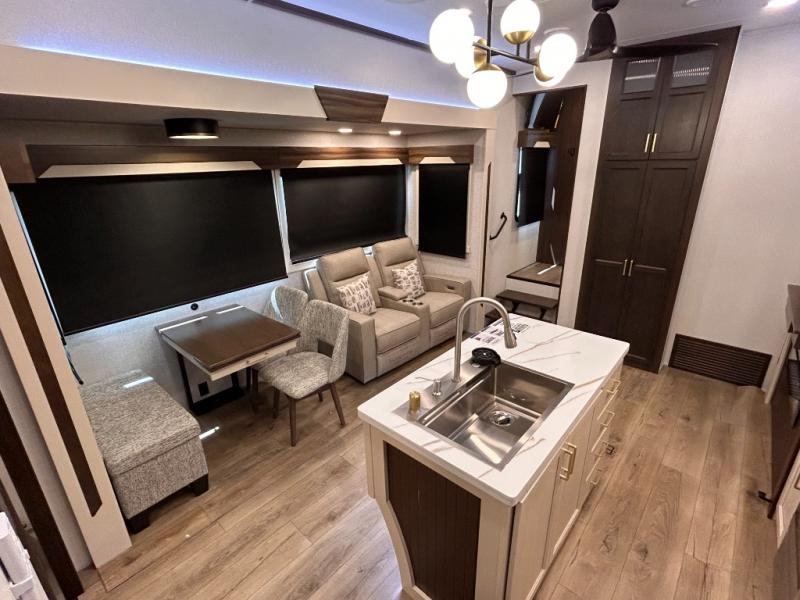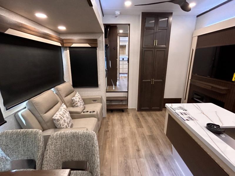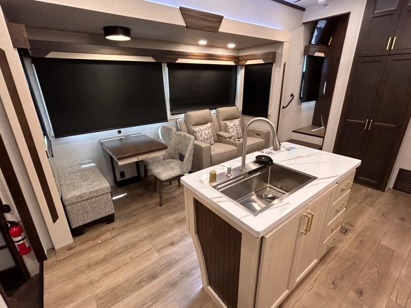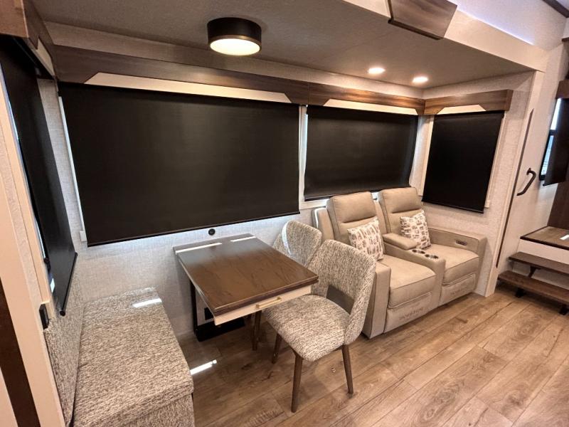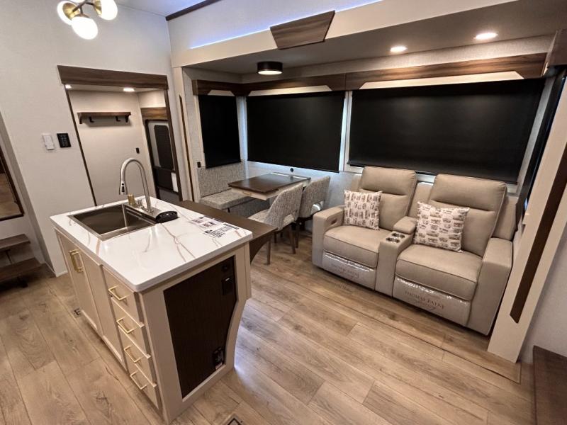 TWO BEDROOMS / TWO BATHROOM / OFFICE ROOM /SLIDE AWNING TOPPERS /THEATER SEATING / AUTO LEVELING