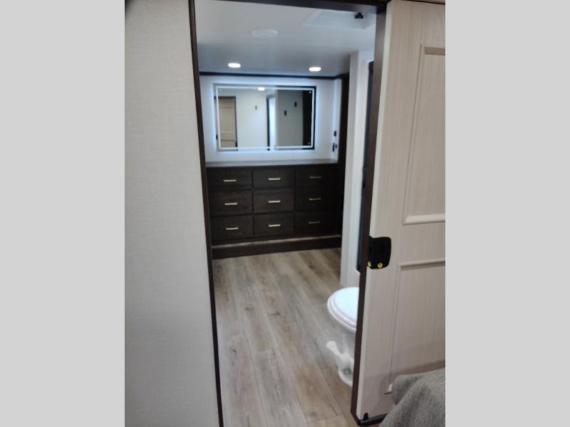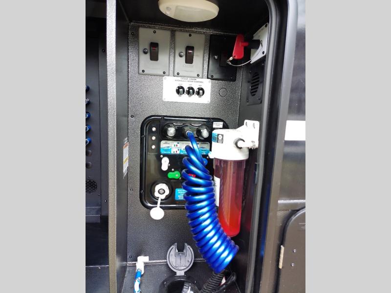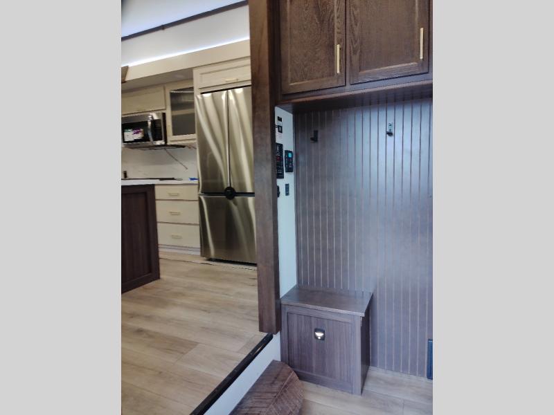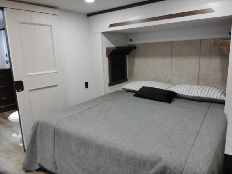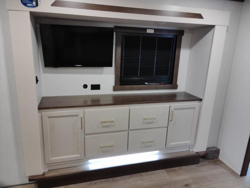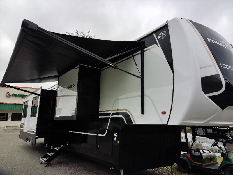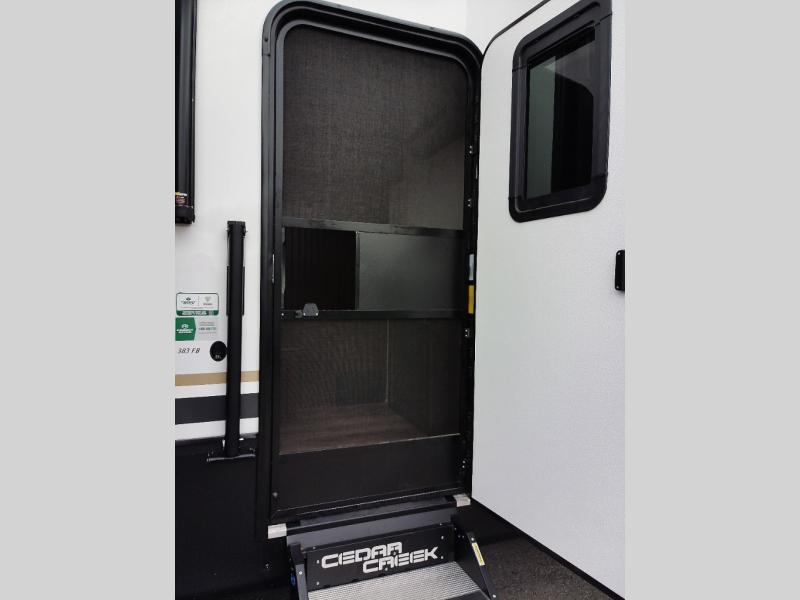 With any Cedar Creek fifth wheel by Forest River, you will find a quality-built RV with your comfort in mind! The all-aluminum super structure on 16" centers or less will provide a solid foundation to your fifth wheel, and the 3M bonded sidewalls will hold up and provide resistance to UV, heat, cold moisture, and even highway chemicals. Each model also includes a Road Warrior suspension for smooth towing, a 6-Point Hydraulic, GEN 3 Leveling System, and a new 101" wide body frame. Inside, you'll enjoy walnut/two tone wooden cabinetry with hidden hinges, cutting board drawer with cut-out trash funnel, motion lighting in the bath and bedroom closet, plus many more comforts. The New Travelfi™ Pay-as-you go internet provides the ability to bring your own internet rather than relying solely on campground WiFi, and the "Rich Solar" 200W solar panel will give you off-grid capabilities!