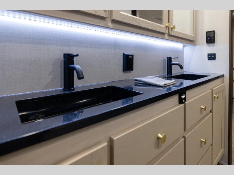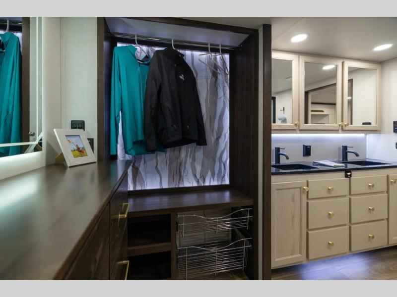 With any Cedar Creek fifth wheel by Forest River, you will find a quality-built RV with your comfort in mind! The all-aluminum super structure on 16" centers or less will provide a solid foundation to your fifth wheel, and the 3M bonded sidewalls will hold up and provide resistance to UV, heat, cold moisture, and even highway chemicals. Each model also includes a Road Warrior suspension for smooth towing, a 6-Point Hydraulic, GEN 3 Leveling System, and a new 101" wide body frame. Inside, you'll enjoy walnut/two tone wooden cabinetry with hidden hinges, cutting board drawer with cut-out trash funnel, motion lighting in the bath and bedroom closet, plus many more comforts. The New Travelfi™ Pay-as-you go internet provides the ability to bring your own internet rather than relying solely on campground WiFi, and the "Rich Solar" 200W solar panel will give you off-grid capabilities!