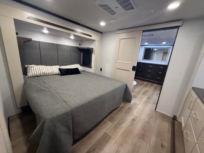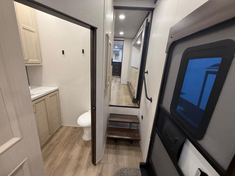 With any Cedar Creek fifth wheel by Forest River, you will find a quality-built RV with your comfort in mind! The all-aluminum super structure on 16" centers or less will provide a solid foundation to your fifth wheel, and the 3M bonded sidewalls will hold up and provide resistance to UV, heat, cold moisture, and even highway chemicals. Each model also includes a Road Warrior suspension for smooth towing, a 6-Point Hydraulic, GEN 3 Leveling System, and a new 101" wide body frame. Inside, you'll enjoy walnut/two tone wooden cabinetry with hidden hinges, cutting board drawer with cut-out trash funnel, motion lighting in the bath and bedroom closet, plus many more comforts. The New Travelfi™ Pay-as-you go internet provides the ability to bring your own internet rather than relying solely on campground WiFi, and the "Rich Solar" 200W solar panel will give you off-grid capabilities!