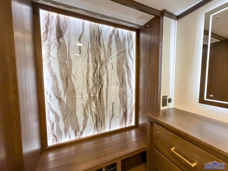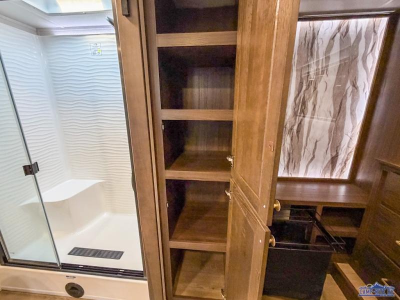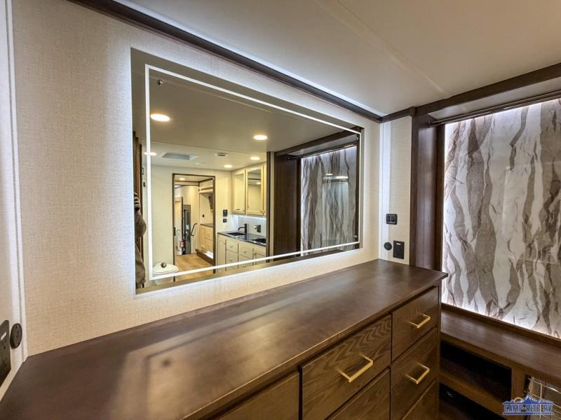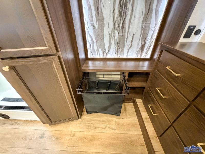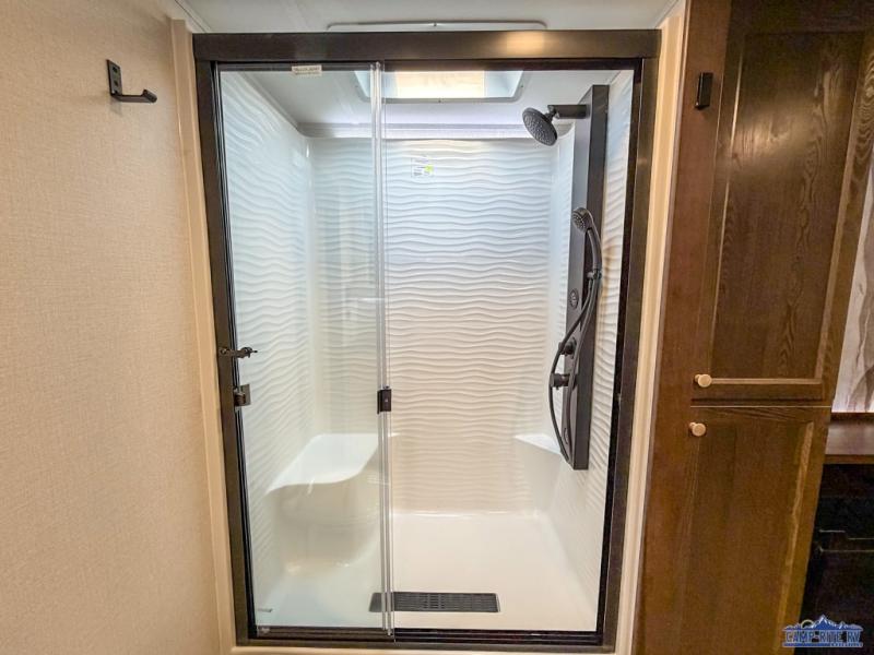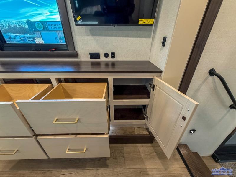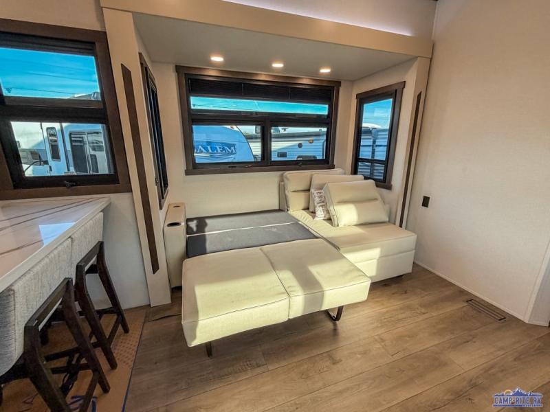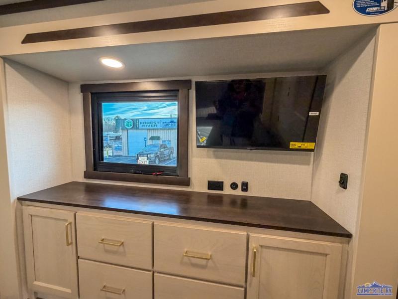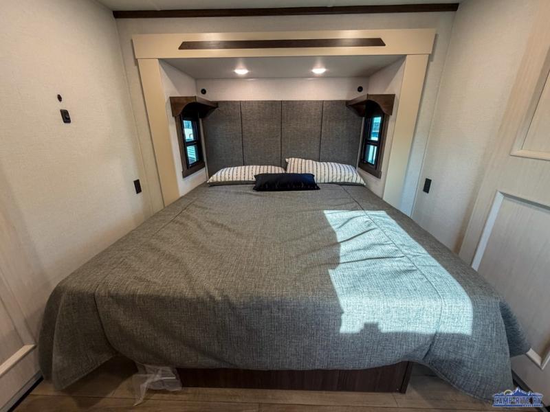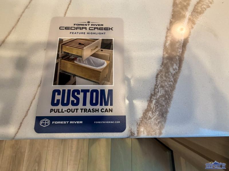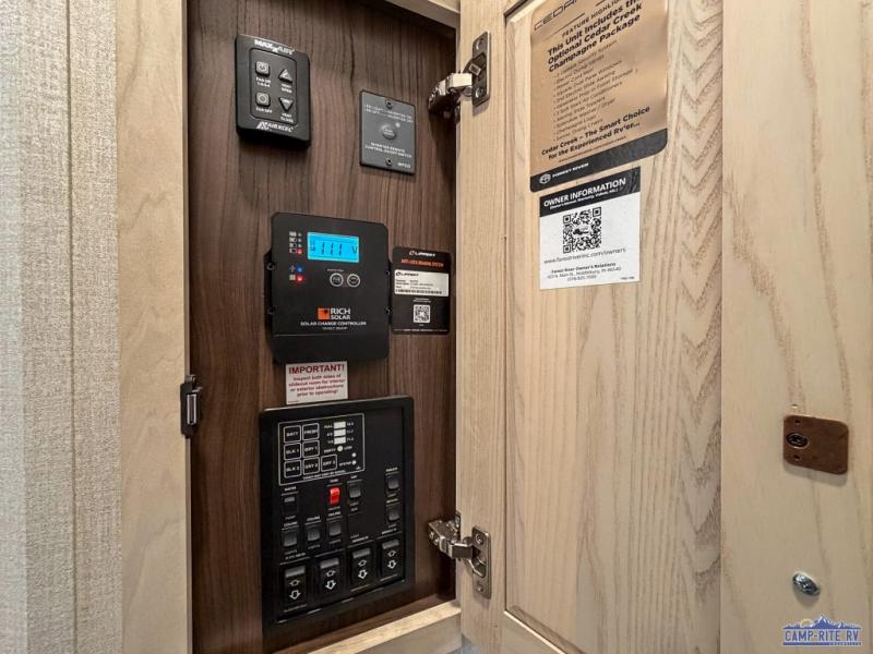 With any Cedar Creek fifth wheel by Forest River, you will find a quality-built RV with your comfort in mind! The all-aluminum super structure on 16" centers or less will provide a solid foundation to your fifth wheel, and the 3M bonded sidewalls will hold up and provide resistance to UV, heat, cold moisture, and even highway chemicals. Each model also includes a Road Warrior suspension for smooth towing, a 6-Point Hydraulic, GEN 3 Leveling System, and a new 101" wide body frame. Inside, you'll enjoy walnut/two tone wooden cabinetry with hidden hinges, cutting board drawer with cut-out trash funnel, motion lighting in the bath and bedroom closet, plus many more comforts. The New Travelfi™ Pay-as-you go internet provides the ability to bring your own internet rather than relying solely on campground WiFi, and the "Rich Solar" 200W solar panel will give you off-grid capabilities!