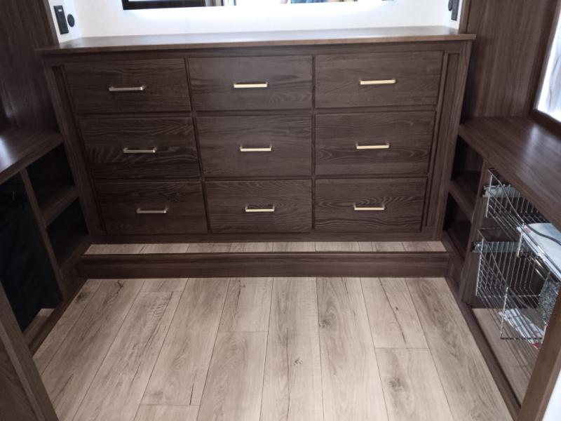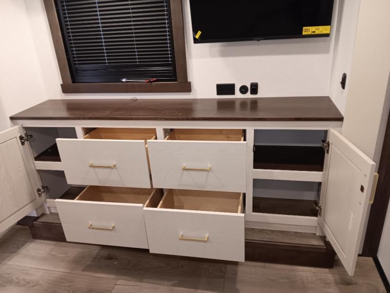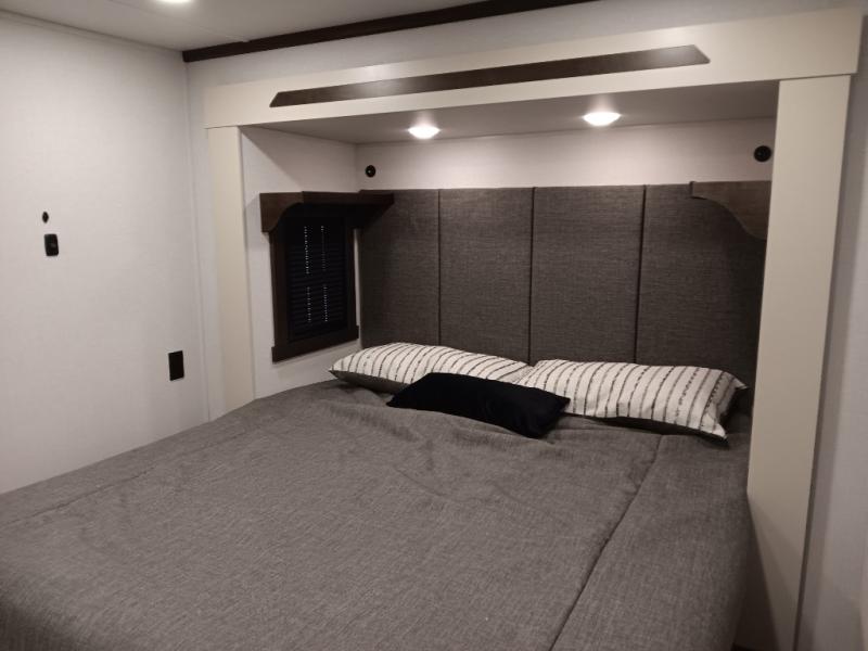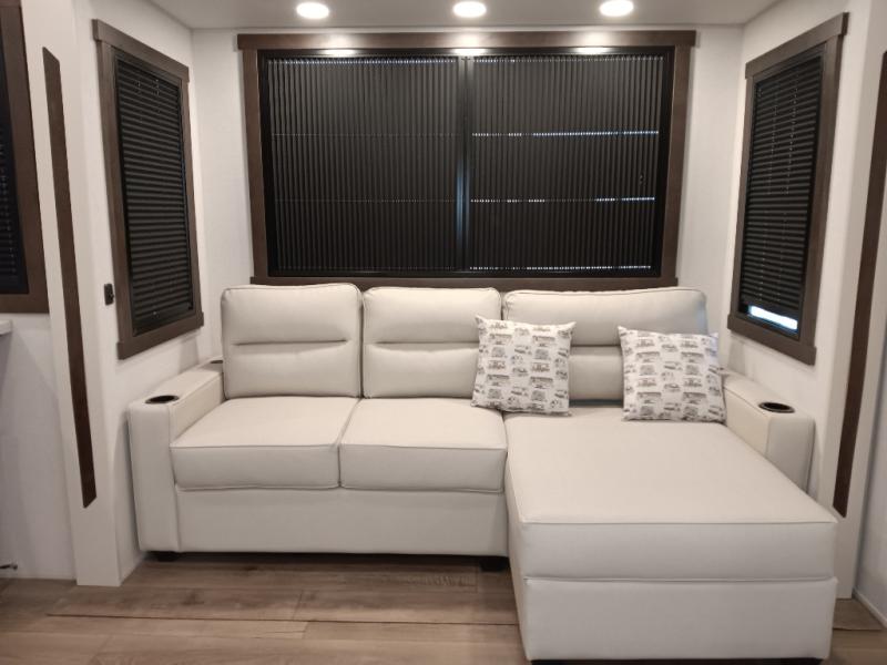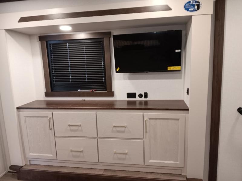 With any Cedar Creek fifth wheel by Forest River, you will find a quality-built RV with your comfort in mind! The all-aluminum super structure on 16" centers or less will provide a solid foundation to your fifth wheel, and the 3M bonded sidewalls will hold up and provide resistance to UV, heat, cold moisture, and even highway chemicals. Each model also includes a Road Warrior suspension for smooth towing, a 6-Point Hydraulic, GEN 3 Leveling System, and a new 101" wide body frame. Inside, you'll enjoy walnut/two tone wooden cabinetry with hidden hinges, cutting board drawer with cut-out trash funnel, motion lighting in the bath and bedroom closet, plus many more comforts. The New Travelfi™ Pay-as-you go internet provides the ability to bring your own internet rather than relying solely on campground WiFi, and the "Rich Solar" 200W solar panel will give you off-grid capabilities!