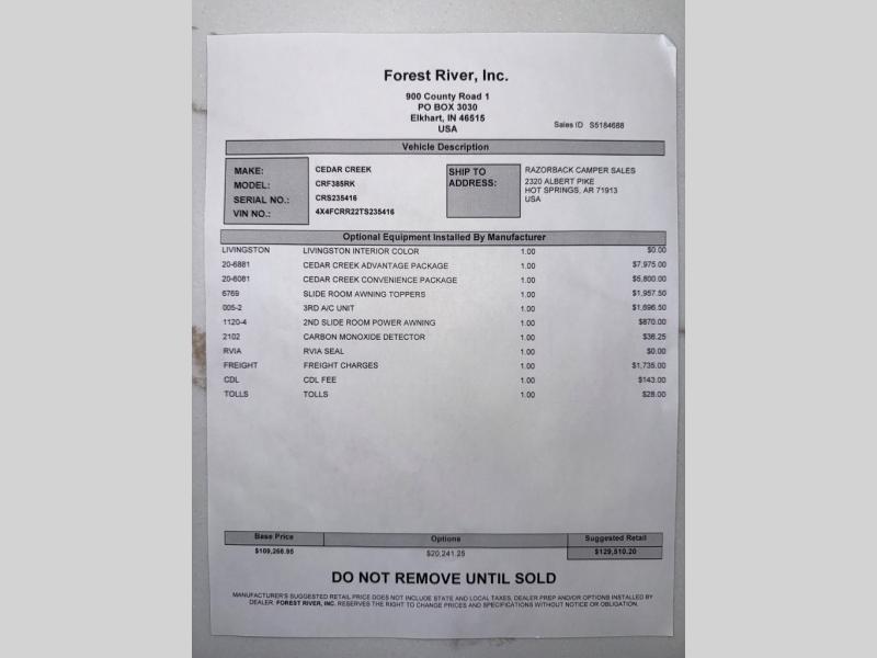 Forest River Cedar Creek fifth wheel 385RK highlights: