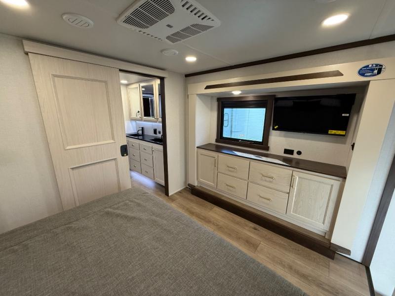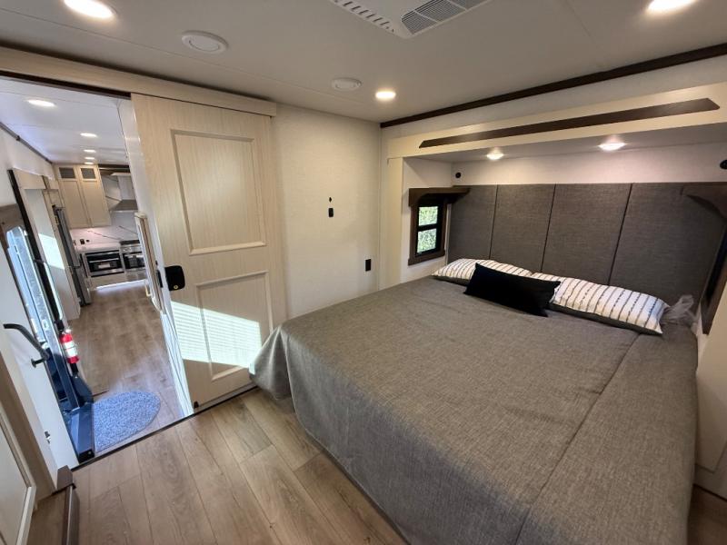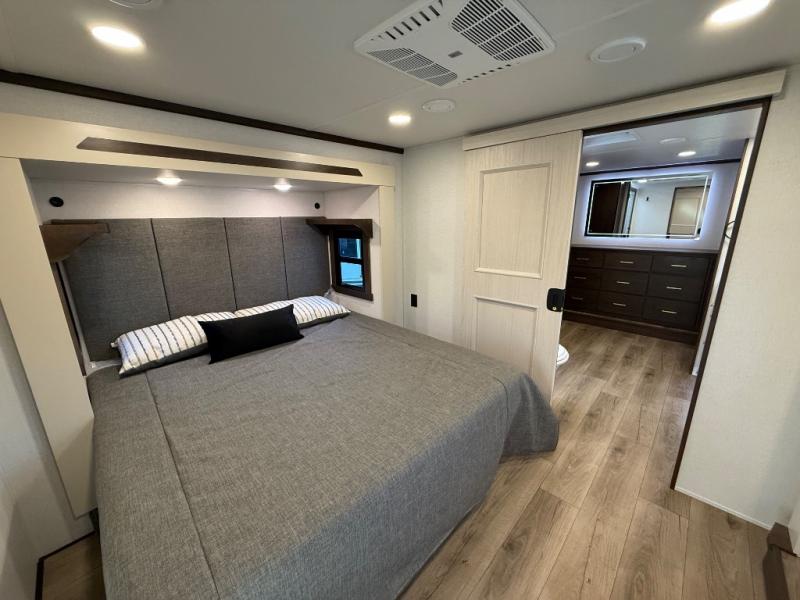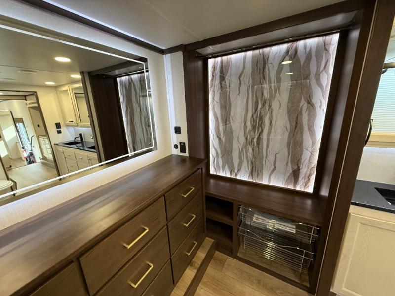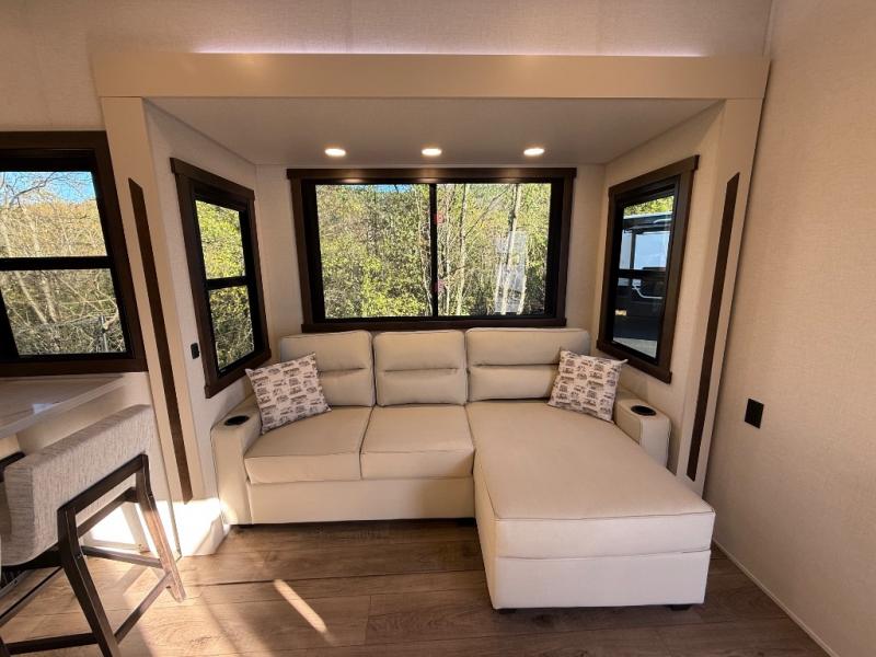 With any Cedar Creek fifth wheel by Forest River, you will find a quality-built RV with your comfort in mind! The all-aluminum super structure on 16" centers or less will provide a solid foundation to your fifth wheel, and the 3M bonded sidewalls will hold up and provide resistance to UV, heat, cold moisture, and even highway chemicals. Each model also includes a Road Warrior suspension for smooth towing, a 6-Point Hydraulic, GEN 3 Leveling System, and a new 101" wide body frame. Inside, you'll enjoy walnut/two tone wooden cabinetry with hidden hinges, cutting board drawer with cut-out trash funnel, motion lighting in the bath and bedroom closet, plus many more comforts. The New Travelfi™ Pay-as-you go internet provides the ability to bring your own internet rather than relying solely on campground WiFi, and the "Rich Solar" 200W solar panel will give you off-grid capabilities!