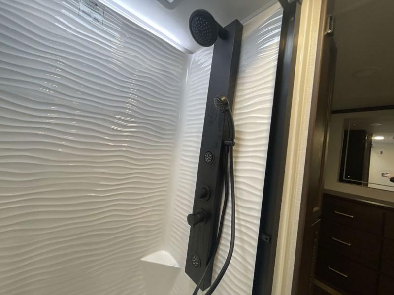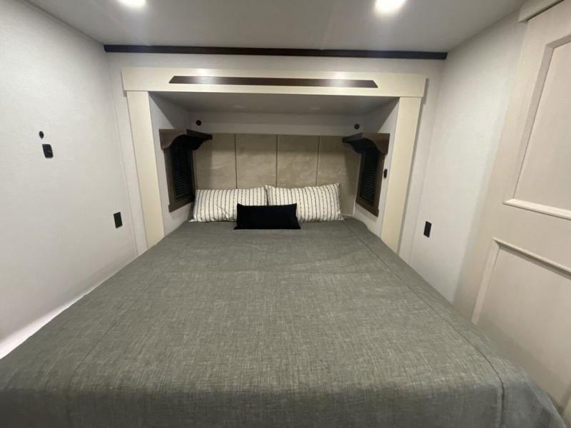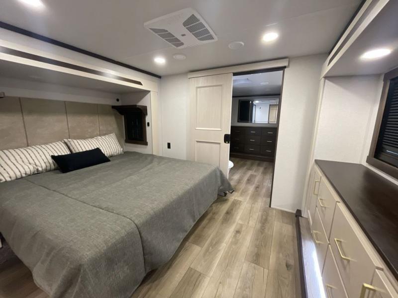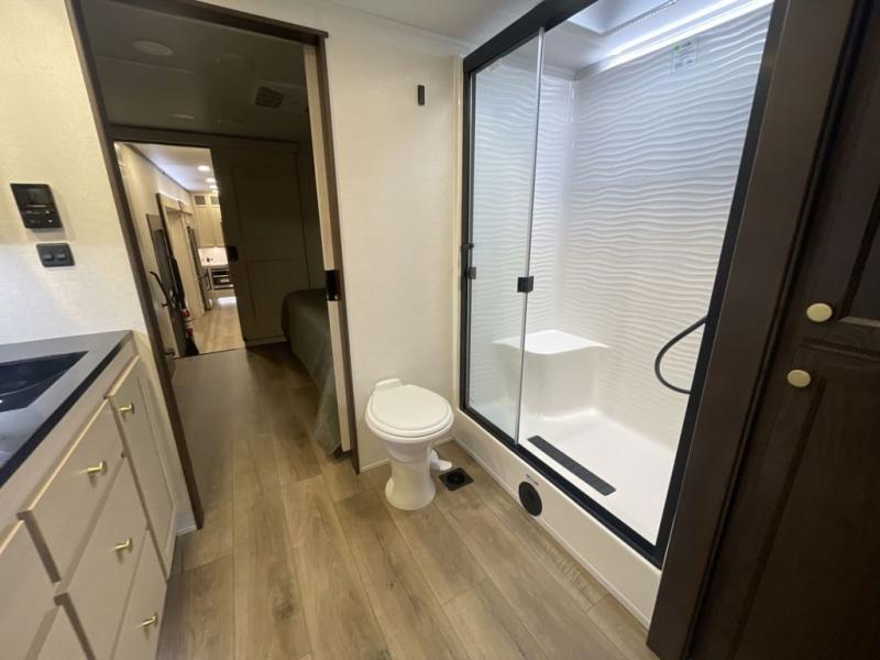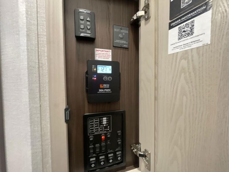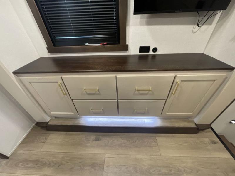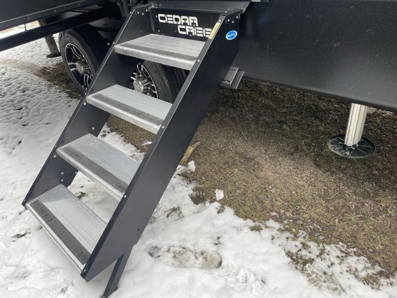With any Cedar Creek fifth wheel by Forest River, you will find a quality-built RV with your comfort in mind! The all-aluminum super structure on 16" centers or less will provide a solid foundation to your fifth wheel, and the 3M bonded sidewalls will hold up and provide resistance to UV, heat, cold moisture, and even highway chemicals. Each model also includes a Road Warrior suspension for smooth towing, a 6-Point Hydraulic, GEN 3 Leveling System, and a new 101" wide body frame. Inside, you'll enjoy walnut/two tone wooden cabinetry with hidden hinges, cutting board drawer with cut-out trash funnel, motion lighting in the bath and bedroom closet, plus many more comforts. The New Travelfi™ Pay-as-you go internet provides the ability to bring your own internet rather than relying solely on campground WiFi, and the "Rich Solar" 200W solar panel will give you off-grid capabilities!