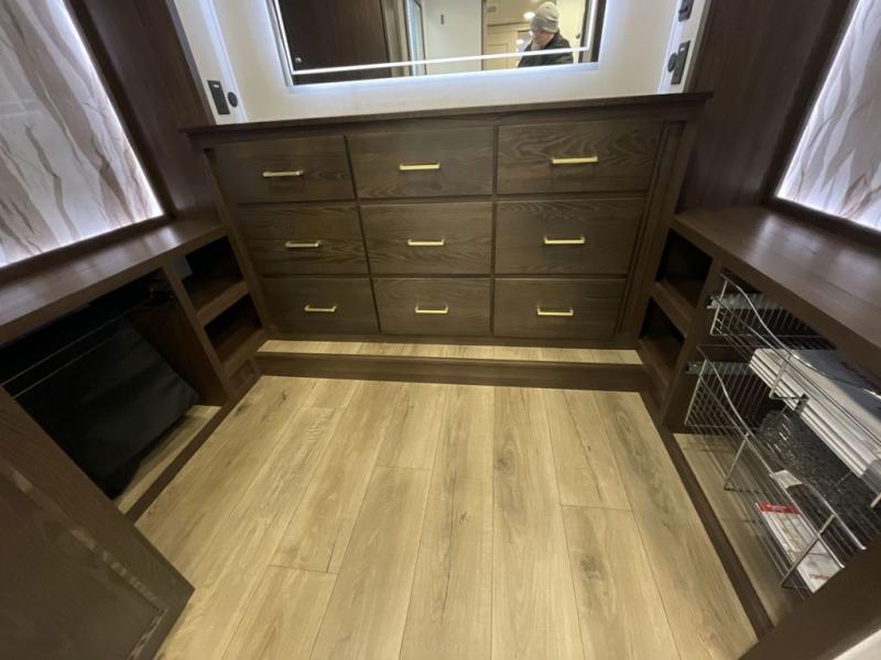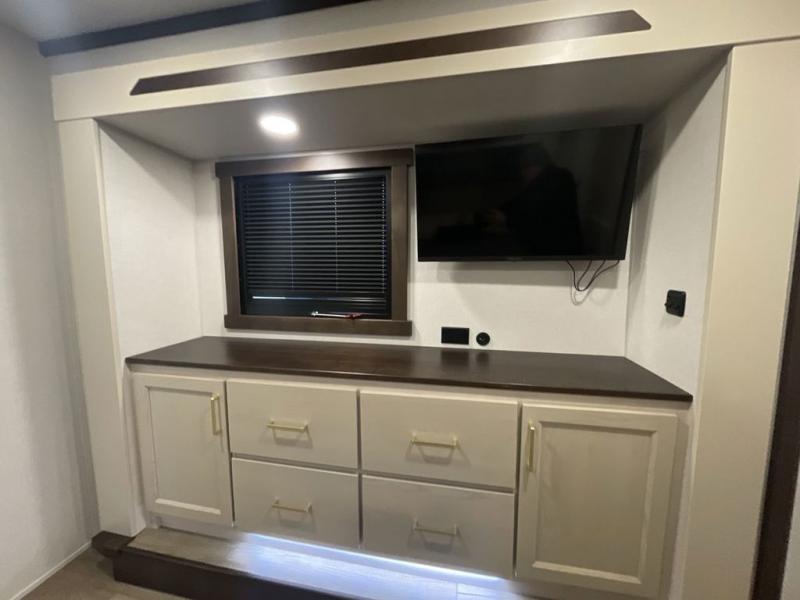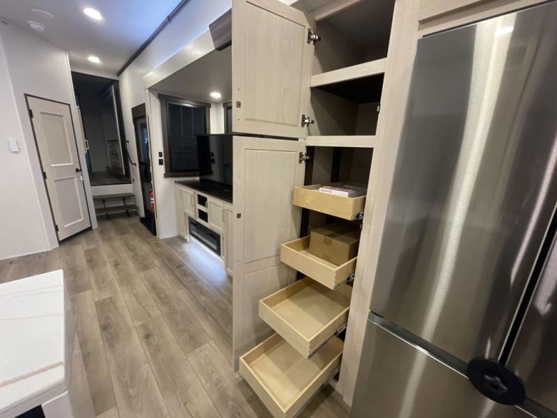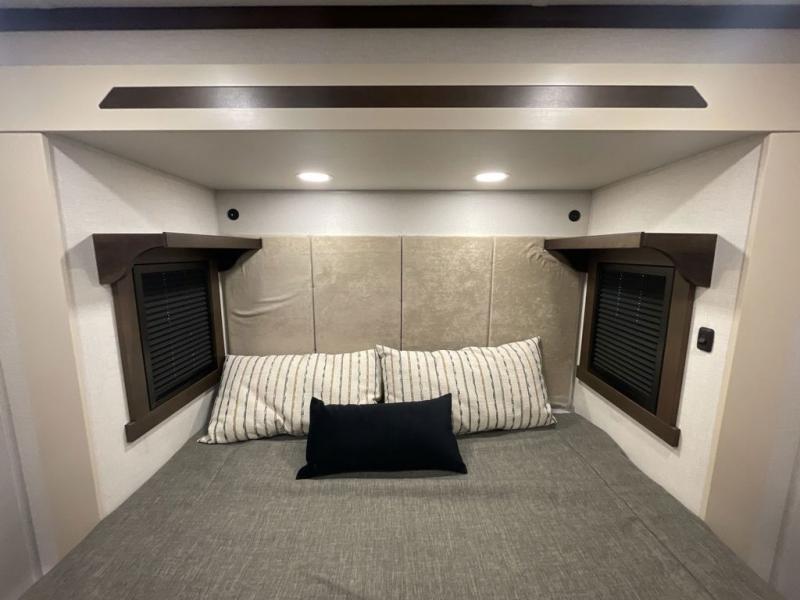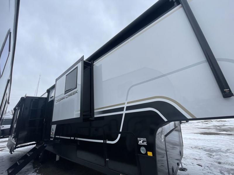 With any Cedar Creek fifth wheel by Forest River, you will find a quality-built RV with your comfort in mind! The all-aluminum super structure on 16" centers or less will provide a solid foundation to your fifth wheel, and the 3M bonded sidewalls will hold up and provide resistance to UV, heat, cold moisture, and even highway chemicals. Each model also includes a Road Warrior suspension for smooth towing, a 6-Point Hydraulic, GEN 3 Leveling System, and a new 101" wide body frame. Inside, you'll enjoy walnut/two tone wooden cabinetry with hidden hinges, cutting board drawer with cut-out trash funnel, motion lighting in the bath and bedroom closet, plus many more comforts. The New Travelfi™ Pay-as-you go internet provides the ability to bring your own internet rather than relying solely on campground WiFi, and the "Rich Solar" 200W solar panel will give you off-grid capabilities!