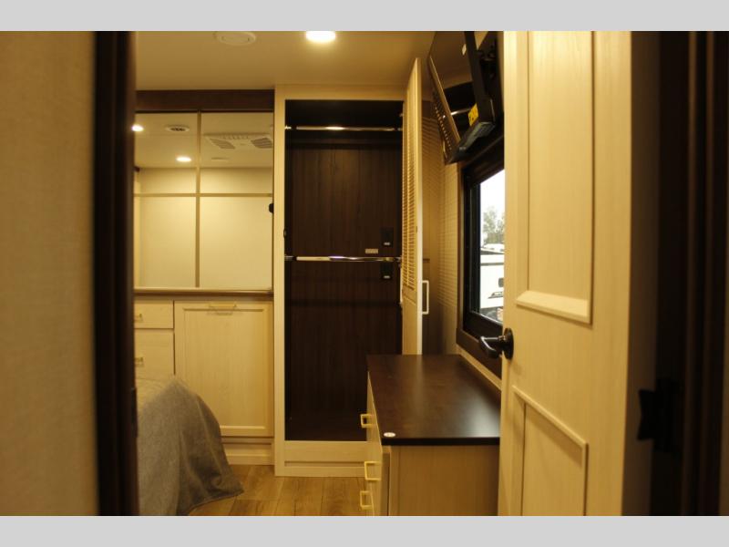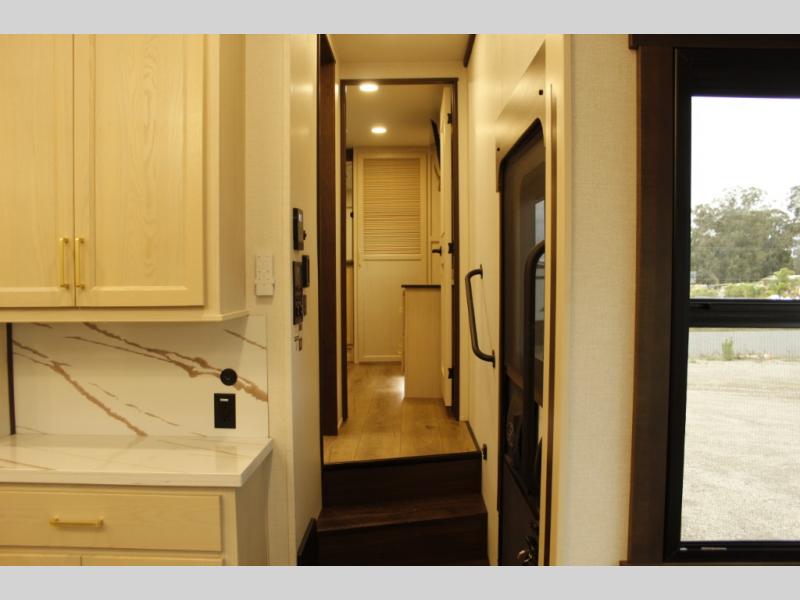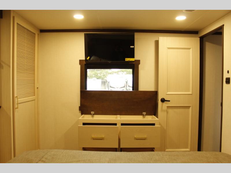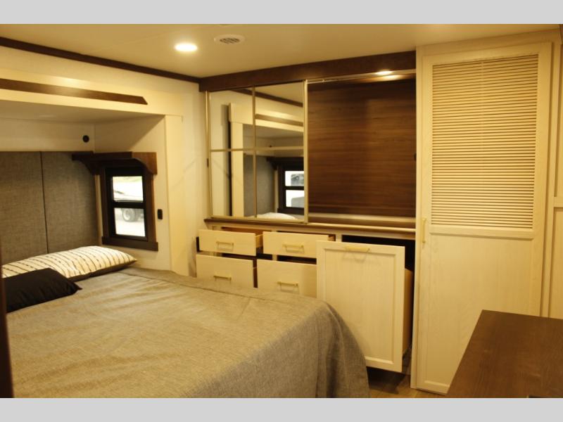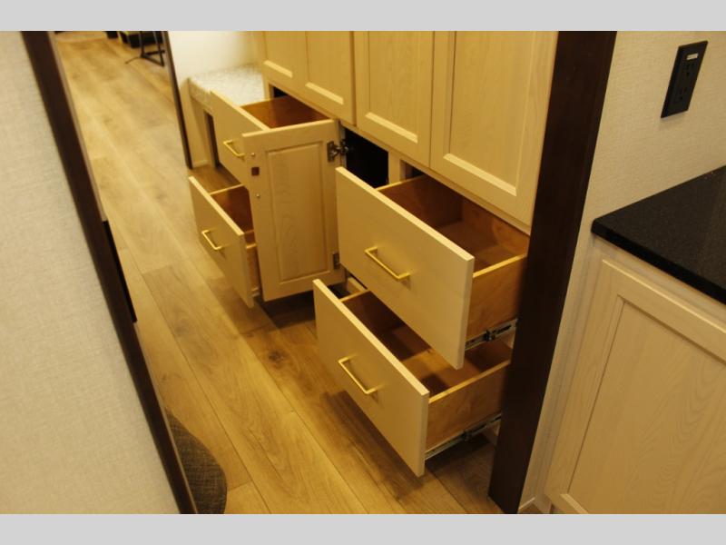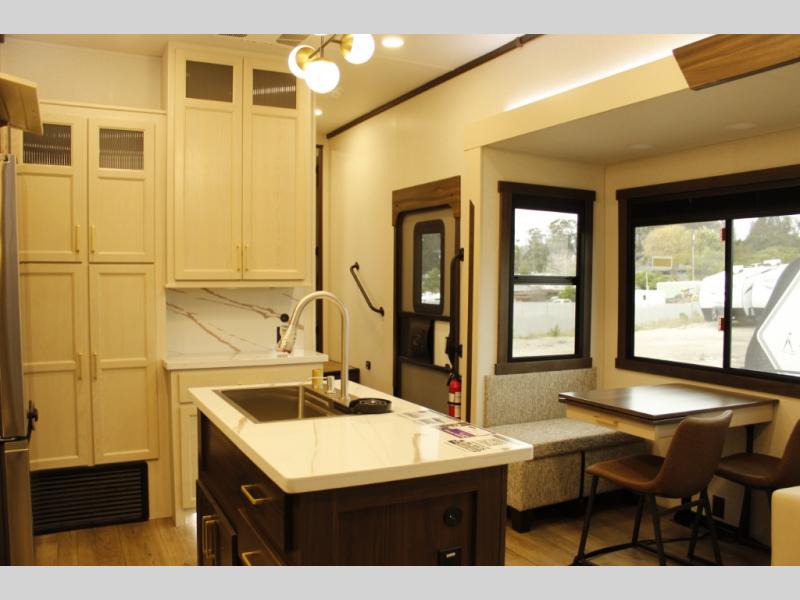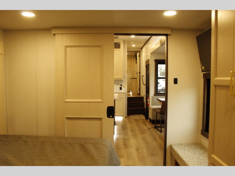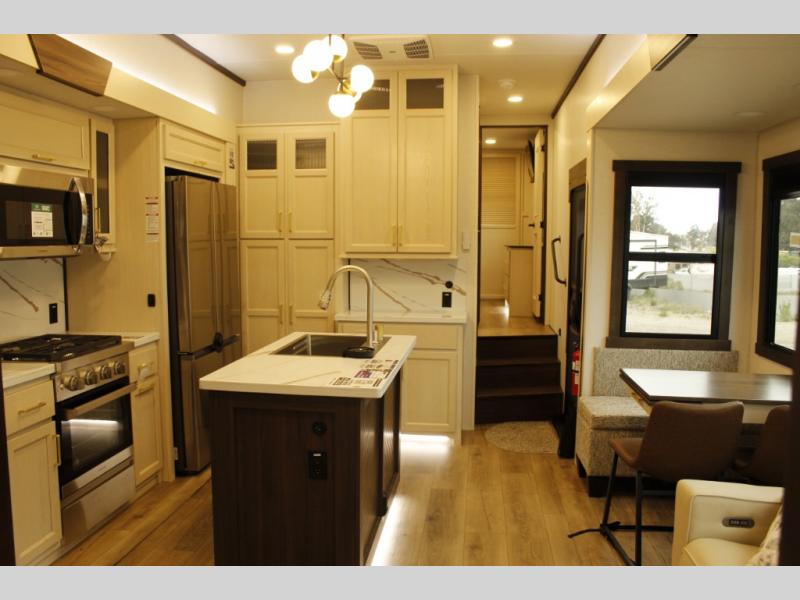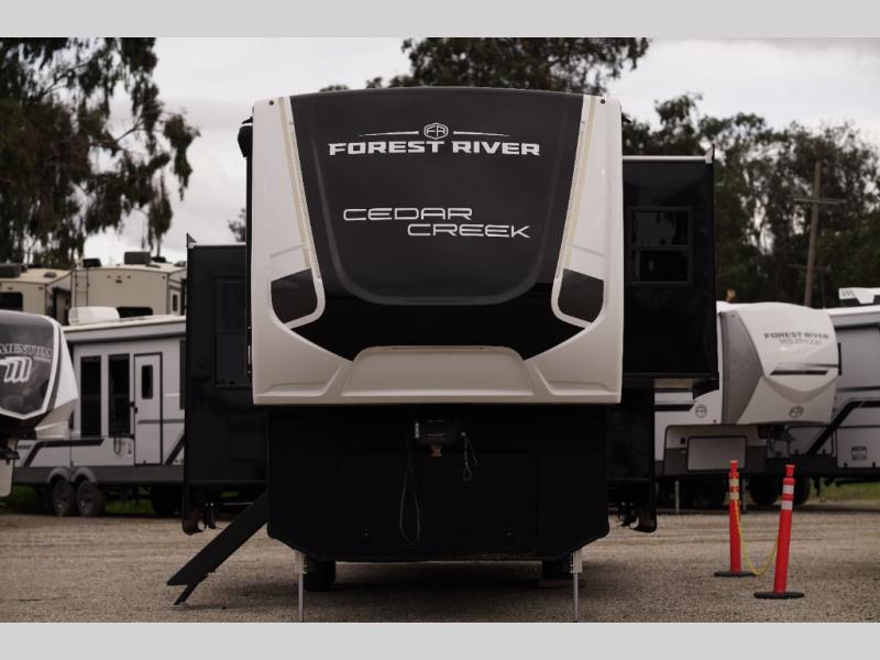 With any Cedar Creek fifth wheel by Forest River, you will find a quality-built RV with your comfort in mind! The all-aluminum super structure on 16" centers or less will provide a solid foundation to your fifth wheel, and the 3M bonded sidewalls will hold up and provide resistance to UV, heat, cold moisture, and even highway chemicals. Each model also includes a Road Warrior suspension for smooth towing, a 6-Point Hydraulic, GEN 3 Leveling System, and a new 101" wide body frame. Inside, you'll enjoy walnut/two tone wooden cabinetry with hidden hinges, cutting board drawer with cut-out trash funnel, motion lighting in the bath and bedroom closet, plus many more comforts. The New Travelfi™ Pay-as-you go internet provides the ability to bring your own internet rather than relying solely on campground WiFi, and the "Rich Solar" 200W solar panel will give you off-grid capabilities!