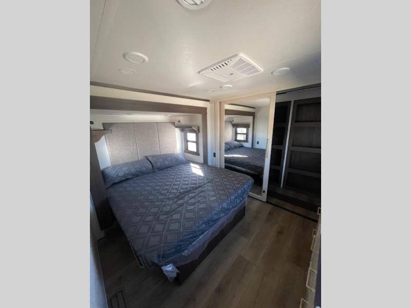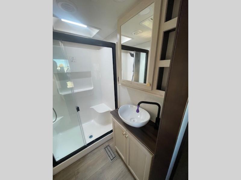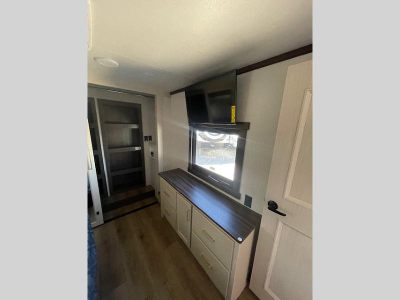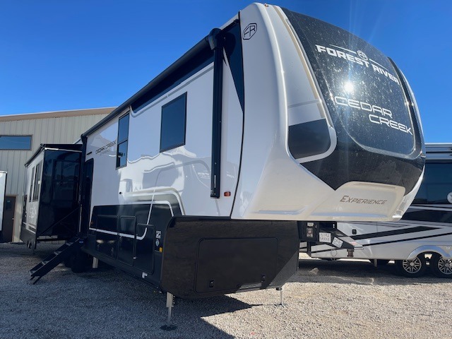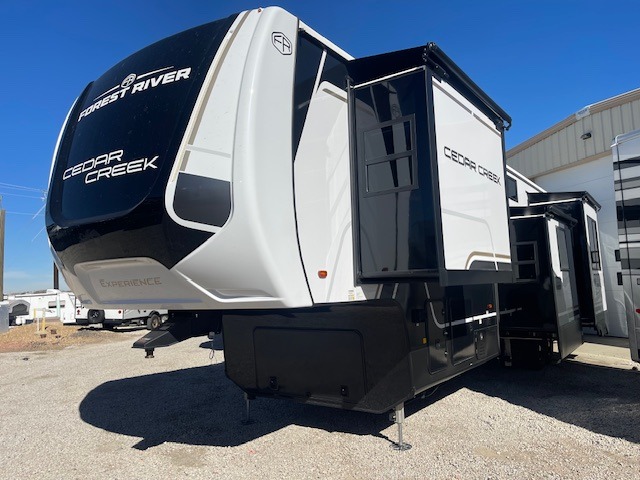 With any Cedar Creek fifth wheel by Forest River, you will find a quality-built RV with your comfort in mind! The all-aluminum super structure on 16" centers or less will provide a solid foundation to your fifth wheel, and the 3M bonded sidewalls will hold up and provide resistance to UV, heat, cold moisture, and even highway chemicals. Each model also includes a Road Warrior suspension for smooth towing, a 6-Point Hydraulic ,GEN 3 Leveling System, and a new 101" wide body frame. Inside, you'll enjoy walnut/two tone wooden cabinetry with hidden hinges, cutting board drawer with cut-out trash funnel, motion lighting in the bath and bedroom closet, plus many more comforts. The New Travelfi™ Pay-as-you go internet provides the ability to bring your own internet rather than relying solely on campground WiFi, and the "Rich Solar" 200W solar panel will give you off-grid capabilities!