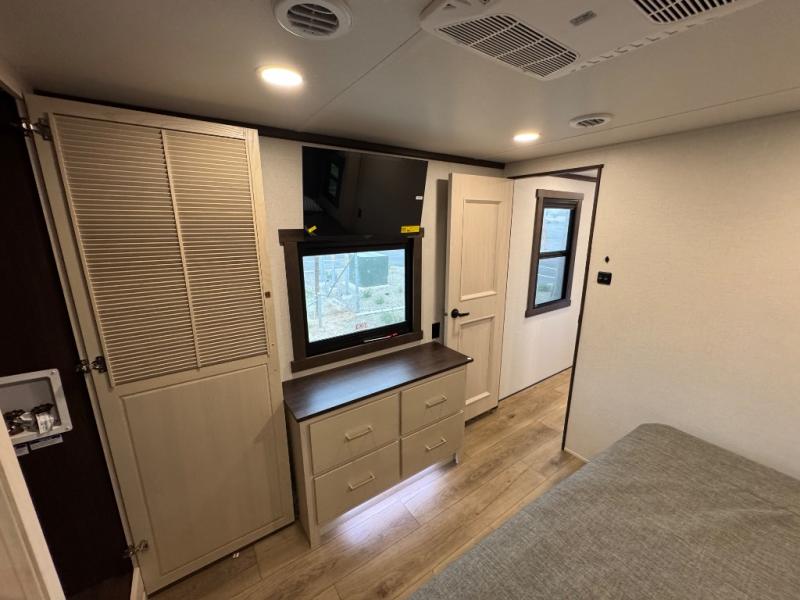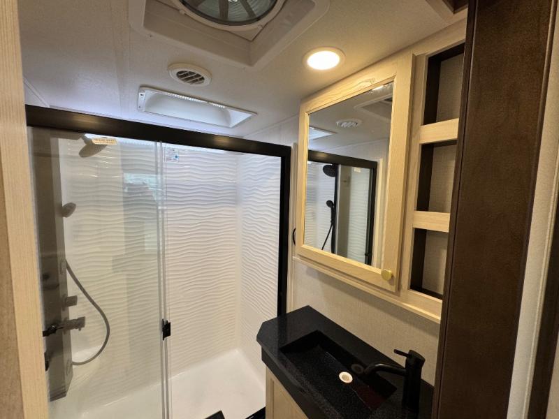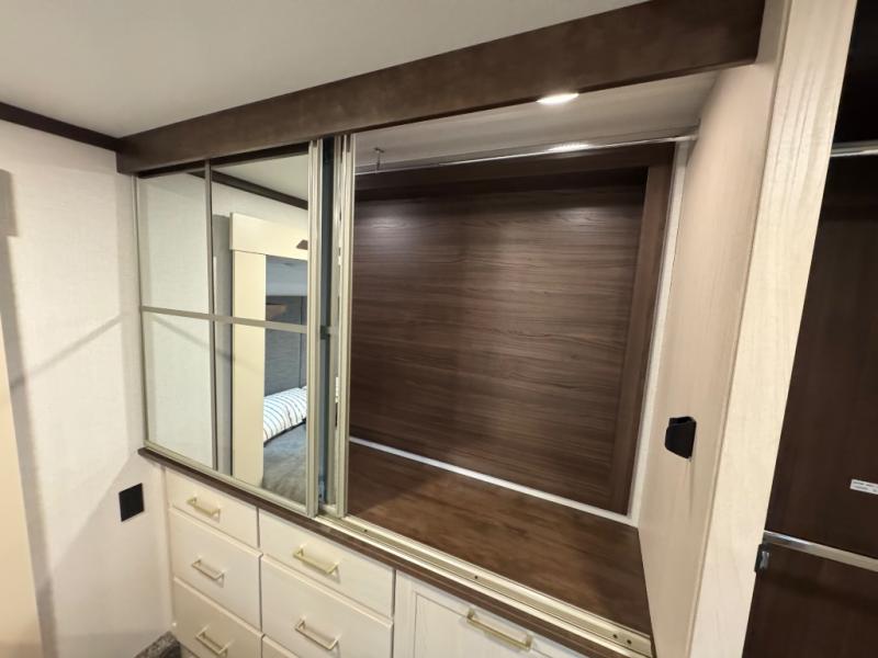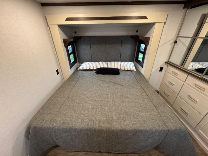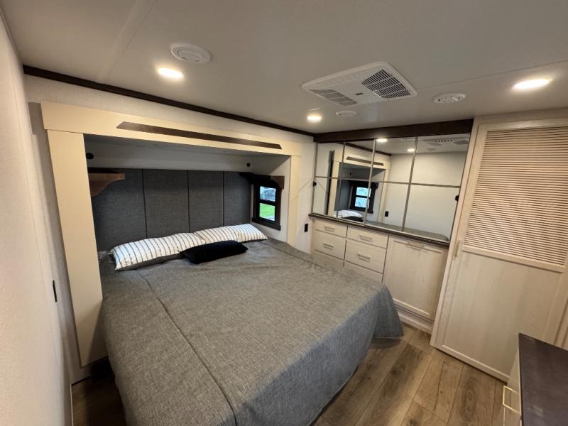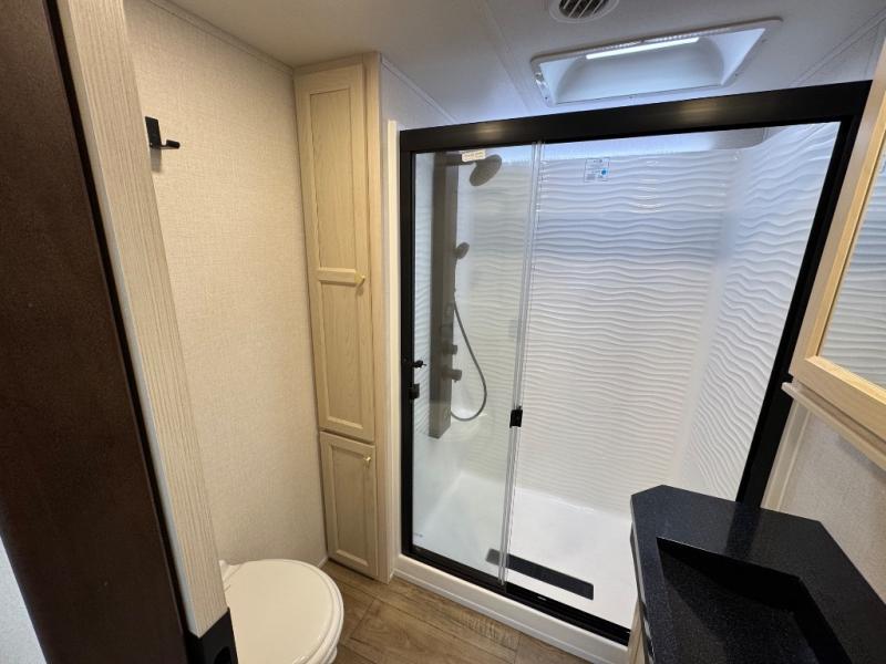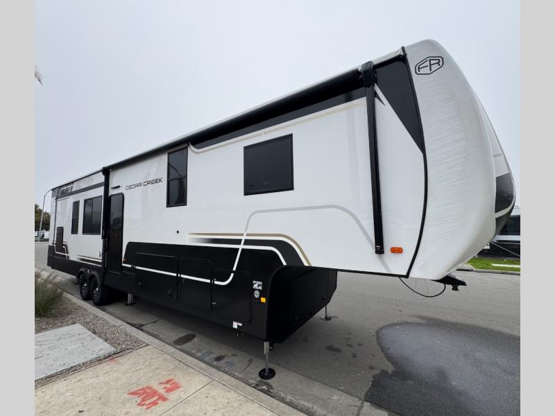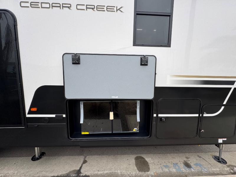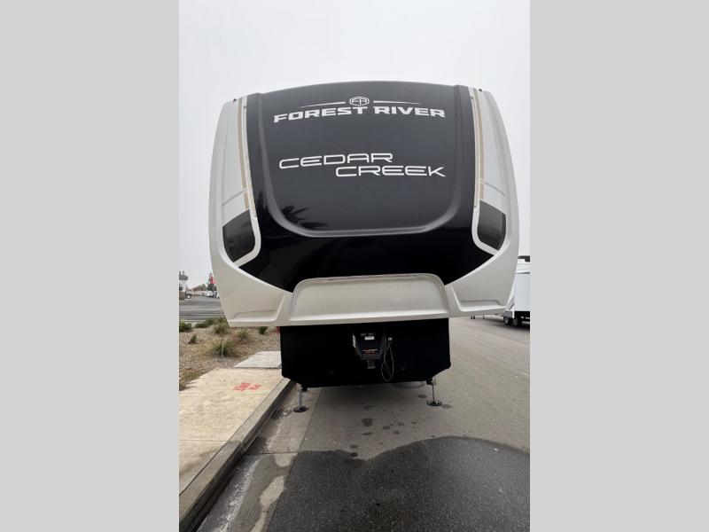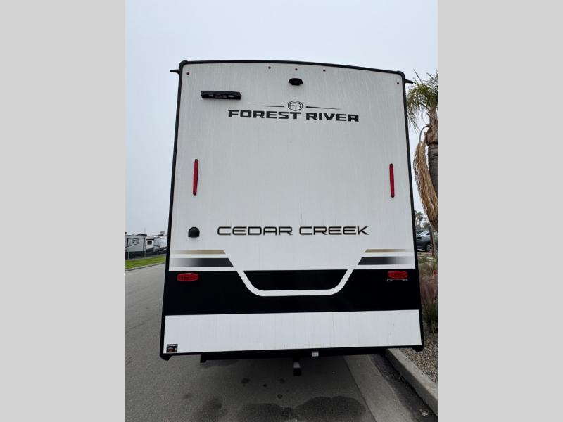 With any Cedar Creek fifth wheel by Forest River, you will find a quality-built RV with your comfort in mind! The all-aluminum super structure on 16" centers or less will provide a solid foundation to your fifth wheel, and the 3M bonded sidewalls will hold up and provide resistance to UV, heat, cold moisture, and even highway chemicals. Each model also includes a Road Warrior suspension for smooth towing, a 6-Point Hydraulic ,GEN 3 Leveling System, and a new 101" wide body frame. Inside, you'll enjoy walnut/two tone wooden cabinetry with hidden hinges, cutting board drawer with cut-out trash funnel, motion lighting in the bath and bedroom closet, plus many more comforts. The New Travelfi™ Pay-as-you go internet provides the ability to bring your own internet rather than relying solely on campground WiFi, and the "Rich Solar" 200W solar panel will give you off-grid capabilities!