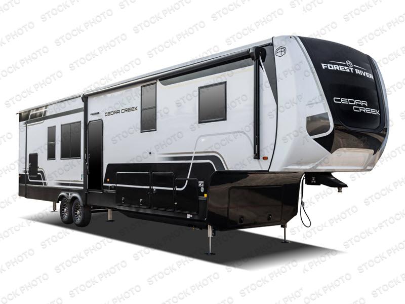 With any Cedar Creek fifth wheel by Forest River, you will find a quality-built RV with your comfort in mind! The all-aluminum super structure on 16" centers or less will provide a solid foundation to your fifth wheel, and the 3M bonded sidewalls will hold up and provide resistance to UV, heat, cold moisture, and even highway chemicals. Each model also includes a Road Warrior suspension for smooth towing, a 6-Point Hydraulic ,GEN 3 Leveling System, and a new 101" wide body frame. Inside, you'll enjoy walnut/two tone wooden cabinetry with hidden hinges, cutting board drawer with cut-out trash funnel, motion lighting in the bath and bedroom closet, plus many more comforts. The New Travelfi™ Pay-as-you go internet provides the ability to bring your own internet rather than relying solely on campground WiFi, and the "Rich Solar" 200W solar panel will give you off-grid capabilities!