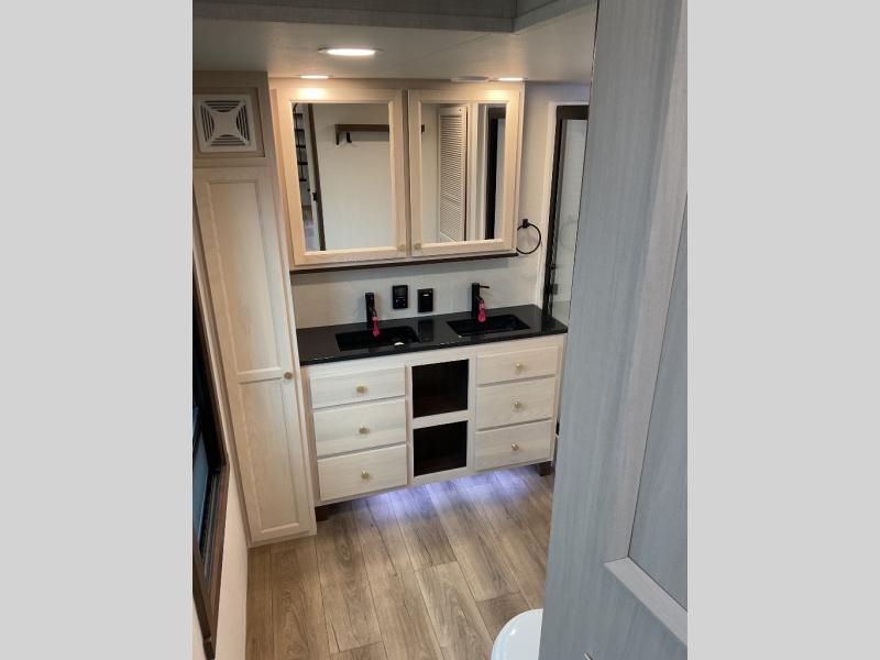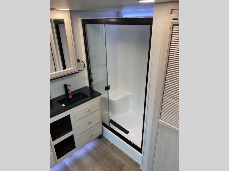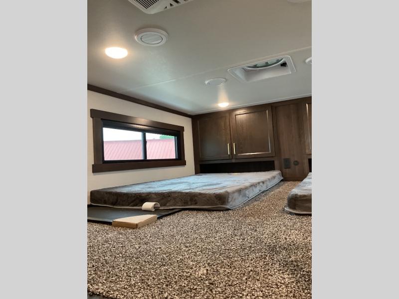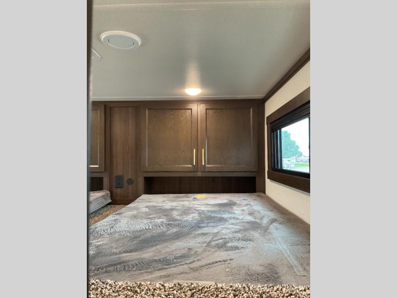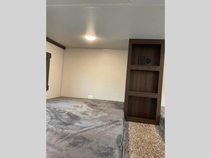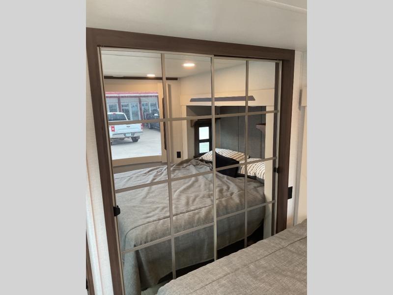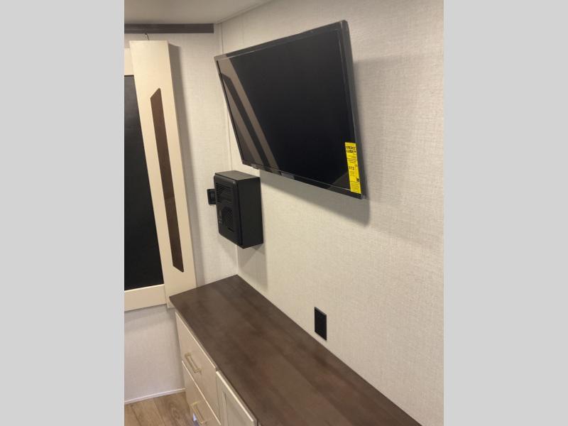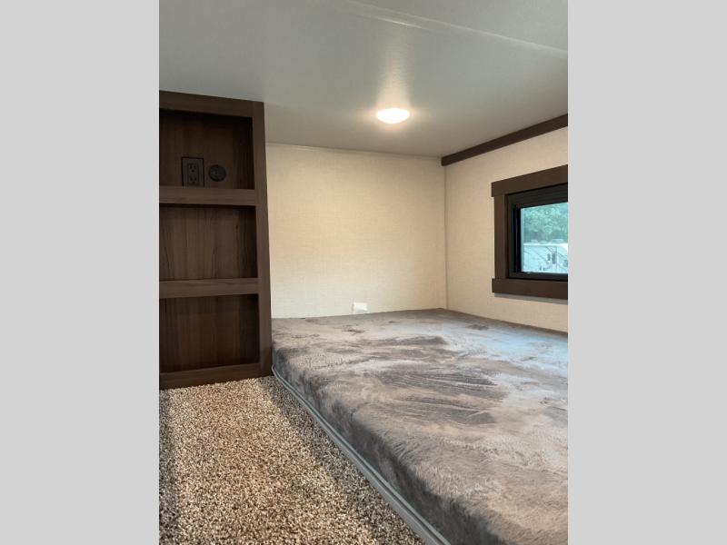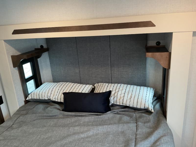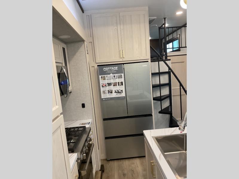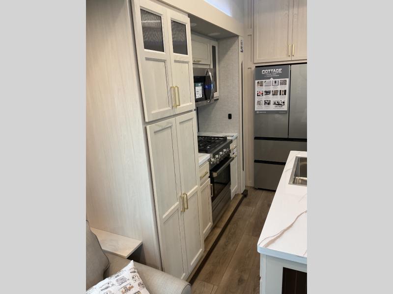 With any Cedar Creek Cottage destination trailer by Forest River, you can enjoy extended stays with residential features at the location of your choice! Each model is built with 3M bonded sidewalls that grow stronger with age and are resistant to UV, heat, oil, moisture, and more. There is also an AlphaPly TPO roof membrane, detachable entry steps, and new waterproof and bug proof Vixenite slide room floor panels for added durability. Head inside where you'll find residential dovetail, self-closing drawers, flush floor slides in the kitchen and living area, a residential style headboard and luxurious bedding decor, and extra storage for linens in the bedroom and bath. Each model is also pre-wired for satellite to the roof, and you can stay connected with the new Cradle Point WiFi/5G antenna and Day 1 connectivity.