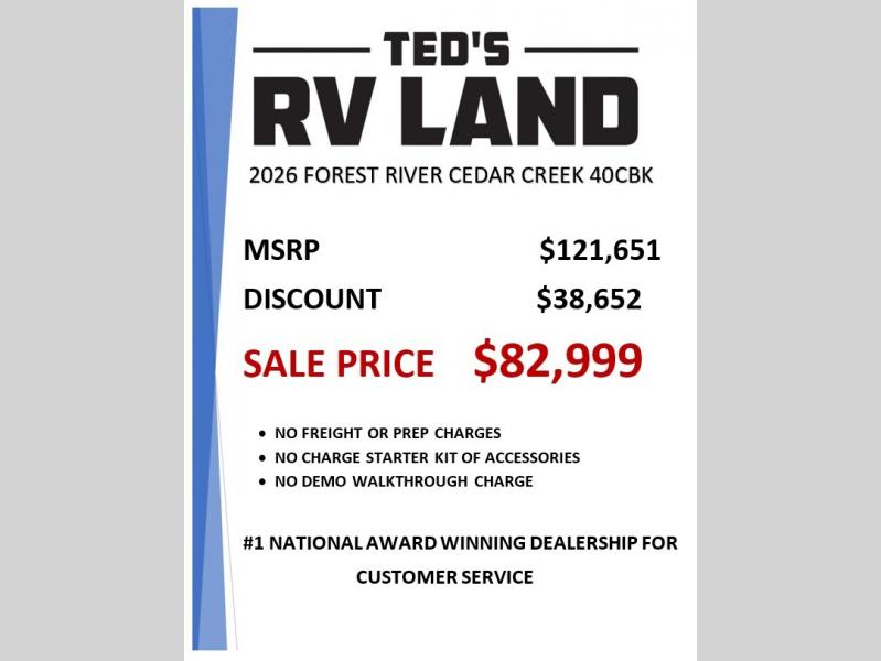 New 2026 Forest River RV Cedar Creek Cottage 40CBK Destination Trailer