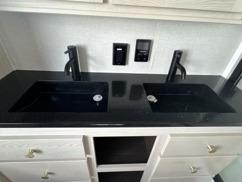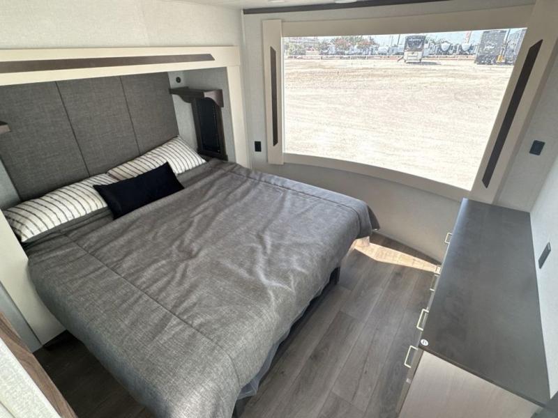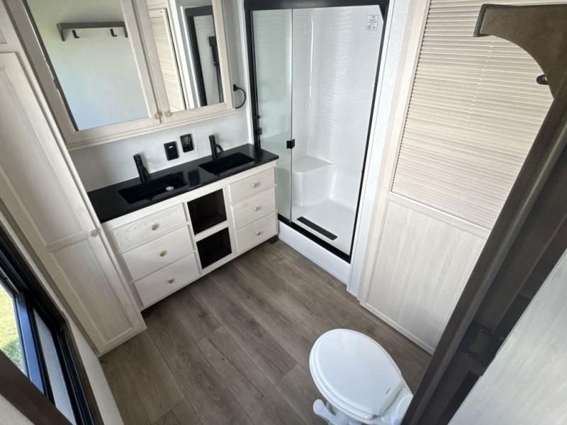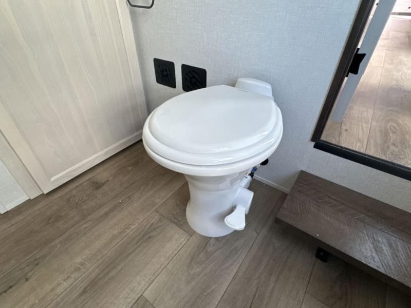With any Cedar Creek Cottage destination trailer by Forest River, you can enjoy extended stays with residential features at the location of your choice! Each model is built with 3M bonded sidewalls that grow stronger with age and are resistant to UV, heat, oil, moisture, and more. There is also an AlphaPly TPO roof membrane, detachable entry steps, and new waterproof and bug proof Vixenite slide room floor panels for added durability. Head inside where you'll find residential dovetail, self-closing drawers, flush floor slides in the kitchen and living area, a residential style headboard and luxurious bedding decor, and extra storage for linens in the bedroom and bath. Each model is also pre-wired for satellite to the roof, and you can stay connected with the new Cradle Point WiFi/5G antenna and Day 1 connectivity.
