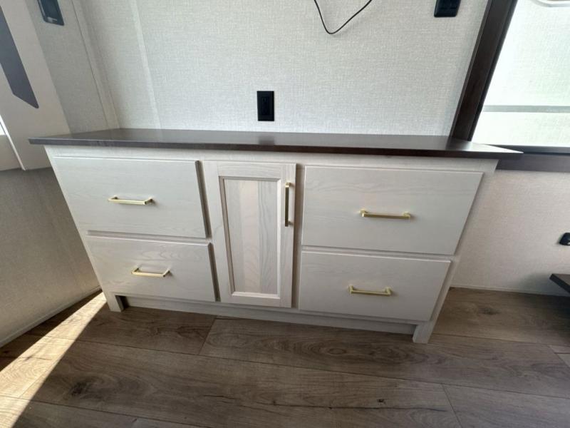 With any Cedar Creek Cottage destination trailer by Forest River, you can enjoy extended stays with residential features at the location of your choice! Each model is built with 3M bonded sidewalls that grow stronger with age and are resistant to UV, heat, oil, moisture, and more. There is also an AlphaPly TPO roof membrane, detachable entry steps, and new waterproof and bug proof Vixenite slide room floor panels for added durability. Head inside where you'll find residential dovetail, self-closing drawers, flush floor slides in the kitchen and living area, a residential style headboard and luxurious bedding decor, and extra storage for linens in the bedroom and bath. Each model is also pre-wired for satellite to the roof, and you can stay connected with the new Cradle Point WiFi/5G antenna and Day 1 connectivity.