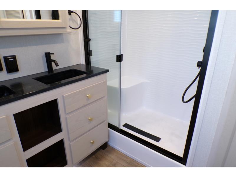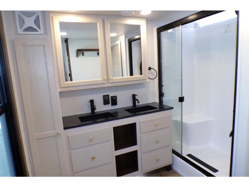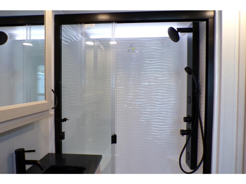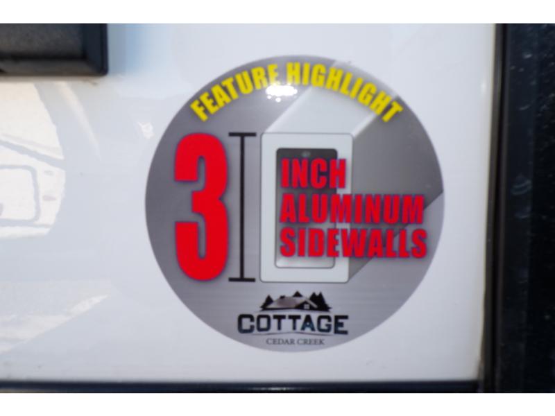With any Cedar Creek Cottage destination trailer by Forest River, you can enjoy extended stays with residential features at the location of your choice! Each model is built with 3M bonded sidewalls that grow stronger with age and are resistant to UV, heat, oil, moisture, and more. There is also an AlphaPly TPO roof membrane, and new waterproof and bug proof Vixenite slide room floor panels for added durability. Head inside where you'll find residential dovetail, self-closing drawers, flush floor slides in the kitchen and living area, a residential style headboard and luxurious bedding decor, and extra storage for linens in the bedroom and bath.