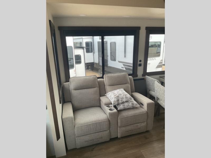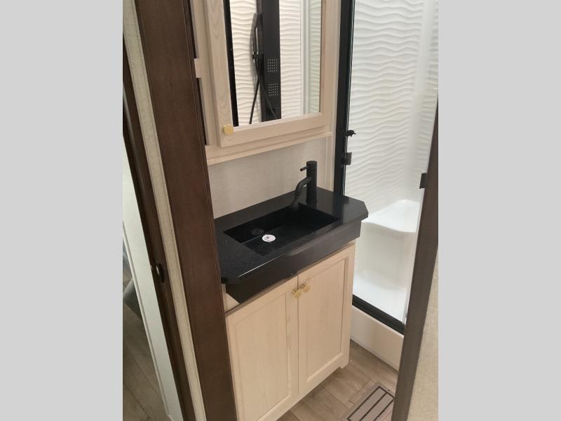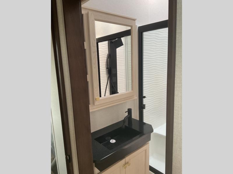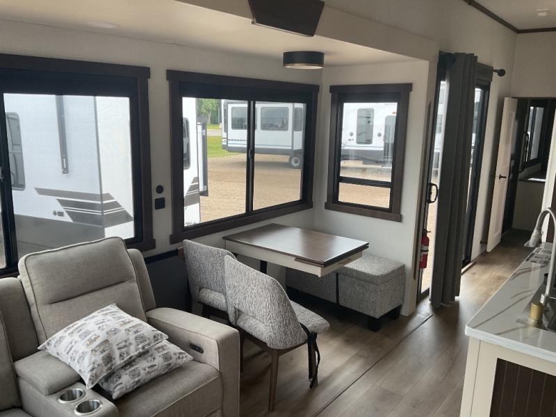 With any Cedar Creek Cottage destination trailer by Forest River, you can enjoy extended stays with residential features at the location of your choice! Each model is built with 3M bonded sidewalls that grow stronger with age and are resistant to UV, heat, oil, moisture, and more. There is also an AlphaPly TPO roof membrane, detachable entry steps, and new waterproof and bug proof Vixenite slide room floor panels for added durability. Head inside where you'll find residential dovetail, self-closing drawers, flush floor slides in the kitchen and living area, a residential style headboard and luxurious bedding decor, and extra storage for linens in the bedroom and bath. Each model is also pre-wired for satellite to the roof, and you can stay connected with the new Cradle Point WiFi/5G antenna and Day 1 connectivity.