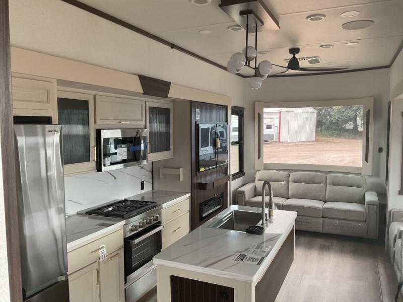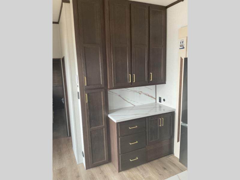 Spend some time getting to know your family a little bit better in this Cedar Creek Cottage destination trailer! You will have plenty of space to do all sorts of indoor activities with the opposing slides and king bed slide for added space, and the free-standing table with chairs has an extension that you can use if you are working on a bigger puzzle or have guests over for dinner. The kitchen features everything you need to create meals for your whole family just like at home. You will love the 18 cu. ft. 12 volt refrigerator so you can stock-up at the grocery store. The Murphy pantry also features all the space needed to store many treats, and you can add an optional dishwasher to help you clean up much faster.
