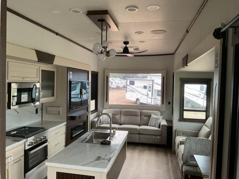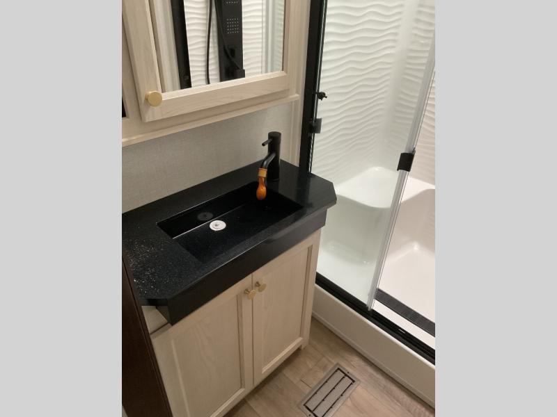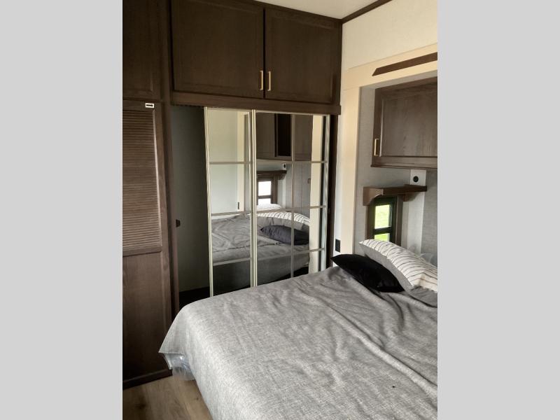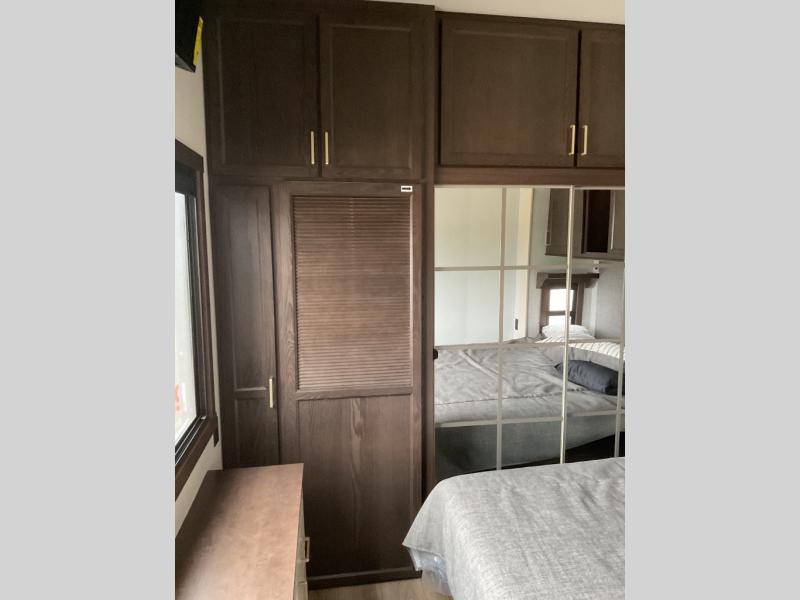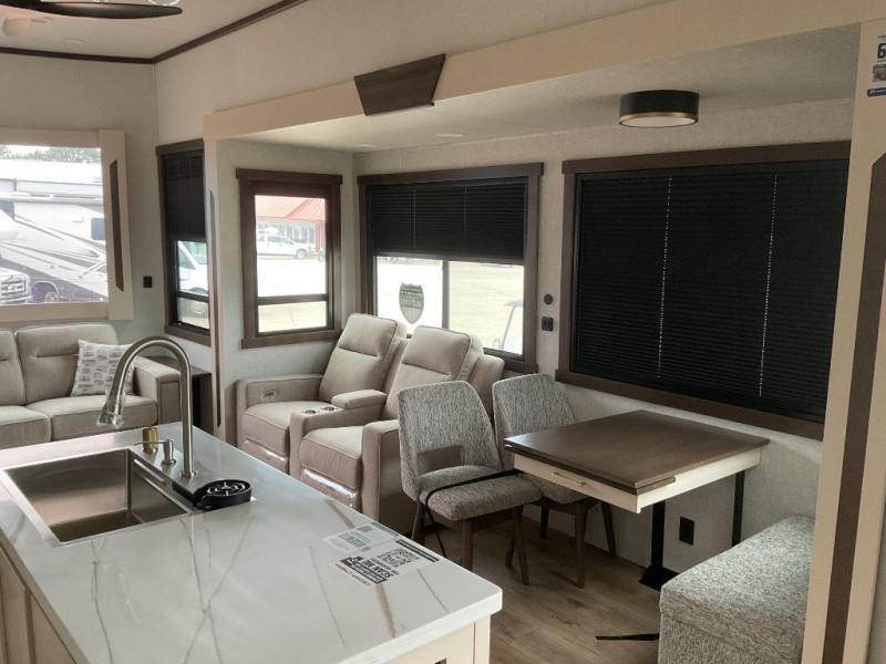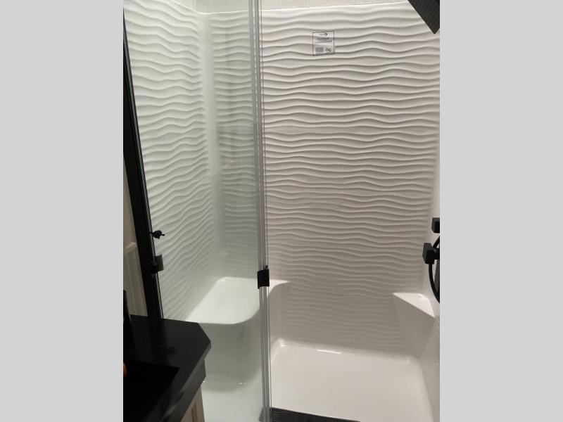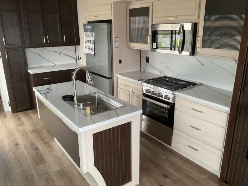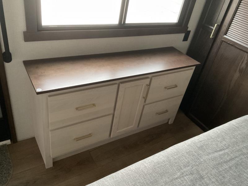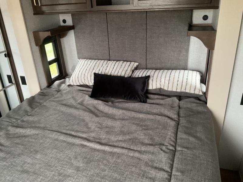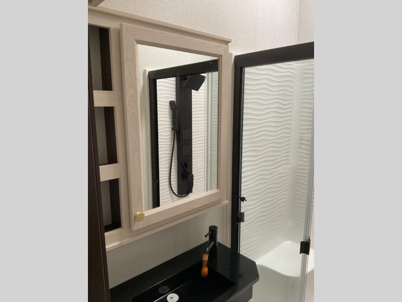 With any Cedar Creek Cottage destination trailer by Forest River, you can enjoy extended stays with residential features at the location of your choice! Each model is built with 3M bonded sidewalls that grow stronger with age and are resistant to UV, heat, oil, moisture, and more. There is also an AlphaPly TPO roof membrane, detachable entry steps, and new waterproof and bug proof Vixenite slide room floor panels for added durability. Head inside where you'll find residential dovetail, self-closing drawers, flush floor slides in the kitchen and living area, a residential style headboard and luxurious bedding decor, and extra storage for linens in the bedroom and bath. Each model is also pre-wired for satellite to the roof, and you can stay connected with the new Cradle Point WiFi/5G antenna and Day 1 connectivity.