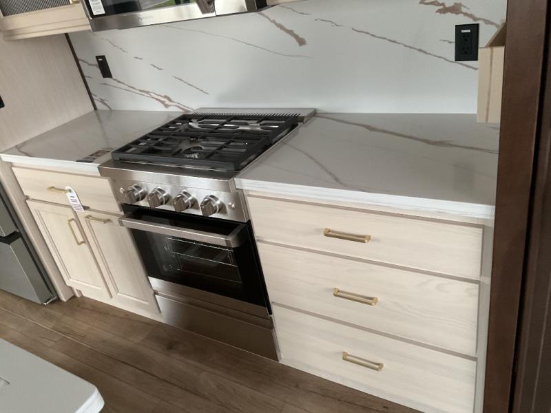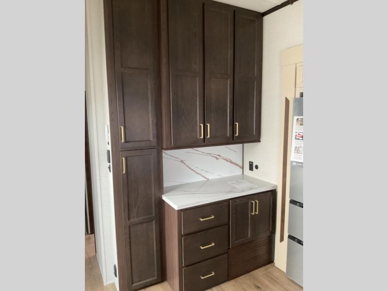 Spend some time getting to know your family a little bit better in this Cedar Creek Cottage destination trailer! You will have plenty of space to do all sorts of indoor activities with the opposing slides and king bed slide for added space, and the free-standing table with chairs has an extension that you can use if you are working on a bigger puzzle or have guests over for dinner. The kitchen features everything you need to create meals for your whole family just like at home. You will love the 18 cu. ft. 12 volt refrigerator so you can stock-up at the grocery store. The Murphy pantry also features all the space needed to store many treats, and you can add an optional dishwasher to help you clean up much faster.