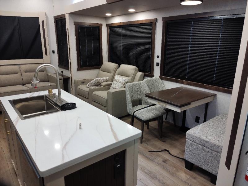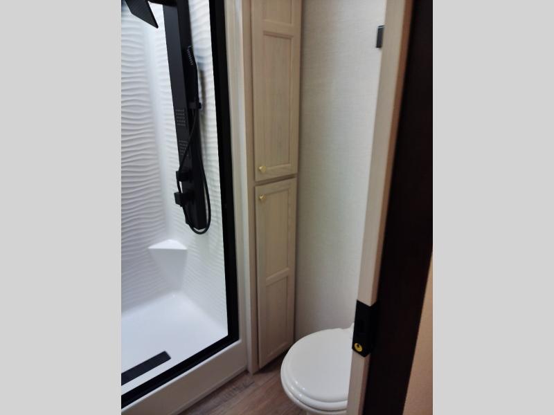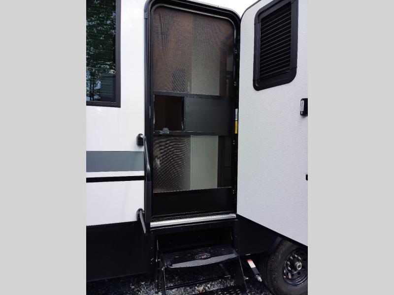 With any Cedar Creek Cottage destination trailer by Forest River, you can enjoy extended stays with residential features at the location of your choice! Each model is built with 3M bonded sidewalls that grow stronger with age and are resistant to UV, heat, oil, moisture, and more. There is also an AlphaPly TPO roof membrane, detachable entry steps, and new waterproof and bug proof Vixenite slide room floor panels for added durability. Head inside where you'll find residential dovetail, self-closing drawers, flush floor slides in the kitchen and living area, a residential style headboard and luxurious bedding decor, and extra storage for linens in the bedroom and bath. Each model is also pre-wired for satellite to the roof, and you can stay connected with the new Cradle Point WiFi/5G antenna and Day 1 connectivity.