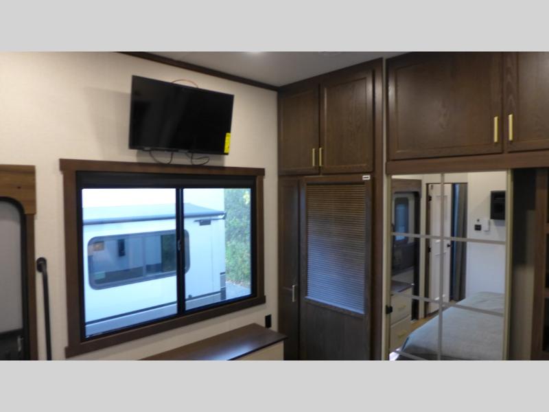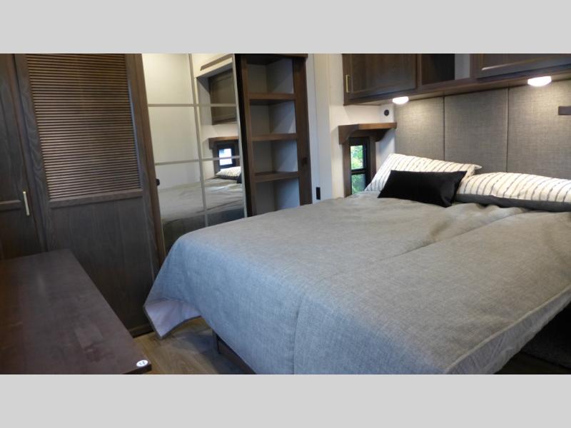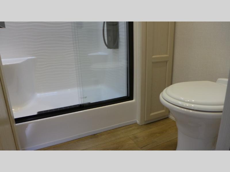 With any Cedar Creek Cottage destination trailer by Forest River, you can enjoy extended stays with residential features at the location of your choice! Each model is built with 3M bonded sidewalls that grow stronger with age and are resistant to UV, heat, oil, moisture, and more. There is also an AlphaPly TPO roof membrane, detachable entry steps, and new waterproof and bug proof Vixenite slide room floor panels for added durability. Head inside where you'll find residential dovetail, self-closing drawers, flush floor slides in the kitchen and living area, a residential style headboard and luxurious bedding decor, and extra storage for linens in the bedroom and bath. Each model is also pre-wired for satellite to the roof, and you can stay connected with the new Cradle Point WiFi/5G antenna and Day 1 connectivity.