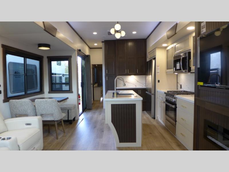 Spend some time getting to know your family a little bit better in this Cedar Creek Cottage destination trailer! You will have plenty of space to do all sorts of indoor activities with the opposing slides and king bed slide for added space, and the free-standing table with chairs has an extension that you can use if you are working on a bigger puzzle or have guests over for dinner. The kitchen features everything you need to create meals for your whole family just like at home. You will love the 18 cu. ft. 12 volt refrigerator so you can stock-up at the grocery store. The Murphy pantry also features all the space needed to store many treats, and you can add an optional dishwasher to help you clean up much faster.