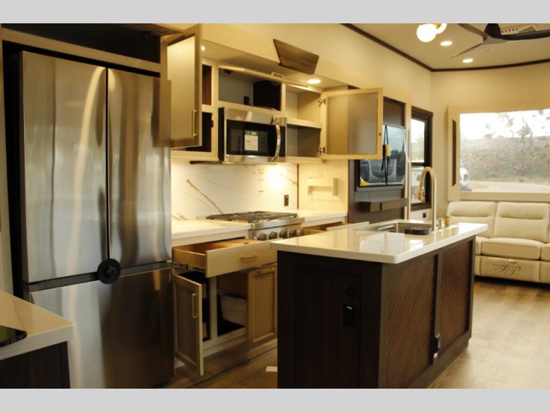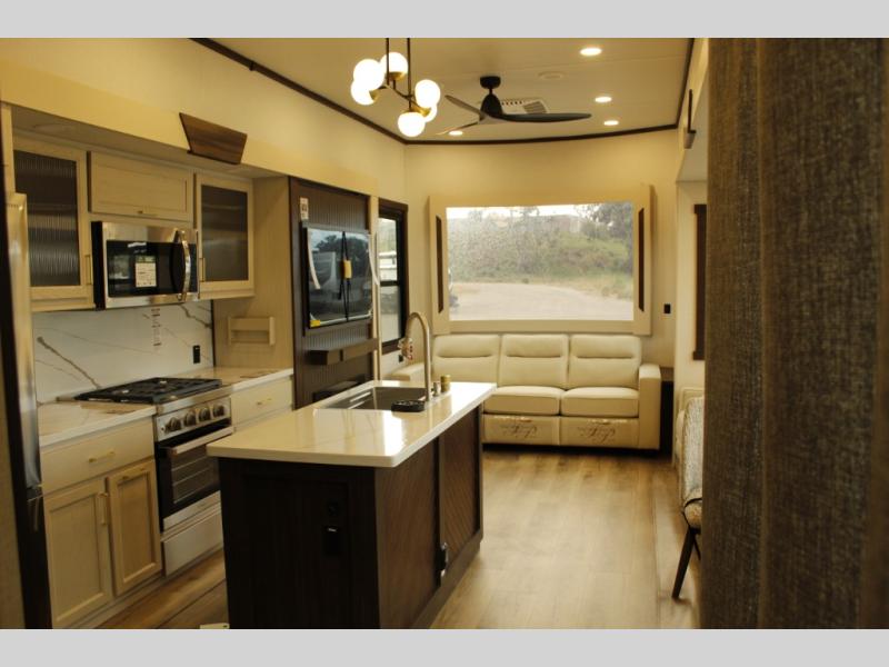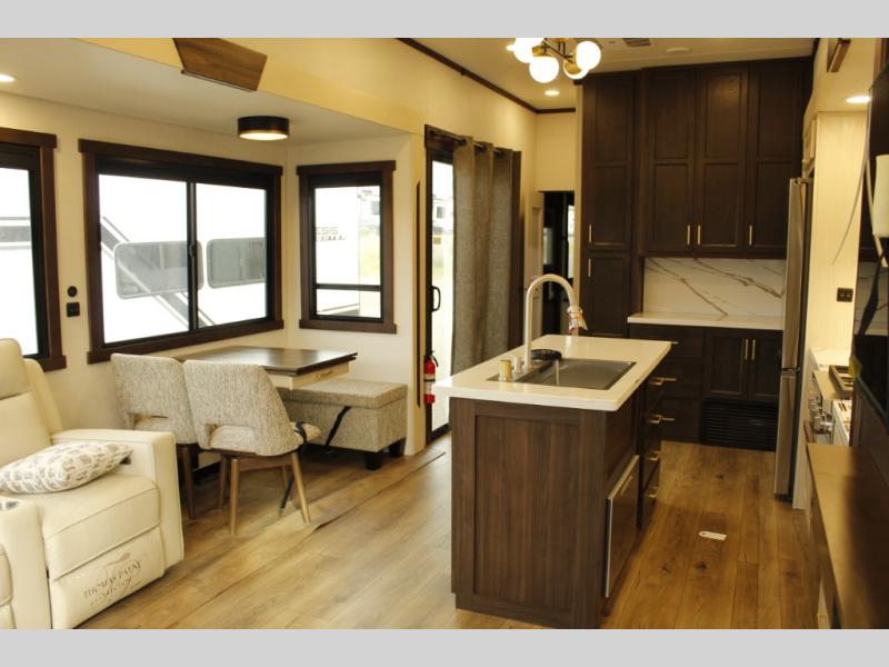 With any Cedar Creek Cottage destination trailer by Forest River, you can enjoy extended stays with residential features at the location of your choice! Each model is built with 3M bonded sidewalls that grow stronger with age and are resistant to UV, heat, oil, moisture, and more. There is also an AlphaPly TPO roof membrane, and new waterproof and bug proof Vixenite slide room floor panels for added durability. Head inside where you'll find residential dovetail, self-closing drawers, flush floor slides in the kitchen and living area, a residential style headboard and luxurious bedding decor, and extra storage for linens in the bedroom and bath.