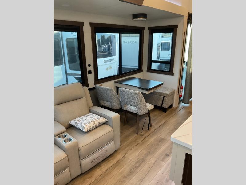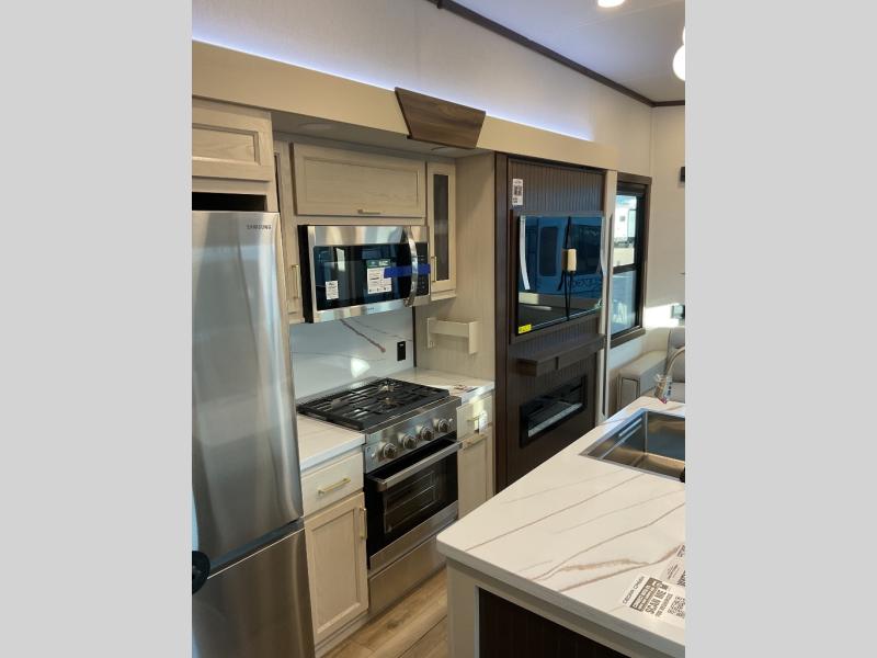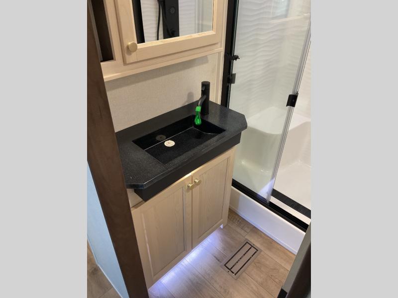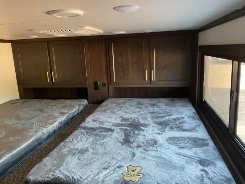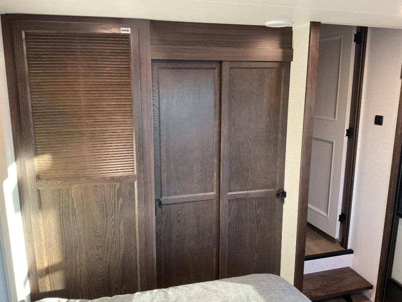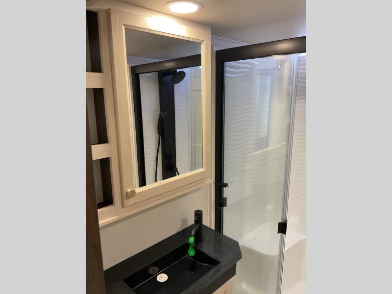 With any Cedar Creek Cottage destination trailer by Forest River, you can enjoy extended stays with residential features at the location of your choice! Each model is built with 3M bonded sidewalls that grow stronger with age and are resistant to UV, heat, oil, moisture, and more. There is also an AlphaPly TPO roof membrane, detachable entry steps, and new waterproof and bug proof Vixenite slide room floor panels for added durability. Head inside where you'll find residential dovetail, self-closing drawers, flush floor slides in the kitchen and living area, a residential style headboard and luxurious bedding decor, and extra storage for linens in the bedroom and bath. Each model is also pre-wired for satellite to the roof, and you can stay connected with the new Cradle Point WiFi/5G antenna and Day 1 connectivity.