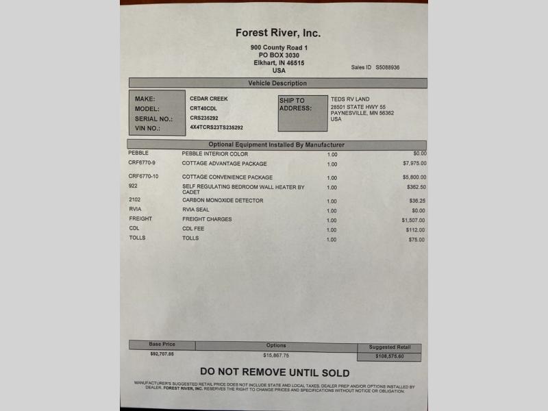 Forest River Cedar Creek Cottage destination trailer 40CDL highlights: