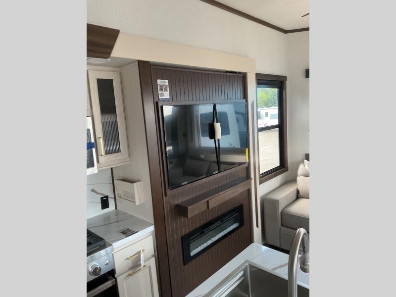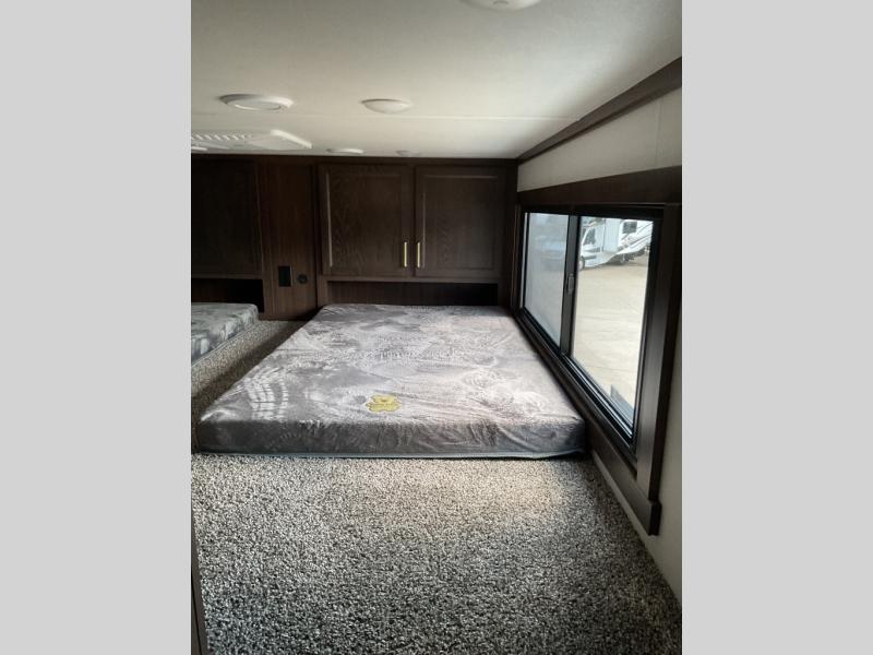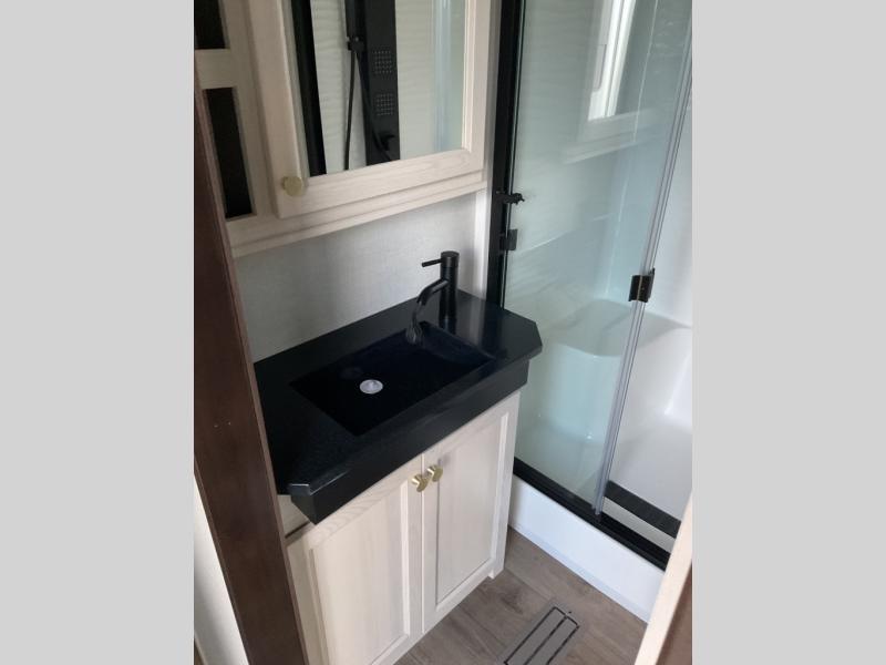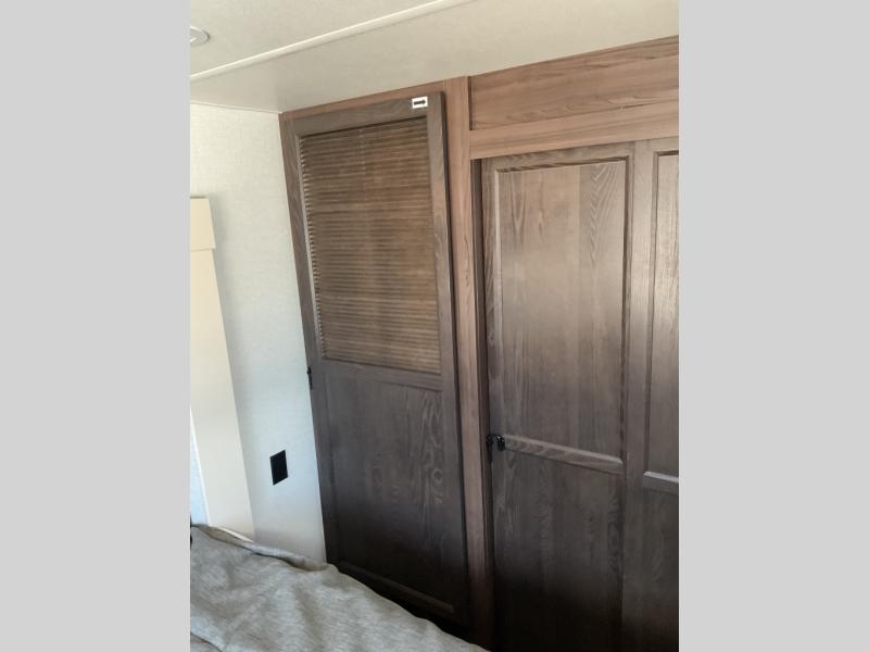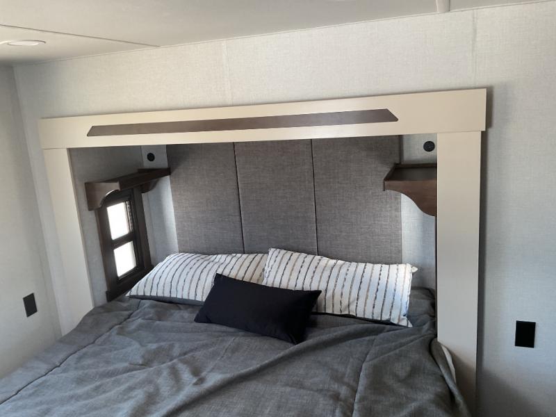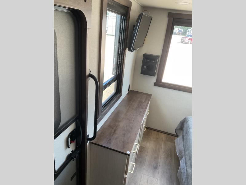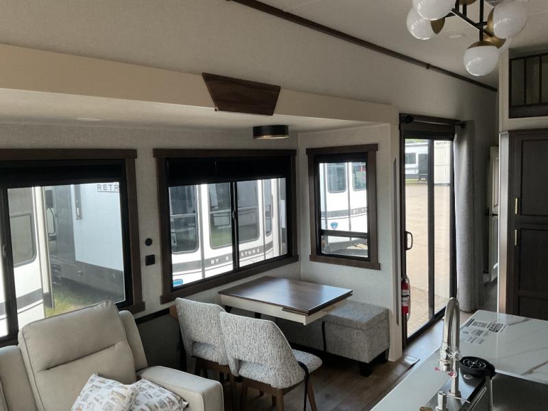 With any Cedar Creek Cottage destination trailer by Forest River, you can enjoy extended stays with residential features at the location of your choice! Each model is built with 3M bonded sidewalls that grow stronger with age and are resistant to UV, heat, oil, moisture, and more. There is also an AlphaPly TPO roof membrane, detachable entry steps, and new waterproof and bug proof Vixenite slide room floor panels for added durability. Head inside where you'll find residential dovetail, self-closing drawers, flush floor slides in the kitchen and living area, a residential style headboard and luxurious bedding decor, and extra storage for linens in the bedroom and bath. Each model is also pre-wired for satellite to the roof, and you can stay connected with the new Cradle Point WiFi/5G antenna and Day 1 connectivity.