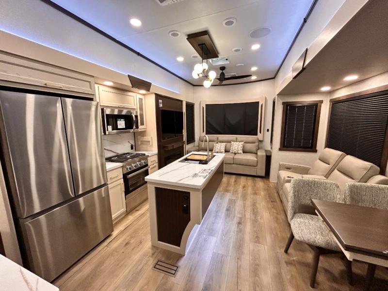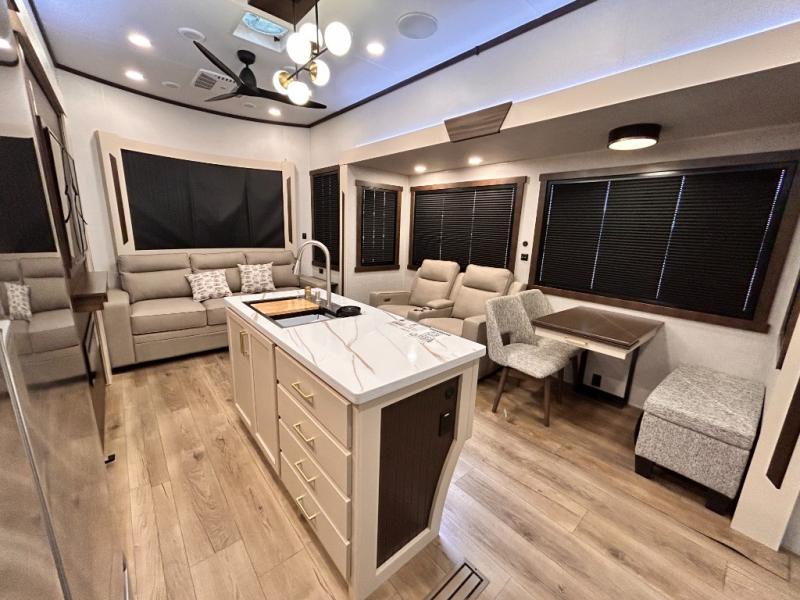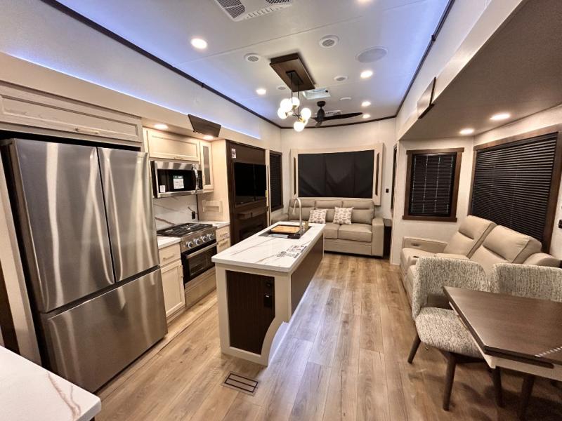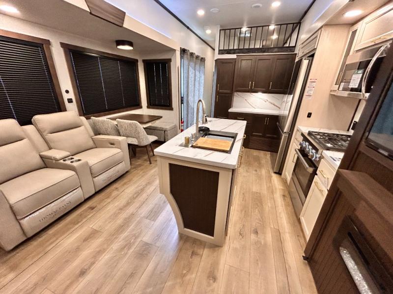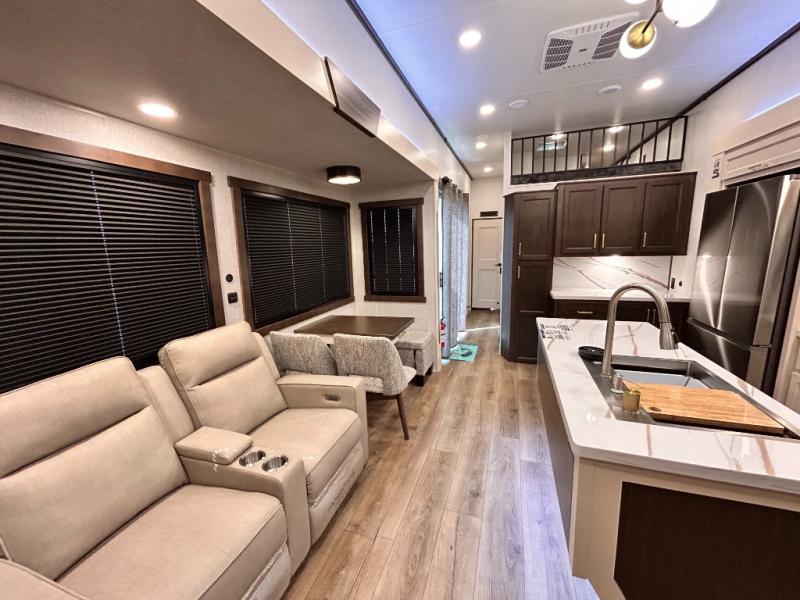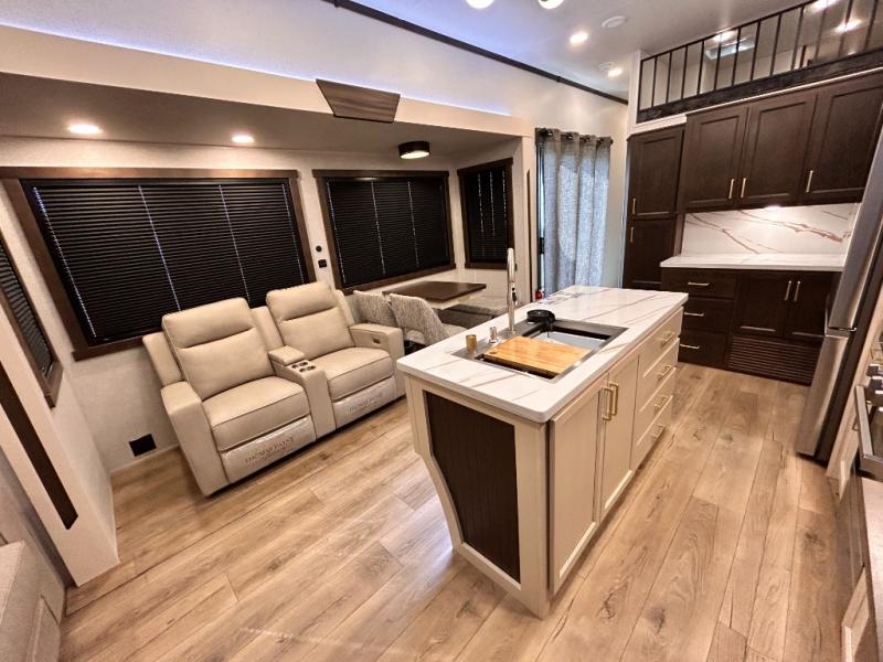 TWO STORIES / FRONT LIVING / THREE BEDROOMS / POWER THEATER SEATS / KING BED / 3 SLIDE OUTS / 2 TV / 3 AC !!!