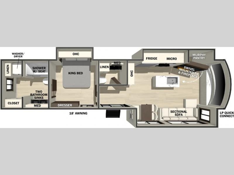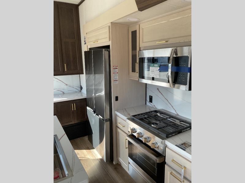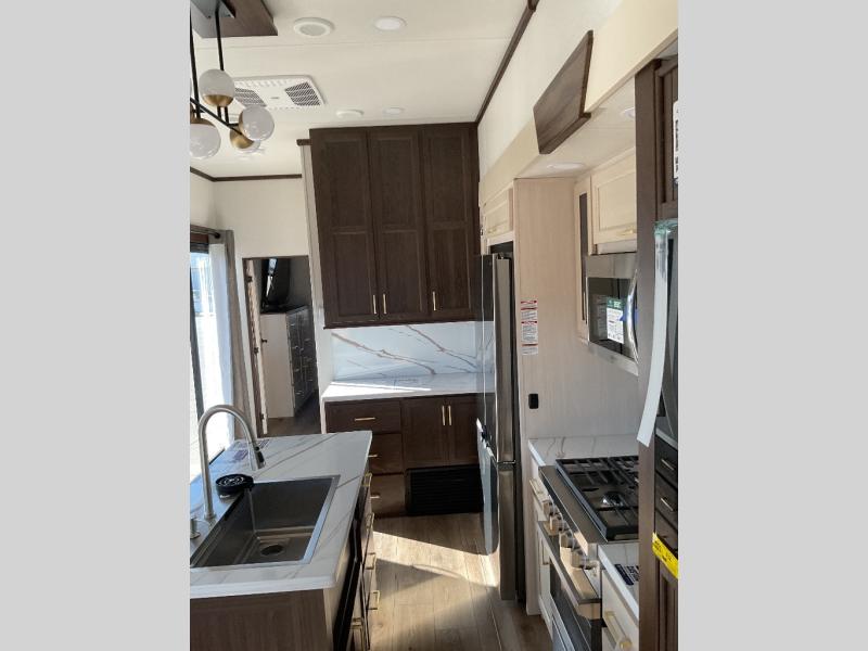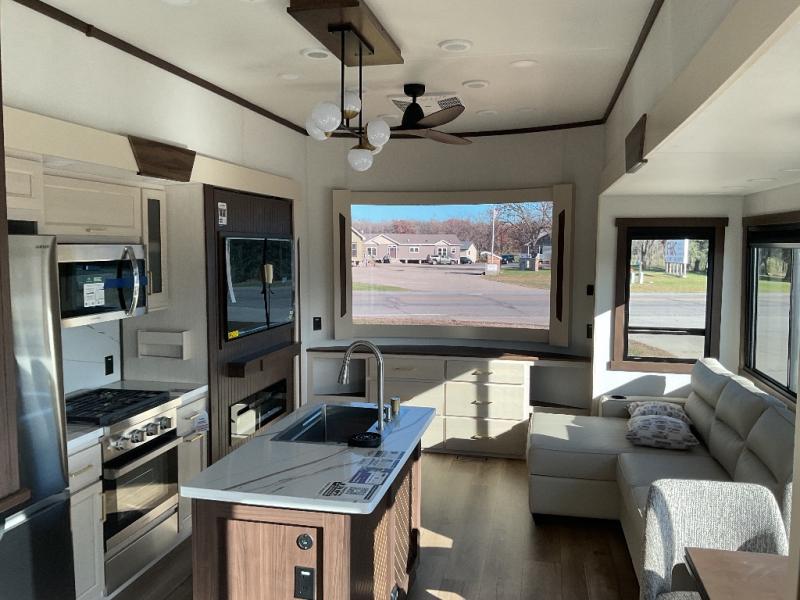 Spend some time getting to know your family a little bit better in this Cedar Creek Cottage destination trailer! You will have plenty of space to do all sorts of indoor activities with the opposing slides and king bed slide for added space, and the free-standing table with chairs has an extension that you can use if you are working on a bigger puzzle or have guests over for dinner. The kitchen features everything you need to create meals for your whole family just like at home. You will love the 18 cu. ft. 12 volt refrigerator so you can stock-up at the grocery store. The Murphy pantry also features all the space needed to store many treats, and you can add an optional dishwasher to help you clean up much faster.