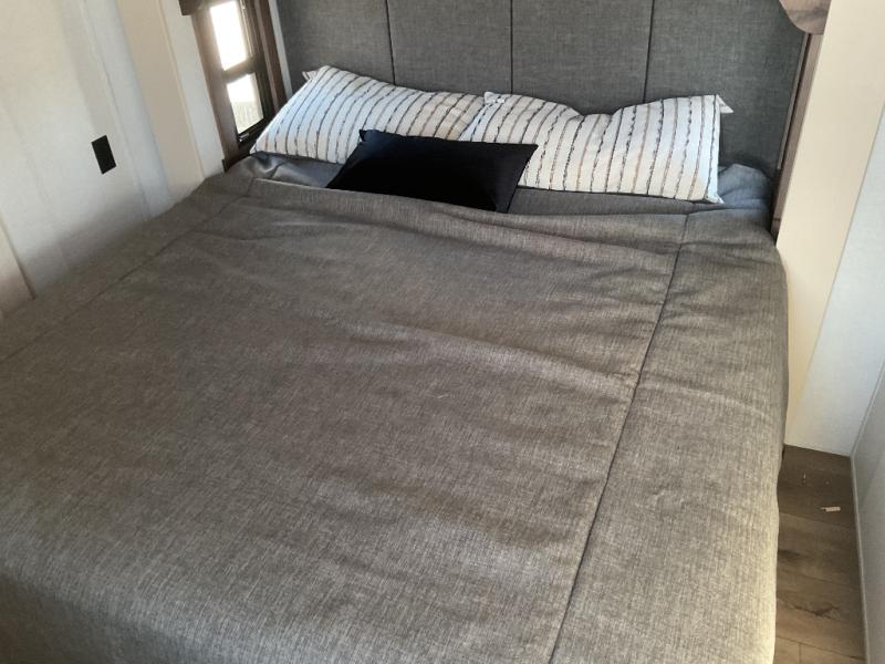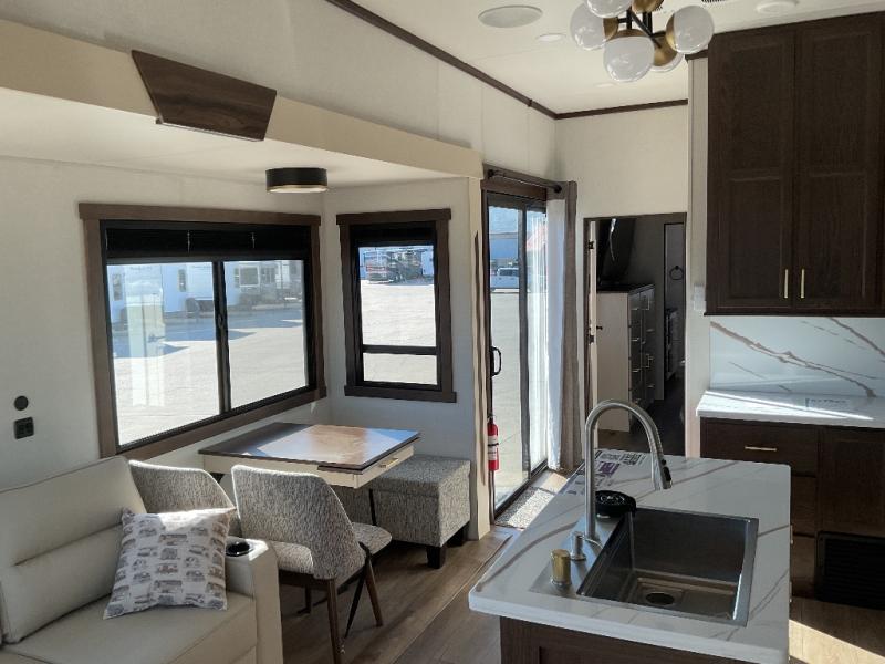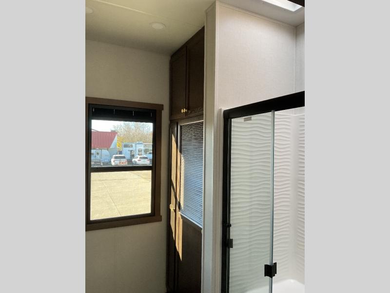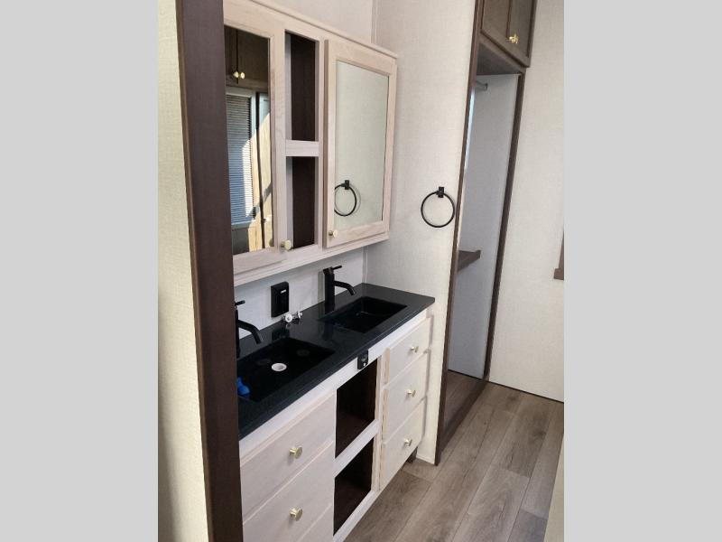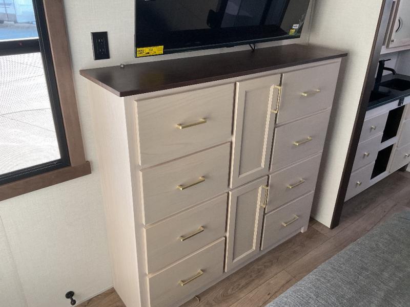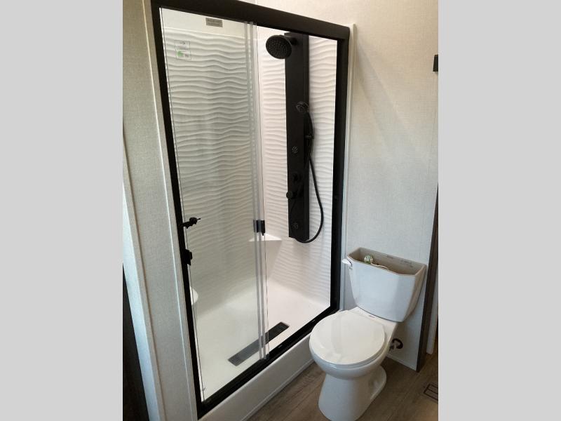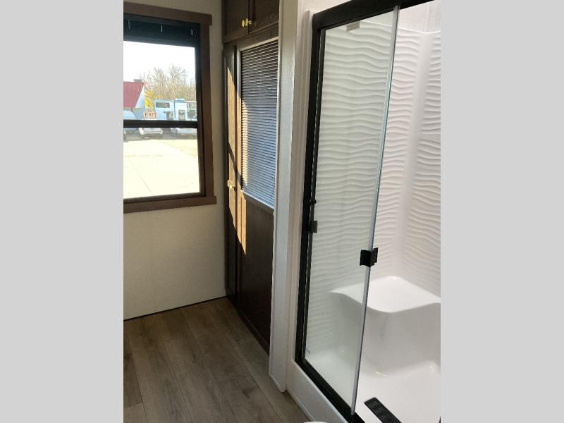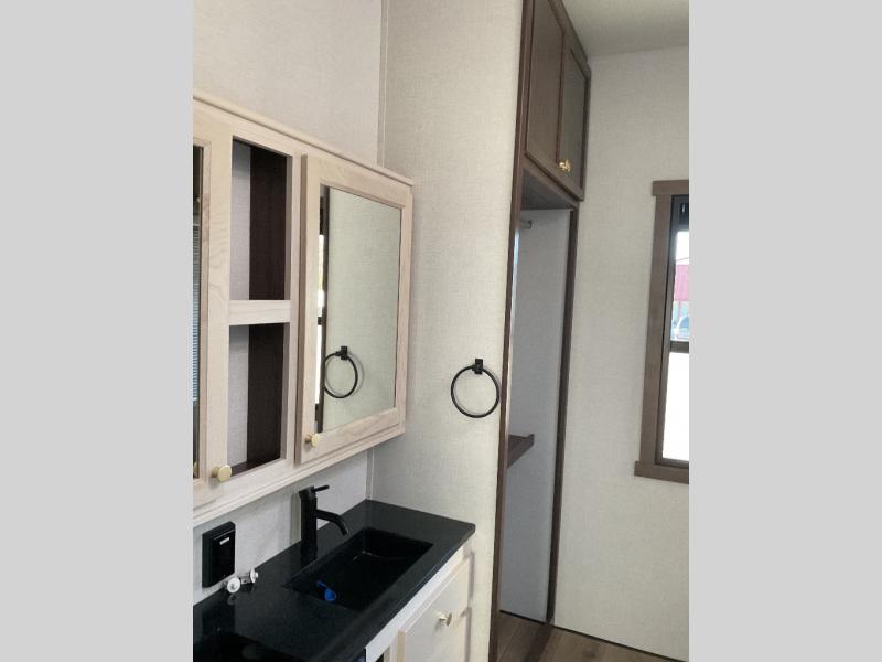 With any Cedar Creek Cottage destination trailer by Forest River, you can enjoy extended stays with residential features at the location of your choice! Each model is built with 3M bonded sidewalls that grow stronger with age and are resistant to UV, heat, oil, moisture, and more. There is also an AlphaPly TPO roof membrane, detachable entry steps, and new waterproof and bug proof Vixenite slide room floor panels for added durability. Head inside where you'll find residential dovetail, self-closing drawers, flush floor slides in the kitchen and living area, a residential style headboard and luxurious bedding decor, and extra storage for linens in the bedroom and bath. Each model is also pre-wired for satellite to the roof, and you can stay connected with the new Cradle Point WiFi/5G antenna and Day 1 connectivity.