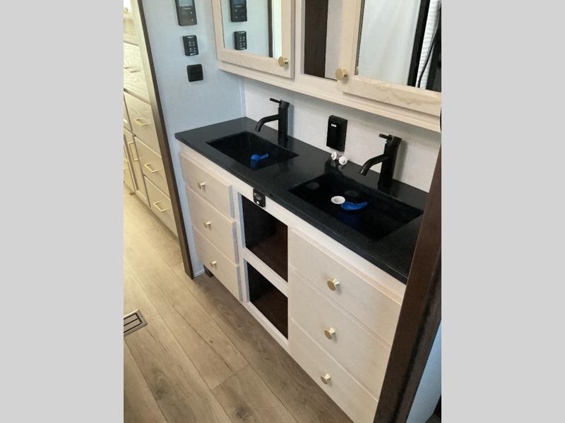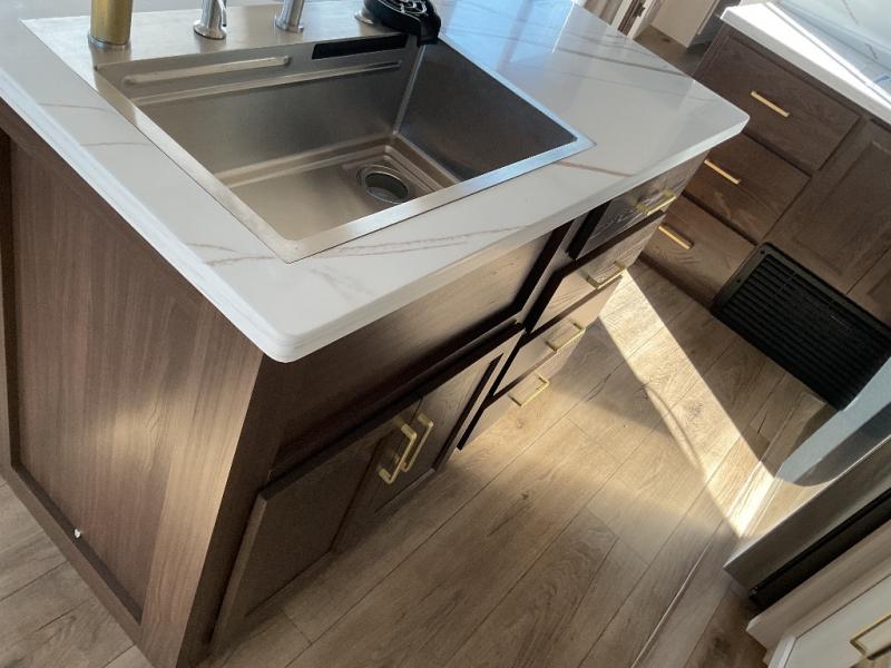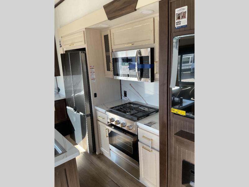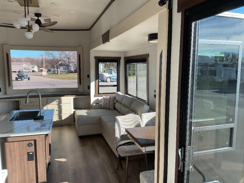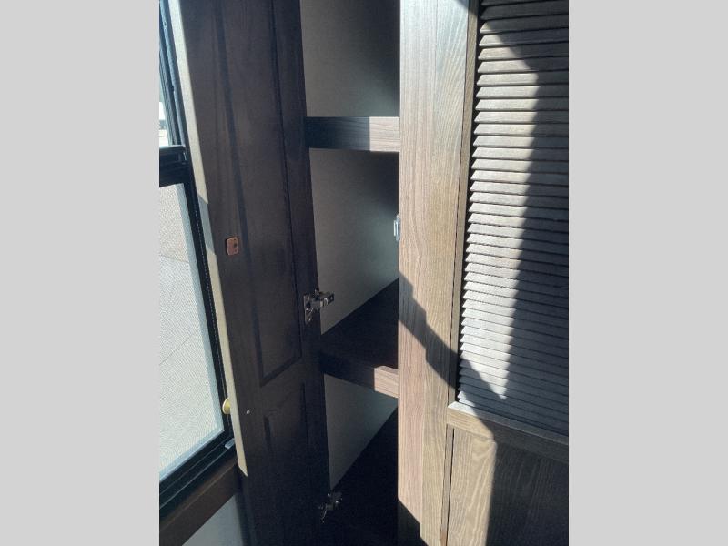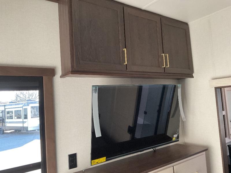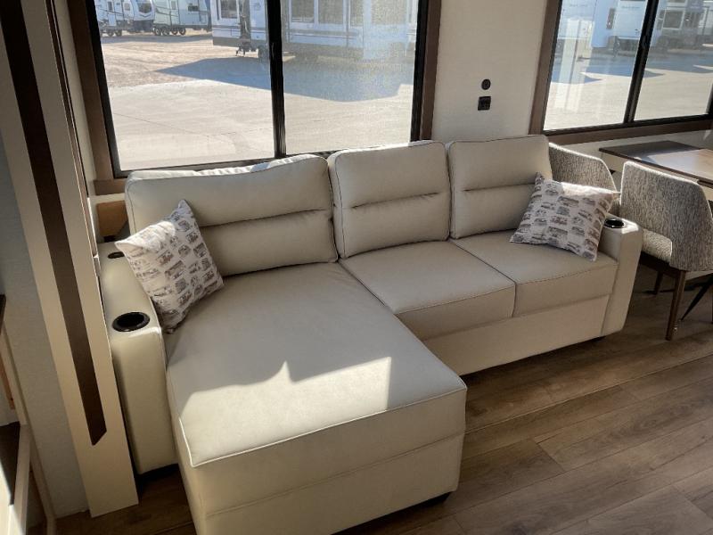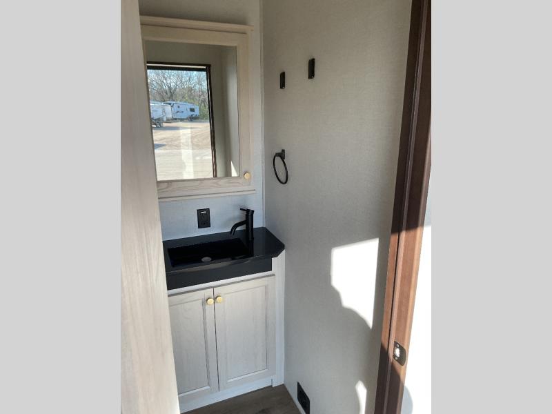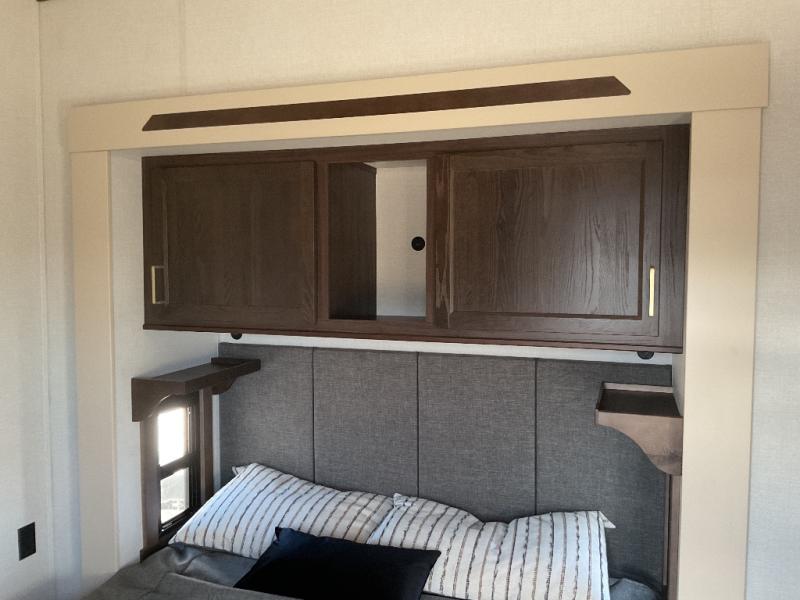 With any Cedar Creek Cottage destination trailer by Forest River, you can enjoy extended stays with residential features at the location of your choice! Each model is built with 3M bonded sidewalls that grow stronger with age and are resistant to UV, heat, oil, moisture, and more. There is also an AlphaPly TPO roof membrane, detachable entry steps, and new waterproof and bug proof Vixenite slide room floor panels for added durability. Head inside where you'll find residential dovetail, self-closing drawers, flush floor slides in the kitchen and living area, a residential style headboard and luxurious bedding decor, and extra storage for linens in the bedroom and bath. Each model is also pre-wired for satellite to the roof, and you can stay connected with the new Cradle Point WiFi/5G antenna and Day 1 connectivity.