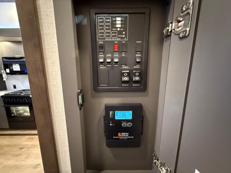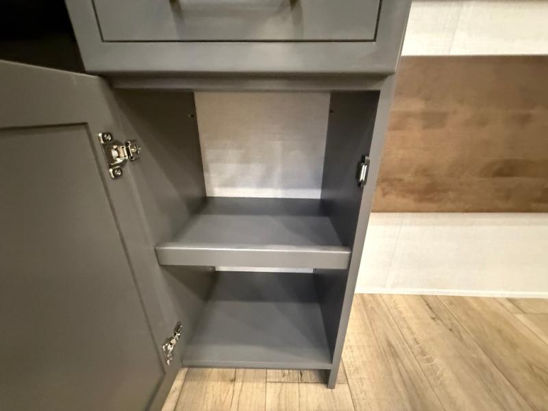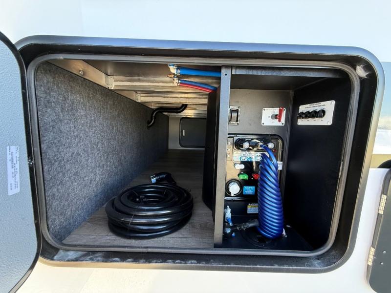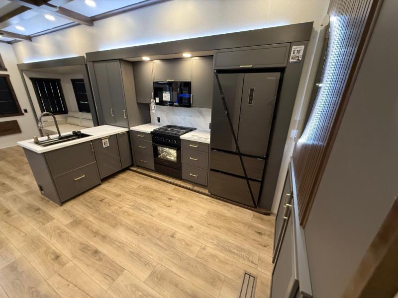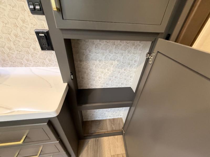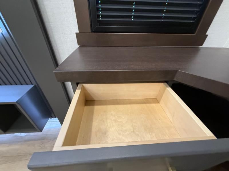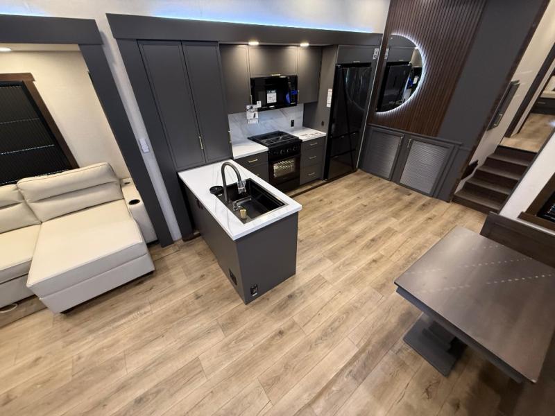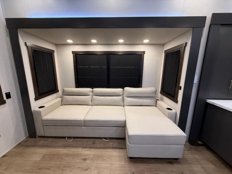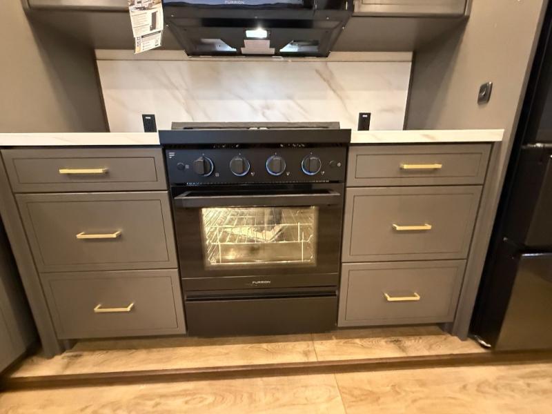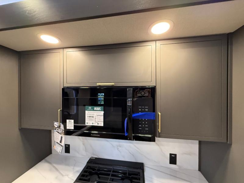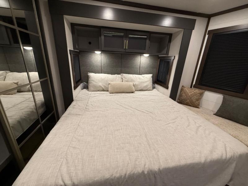 Hop on new adventures with the Forest River Cedar Creek Cottage Fifth Wheels! Each destination fifth wheel features a 101" wide body frame that provides a sturdy foundation for your adventures, while the AlphaPly TPO roof membrane offers superior durability and weather resistance. Plus, the 3M Bonded Sidewalls add an extra layer of protection and strength, and the hydraulic front jacks make setting up camp a breeze. In the luxurious interiors, the vinyl floor covering is easy to clean, and the Vixeinite flush floor slides in the kitchen and living area provide a seamless transition between the floor and the slide-outs. In addition, the 52" ceiling fan in the living room circulates air and adds to the spacious feel, and the kitchen island is a standout feature, boasting a solid surface counter, a flush-mount sink, and a stainless-steel design. You'll feel like you're cooking at home! Finally, the USB ports in the bathroom ensure you can keep your devices charged and within reach, even in the most convenient places.