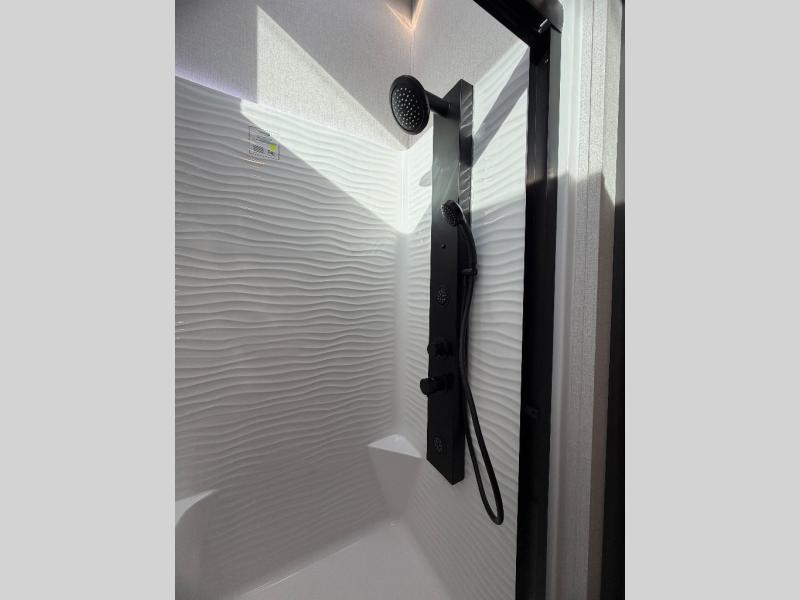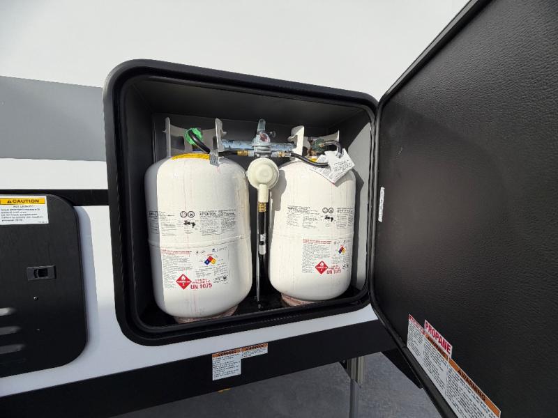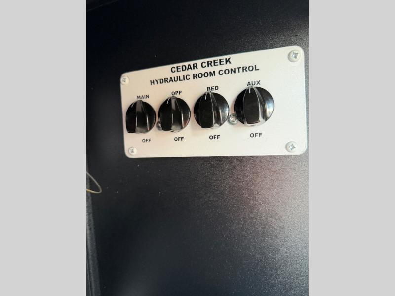 Hop on new adventures with these Forest River Cedar Creek Cottage Fifth Wheels! Each destination fifth wheel features a 101" wide body frame that provides a sturdy foundation for your adventures, while the AlphaPly TPO roof membrane offers superior durability and weather resistance. Plus, the 3M Bonded Sidewalls add an extra layer of protection and strength, and the hydraulic front jacks make setting up camp a breeze. In the luxurious interiors, the vinyl floor covering is easy to clean, and the Vixeinite flush floor slides in the kitchen and living area provide a seamless transition between the floor and the slide-outs. In addition, the 52" ceiling fan in the living room circulates air and adds to the spacious feel, and the kitchen island is a standout feature, boasting a solid surface counter, a flush-mount sink, and a stainless-steel design. You'll feel like you're cooking at home! Finally, the USB ports in the bathroom ensure you can keep your devices charged and within reach, even in the most convenient places.