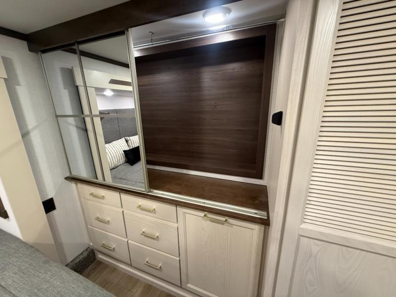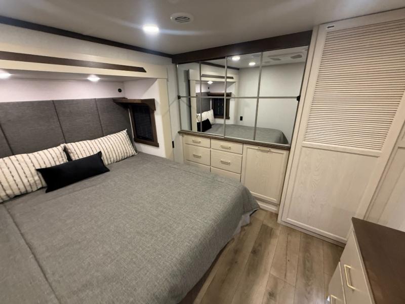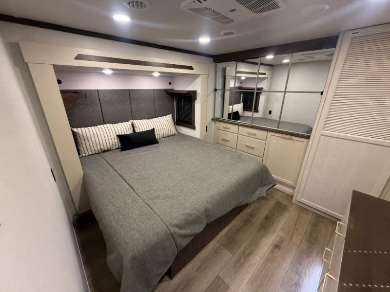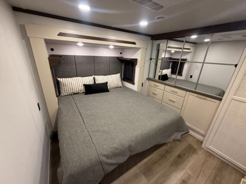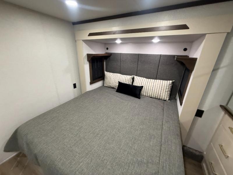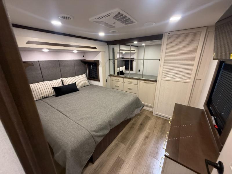REAR LIVING / KING BED / POWER THEATER SEATING/ HEAT PUMP IN BEDROOM / AUTO LEVELING / 200W SOLAR PANEL / 2 TV / 2ND AC!!