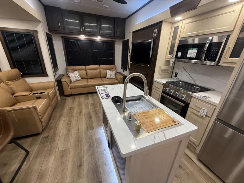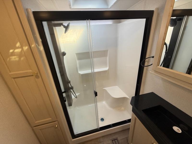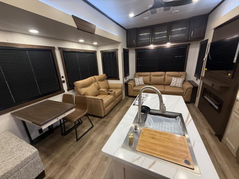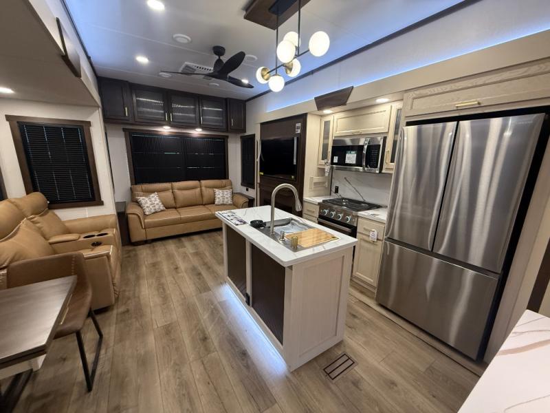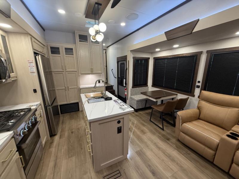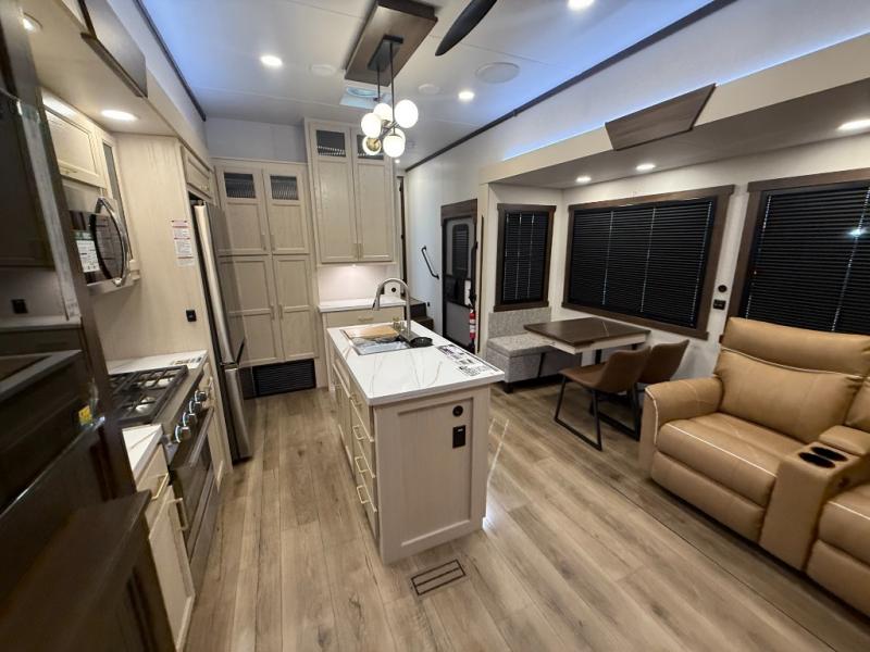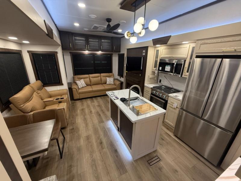 REAR LIVING / KING BED / POWER THEATER SEATING/ HEAT PUMP IN BEDROOM / AUTO LEVELING / 200W SOLAR PANEL / 2 TV / 2ND AC!!