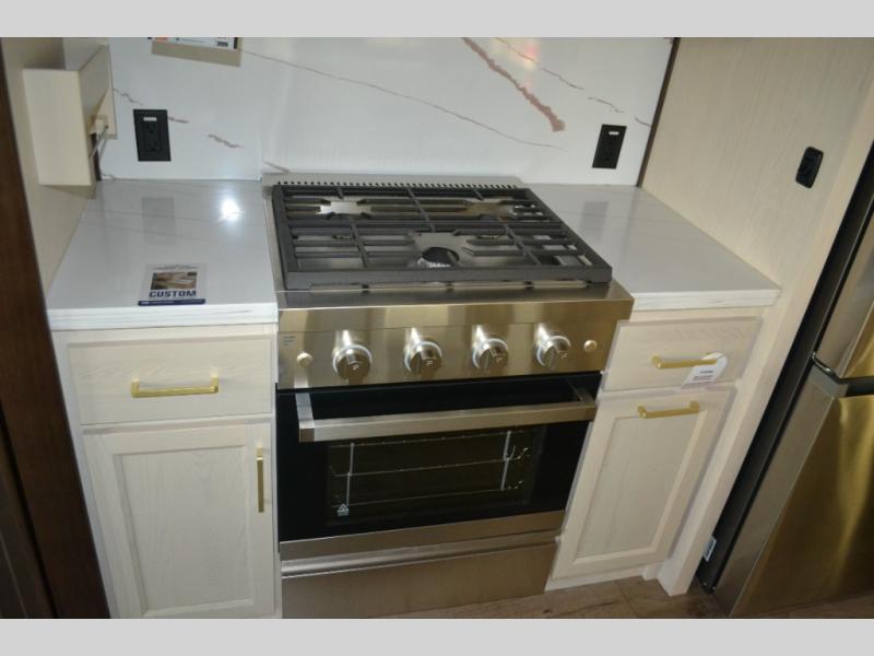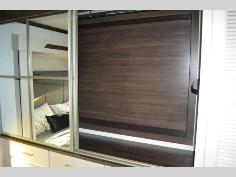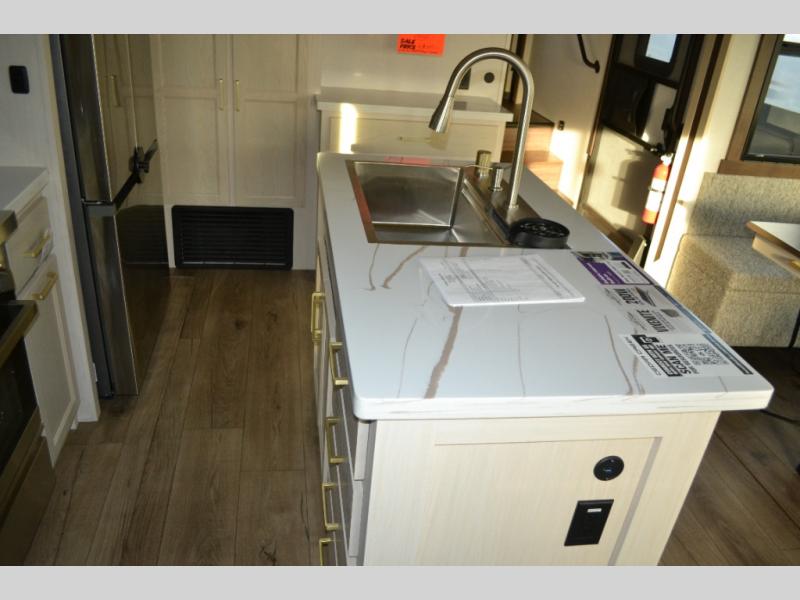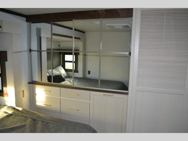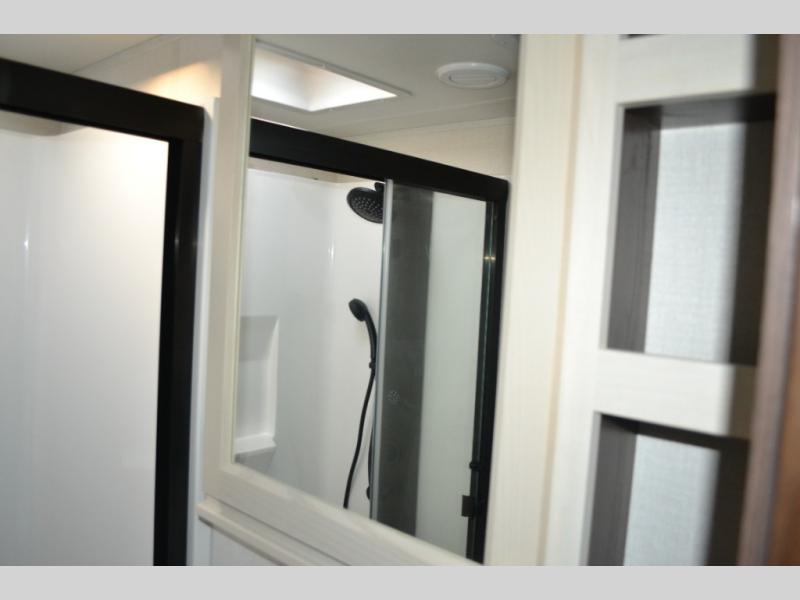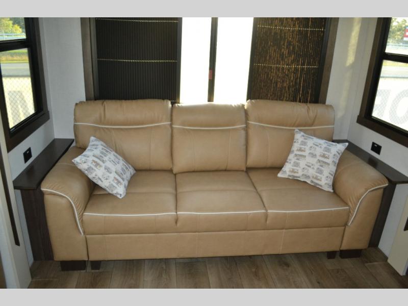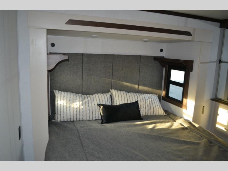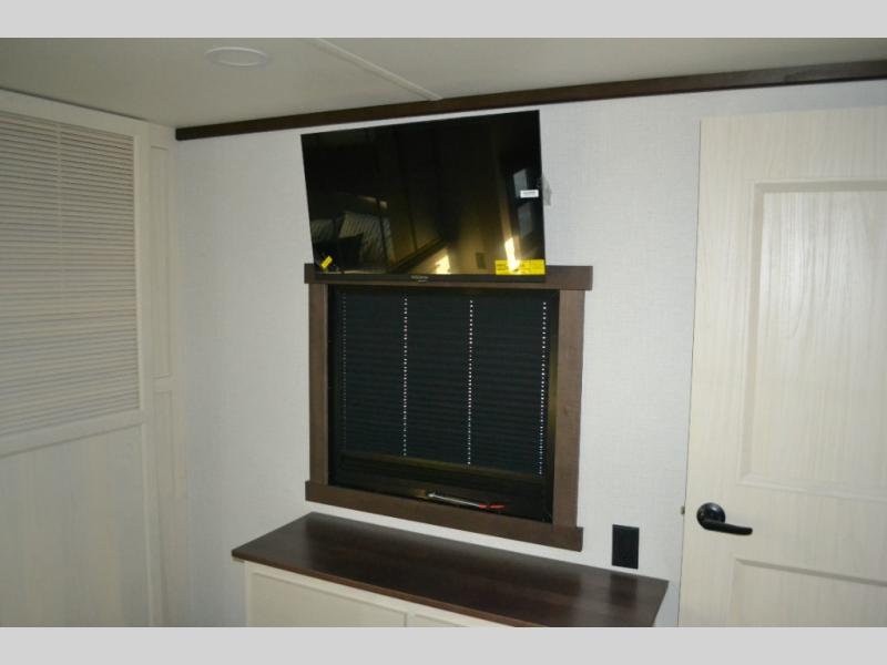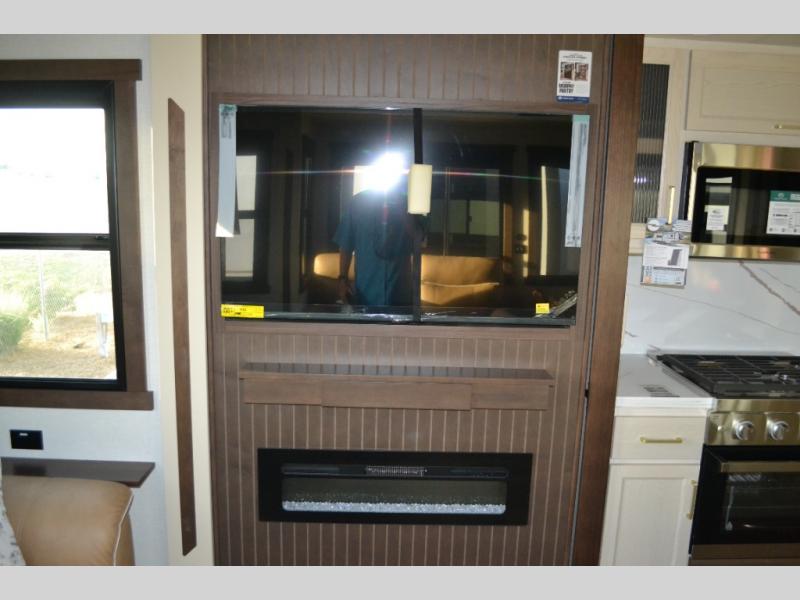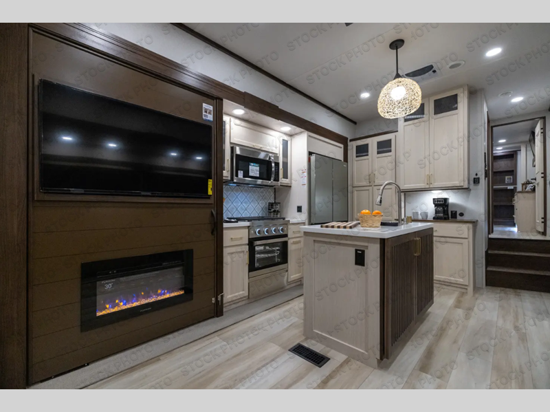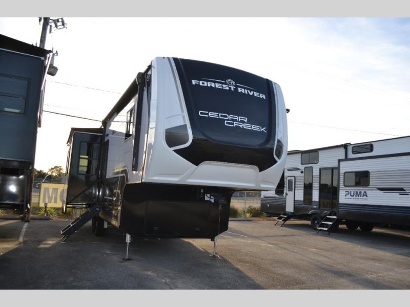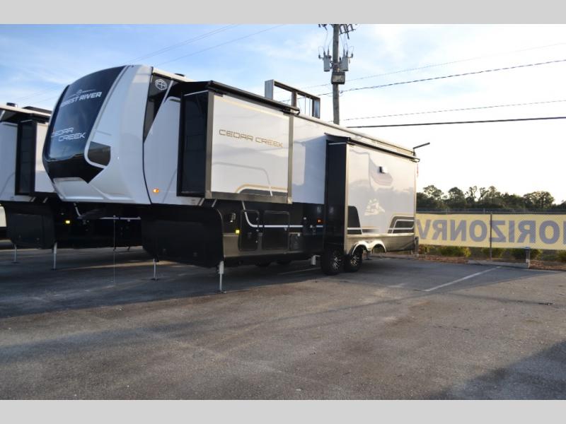 With any Cedar Creek Experience fifth wheel by Forest River, you will bet met with luxury features both inside and out! The True Gelcoat exterior is the best of the best in exteriors and the 3M bonded sidewalls will hold up over years of use. There is also a new 101'' wide-body frame, a Road Warrior suspension, plus a TST tire pressure monitoring system to make towing that much easier. You will find a hidden front storage compartment, along with a 4' x 6' ABS, ribbed, removable underbelly panels, and 6-point hydraulic leveling system, plus many more exterior conveniences. The interior will have you feeling like you haven't left home with vinyl floor coverings, power theater seating with USB ports, a cozy fireplace, vinyl floor covering and the list of comforts goes on! Each model is also pre-wired for satellite to the roof, and you're sure to never go bored with a Smart TV in the bedroom!