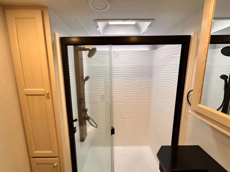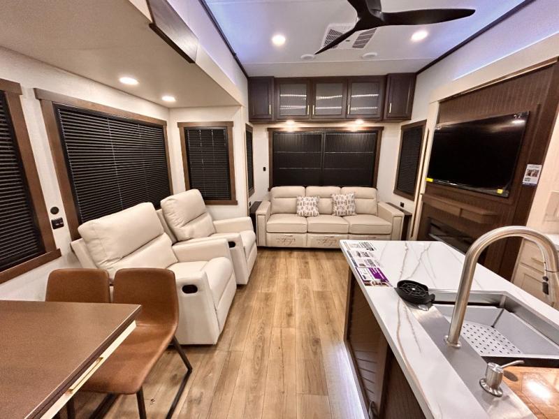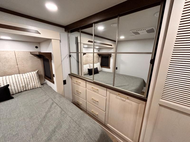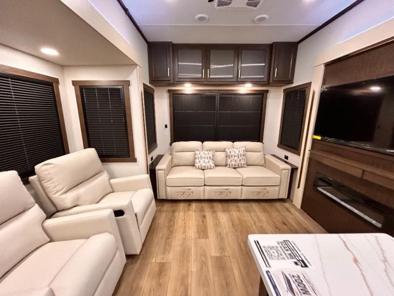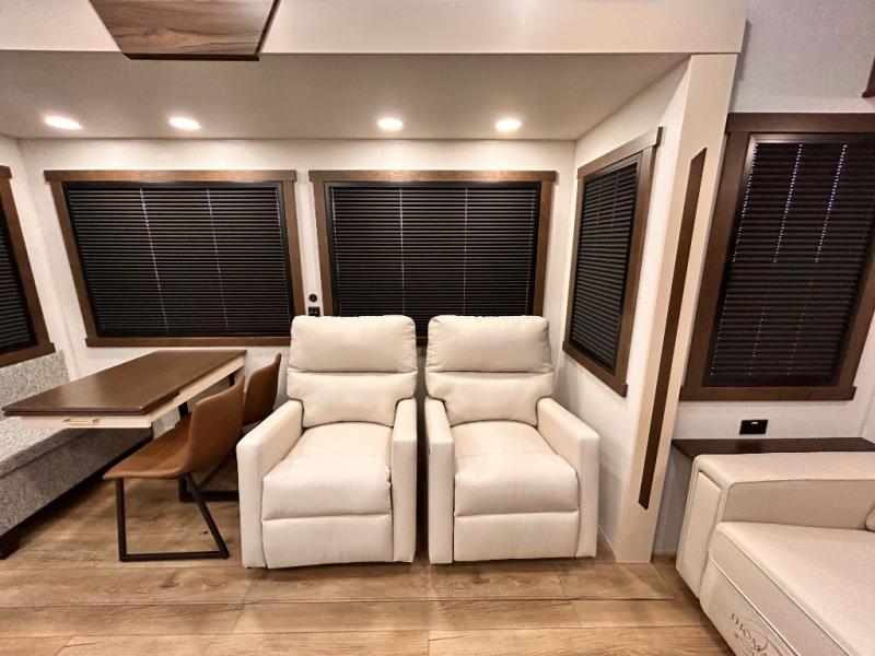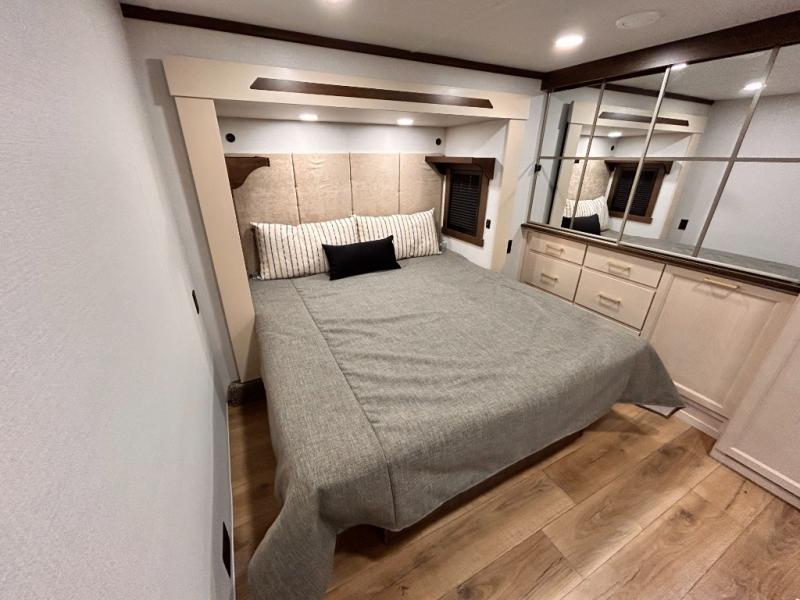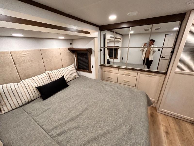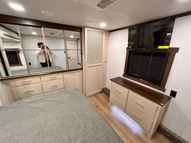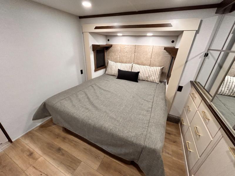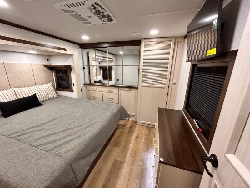 REAR LIVING / KING BED / POWER THEATER SEATING/ HEAT PUMP IN BEDROOM / AUTO LEVELING / 200W SOLAR PANEL / 2 TV / 3rd AC!!