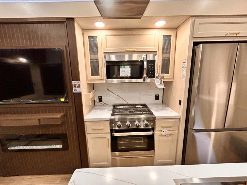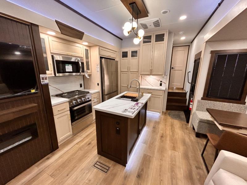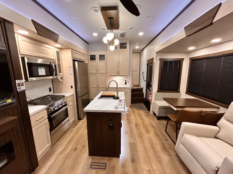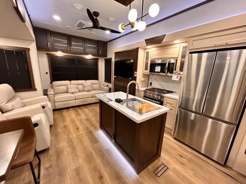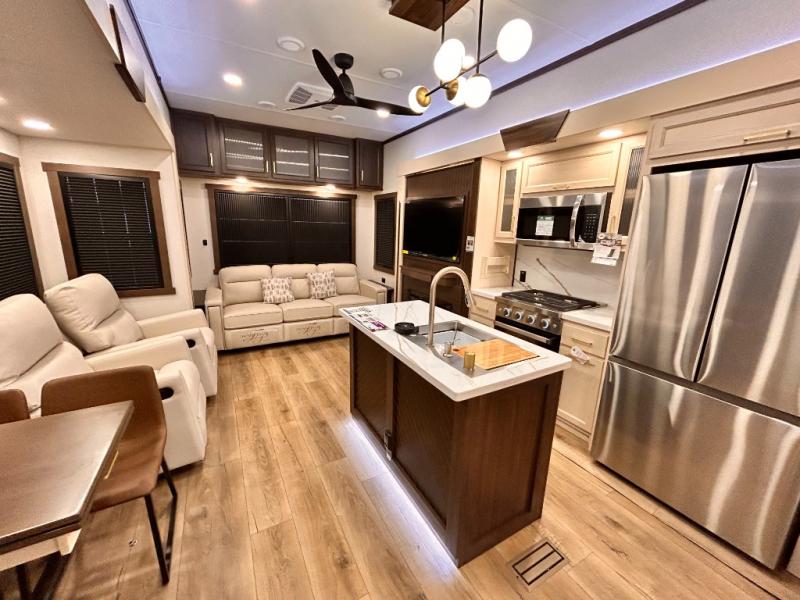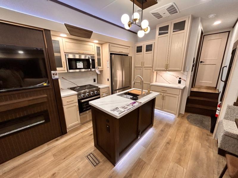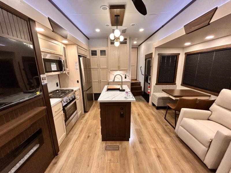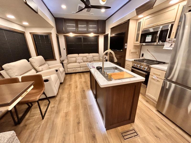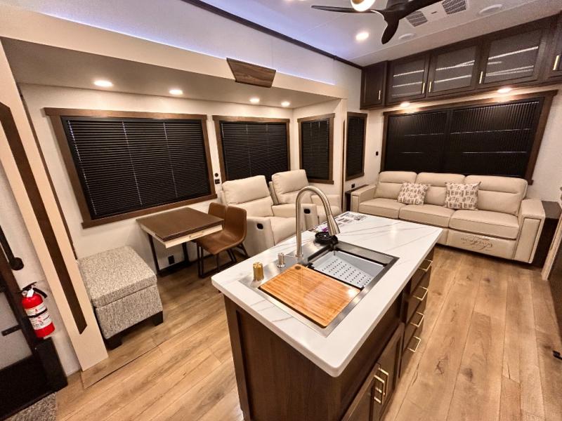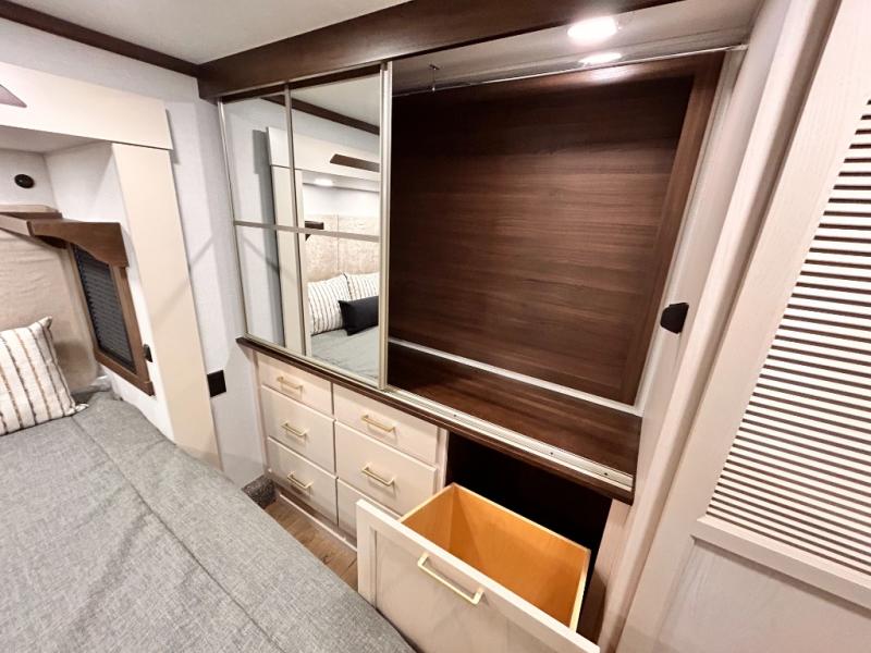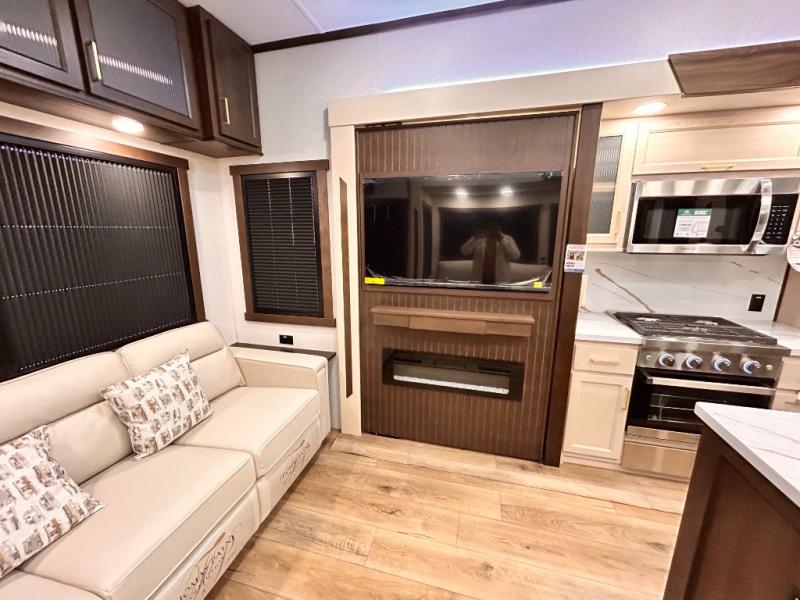 REAR LIVING / KING BED / POWER THEATER SEATING/ HEAT PUMP IN BEDROOM / AUTO LEVELING / 200W SOLAR PANEL / 2 TV / 3rd AC!!