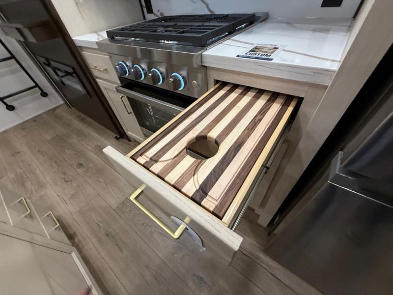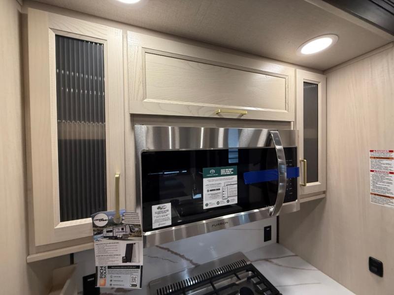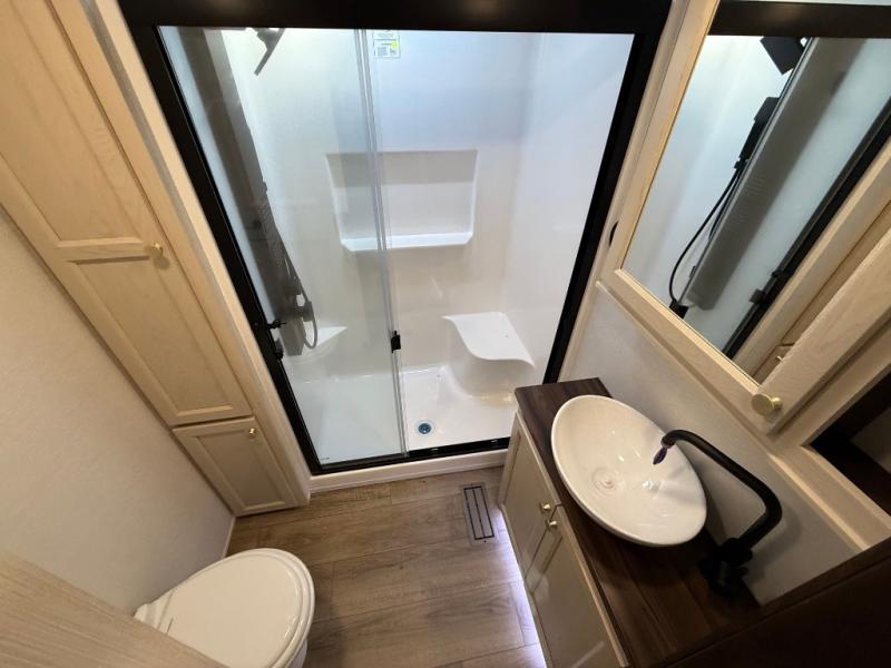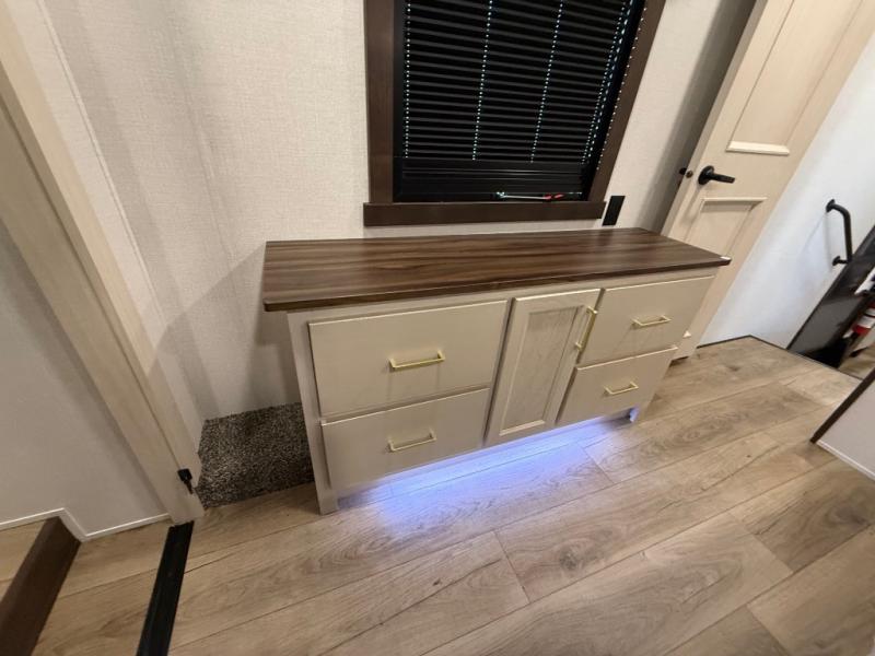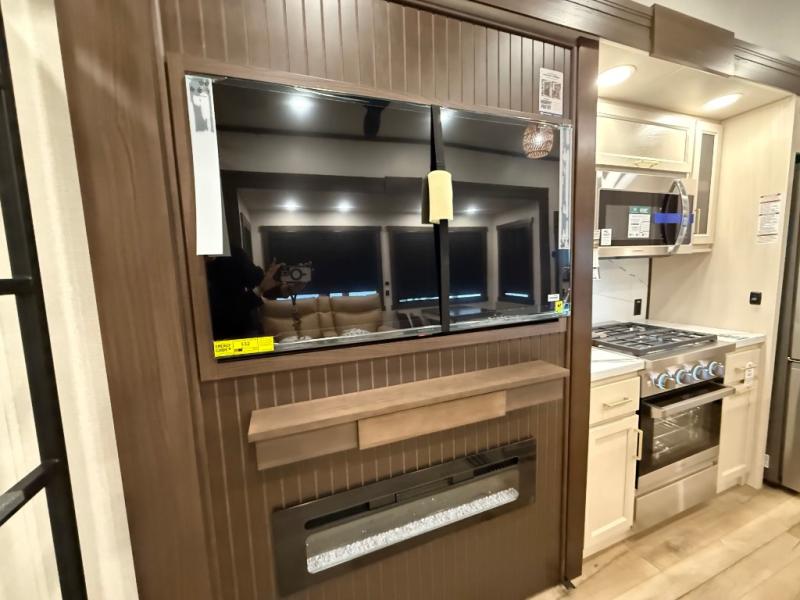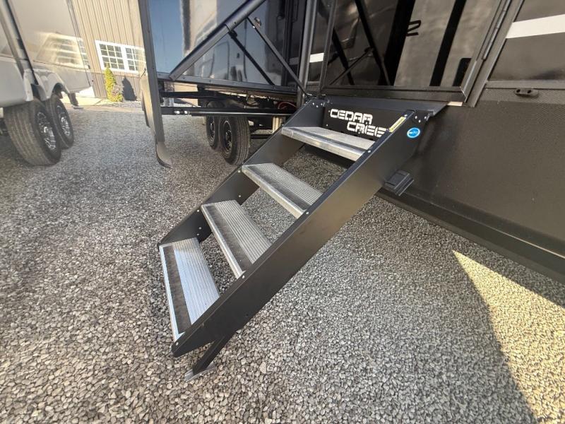 With any Cedar Creek Experience fifth wheel by Forest River, you will bet met with luxury features both inside and out! The True Gelcoat exterior is the best of the best in exteriors and the 3M bonded sidewalls will hold up over years of use. There is also a new 101'' wide-body frame, a Road Warrior suspension, plus a TST tire pressure monitoring system to make towing that much easier. You will find a hidden front storage compartment, along with a 4' x 6' ABS, ribbed, removable underbelly panels, and 6-point hydraulic leveling system, plus many more exterior conveniences. The interior will have you feeling like you haven't left home with vinyl floor coverings, power theater seating with USB ports, a cozy fireplace, vinyl floor covering and the list of comforts goes on! Each model is also pre-wired for satellite to the roof, and you're sure to never go bored with a Smart TV in the bedroom!