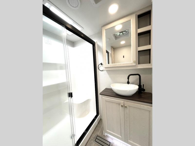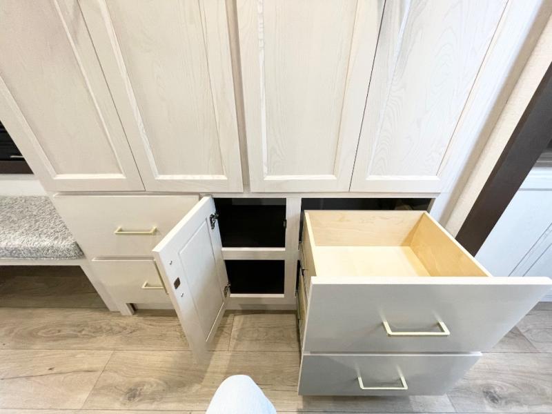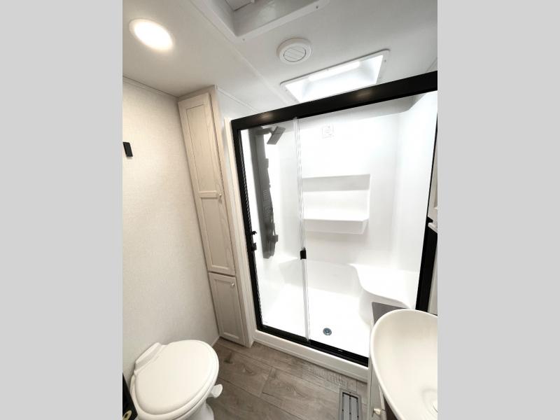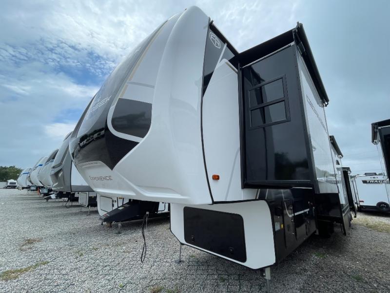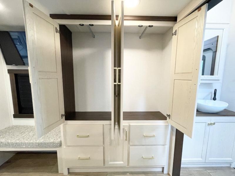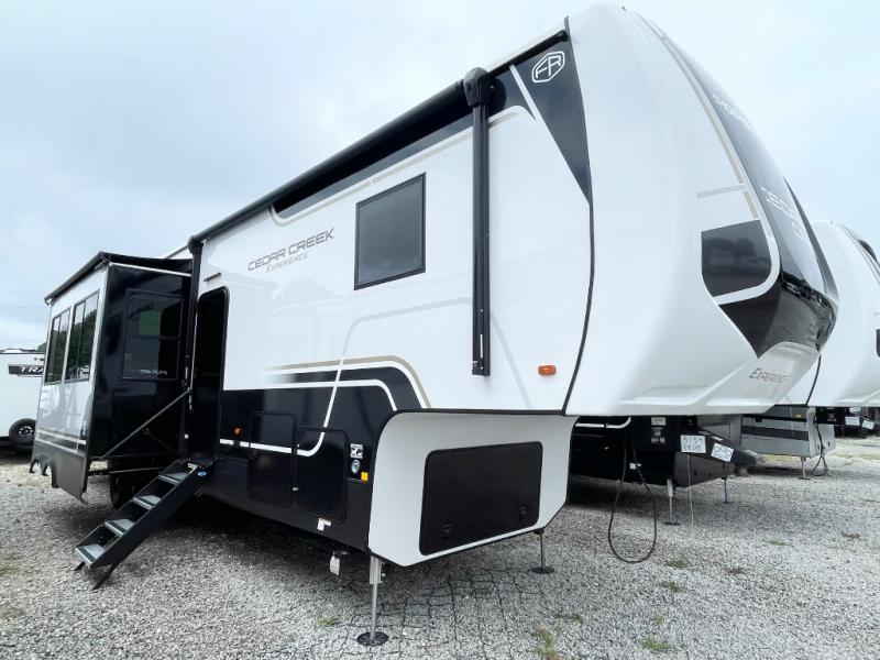 With any Cedar Creek Experience fifth wheel by Forest River, you will bet met with luxury features both inside and out! The True Gelcoat exterior is the best of the best in exteriors and the 3M bonded sidewalls will hold up over years of use. There is also a new 101'' wide-body frame, a Road Warrior suspension, plus a TST tire pressure monitoring system to make towing that much easier. You will find a hidden front storage compartment, along with a 4' x 6' ABS, ribbed, removable underbelly panels, and 6-point hydraulic leveling system, plus many more exterior conveniences. The interior will have you feeling like you haven't left home with vinyl floor coverings, power theater seating with USB ports, a cozy fireplace, vinyl floor covering and the list of comforts goes on! Each model is also pre-wired for satellite to the roof, and you're sure to never go bored with a Smart TV in the bedroom!