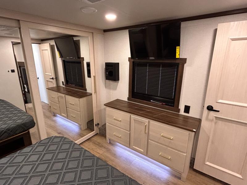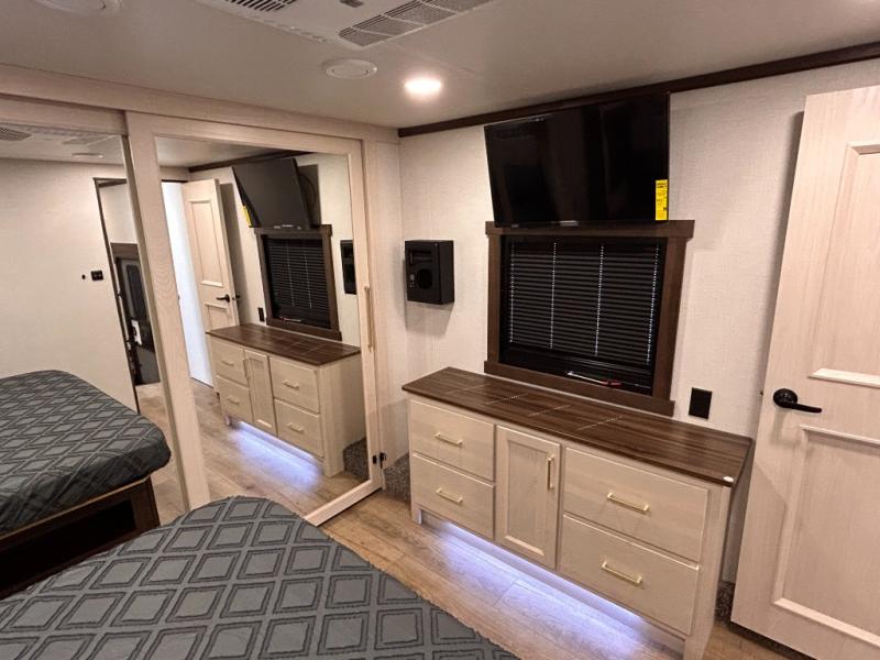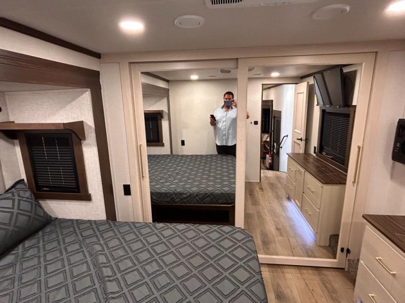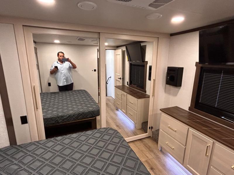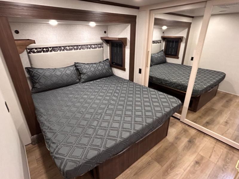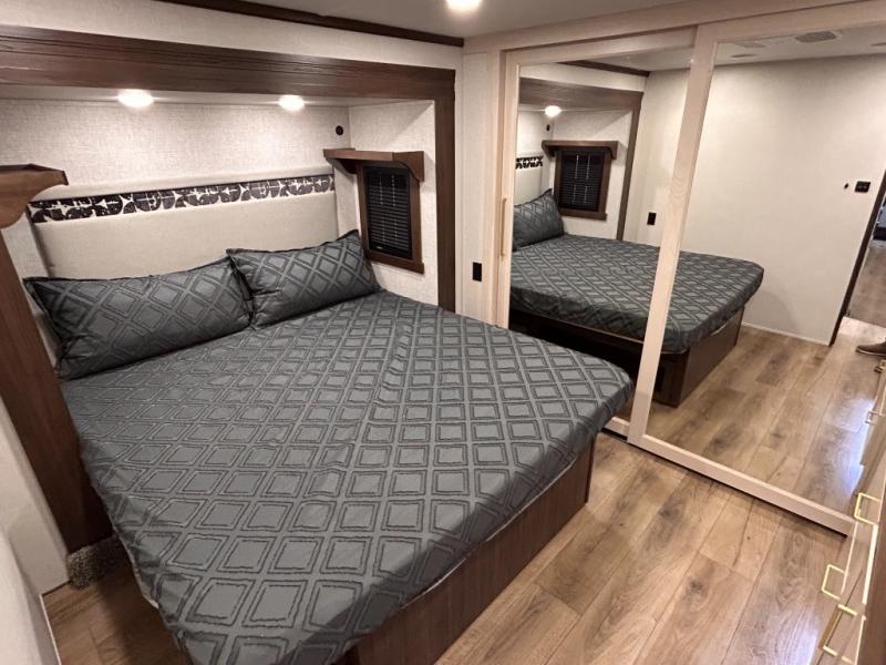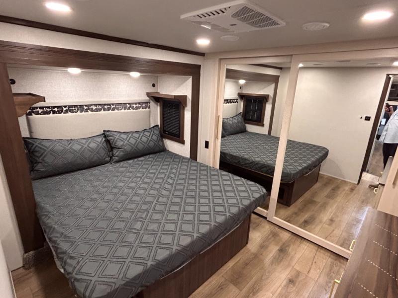 TWO BEDROOM/ TWO FULL BATH/ DOUBLE QUEEN HUGE LOFT/ THEATER SEATING / 4 SLIDE TOPPERS / 200 SOLAR PANEL / AUTO LEVELING With 2ND AC!!!