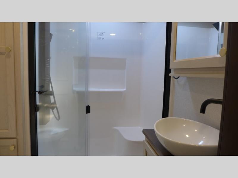 With any Cedar Creek Experience fifth wheel by Forest River, you will bet met with luxury features both inside and out! The True Gelcoat exterior is the best of the best in exteriors and the 3M bonded sidewalls will hold up over years of use. There is also a new 101'' wide-body frame, a Road Warrior suspension, plus a TST tire pressure monitoring system to make towing that much easier. You will find a hidden front storage compartment, along with a 4' x 6' ABS, ribbed, removable underbelly panels, and 6-point hydraulic leveling system, plus many more exterior conveniences. The interior will have you feeling like you haven't left home with vinyl floor coverings, power theater seating with USB ports, a cozy fireplace, vinyl floor covering and the list of comforts goes on! Each model is also pre-wired for satellite to the roof, and you're sure to never go bored with a Smart TV in the bedroom!