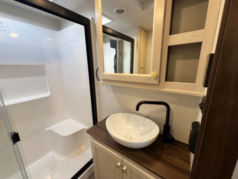 With any Cedar Creek Experience fifth wheel by Forest River, you will bet met with luxury features both inside and out! The True Gelcoat exterior is the best of the best in exteriors and the 3M bonded sidewalls will hold up over years of use. There is also a new 101'' wide-body frame, a Road Warrior suspension, plus a TST tire pressure monitoring system to make towing that much easier. You will find a hidden front storage compartment, along with a 4' x 6' ABS, ribbed, removable underbelly panels, and 6-point hydraulic leveling system, plus many more exterior conveniences. The interior will have you feeling like you haven't left home with vinyl floor coverings, power theater seating with USB ports, a cozy fireplace, vinyl floor covering and the list of comforts goes on! Each model is also pre-wired for satellite to the roof, and you're sure to never go bored with a Smart TV in the bedroom!