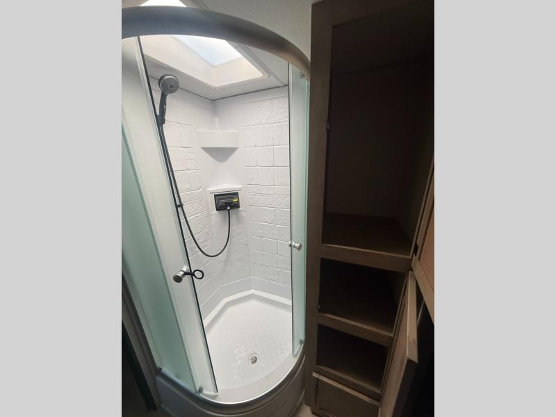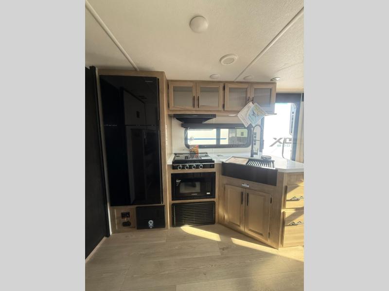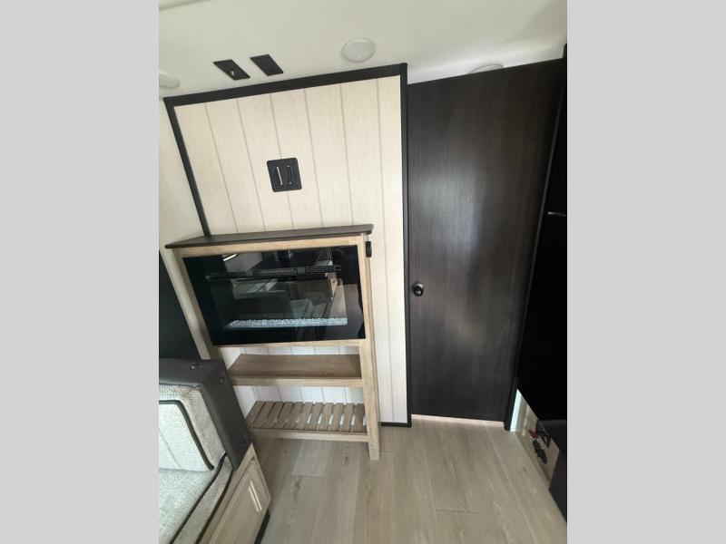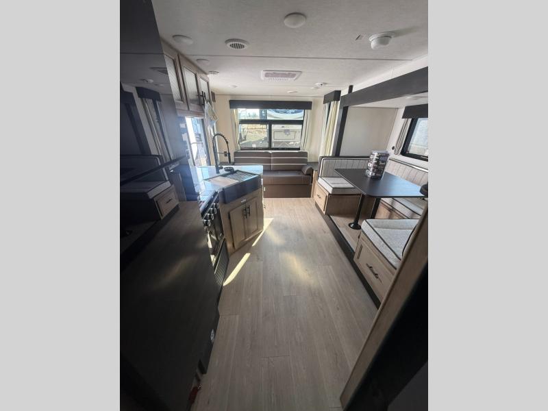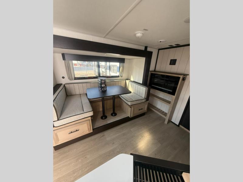 This Cherokee Grey Wolf Black Label travel trailer is perfect for your small family and will leave you planning your next outing before you are back from your current weekend away! You will find all of the comforts you need with plenty of livable space including a U-shaped dinette slide. There is also a sofa for more seating when company arrives, and there are end tables on either side to prevent spills. A spacious walk-through bath leads to a front private bedroom where you will enjoy a great night's rest on a comfortable RV king bed.