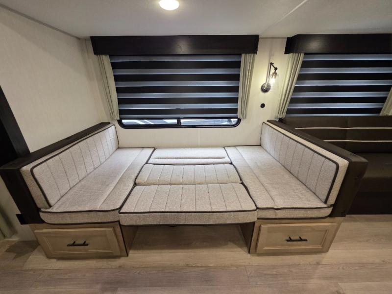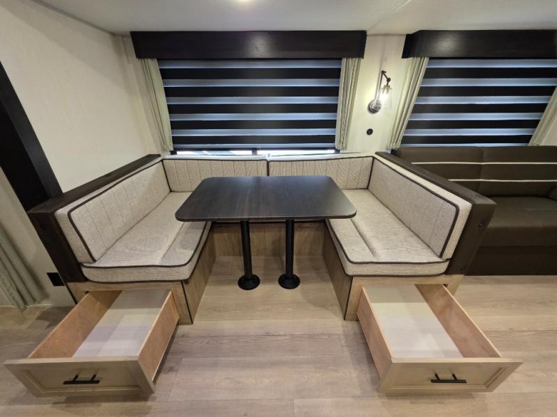 Large Slide-Out Living Area: With a spacious U-shaped dinette and jackknife sofa in the main slide, you get tons of seating, dining, and lounging space for the whole crew.